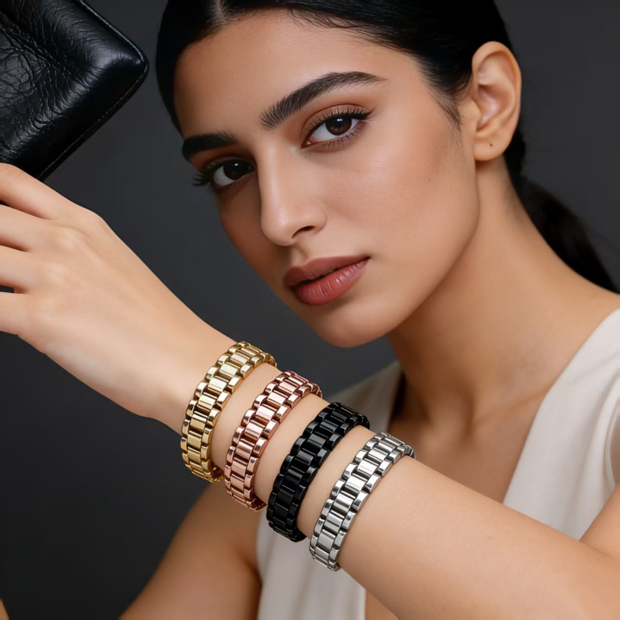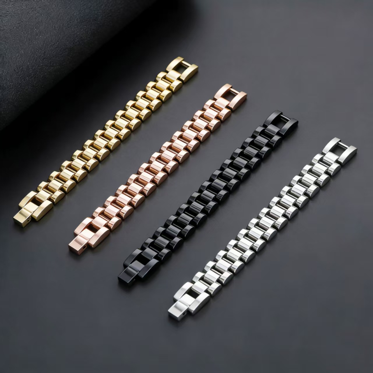 韩式不锈钢手链钛钢表带扣金色手表链男士手表钢带情侣时尚手链
