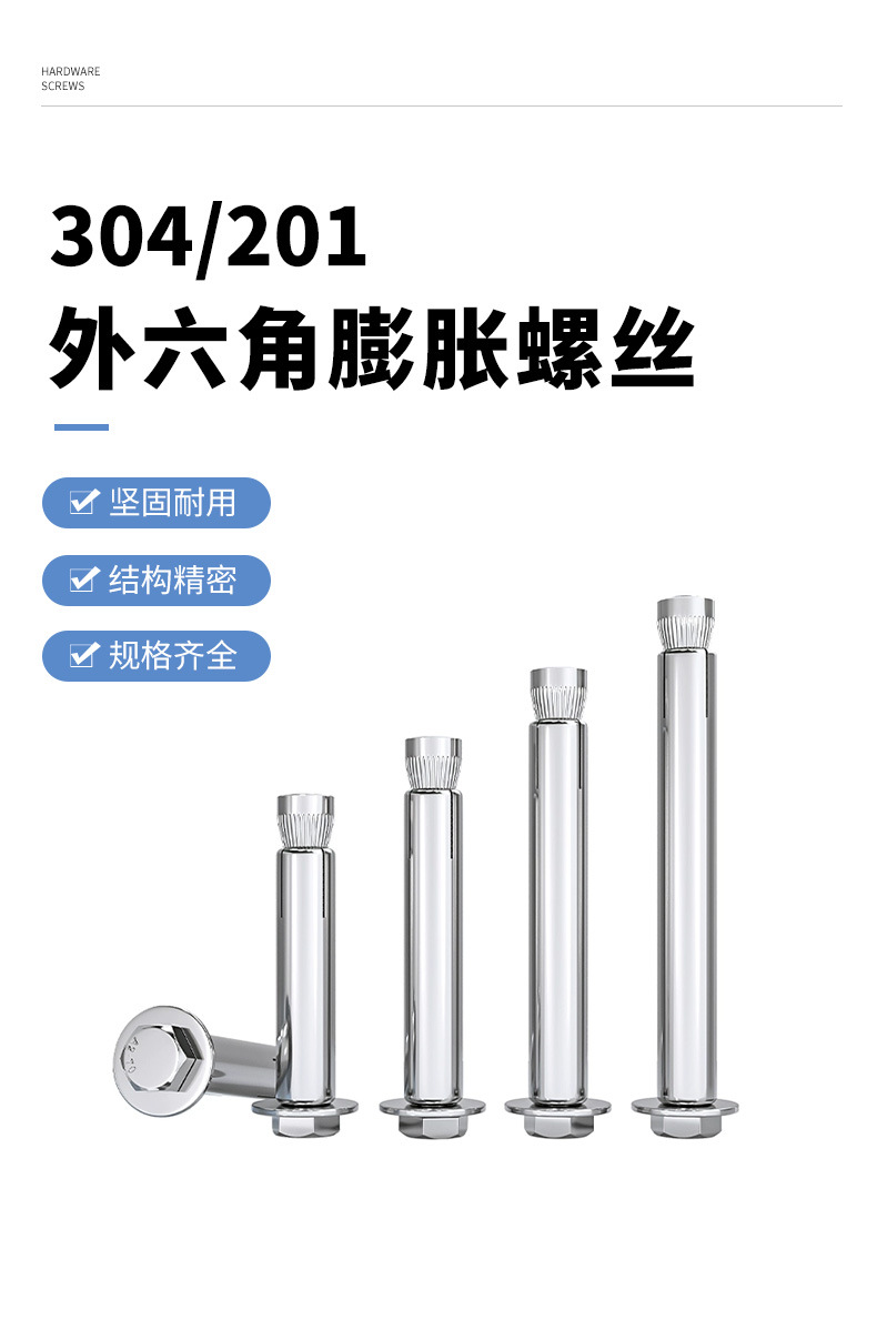 关键词:国标304不锈钢外六角膨胀螺丝外六角内置式拉爆膨胀螺丝M6M