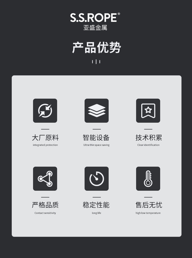 关键词:亚盛汽车不锈钢丝绳 1x7/7x19 操纵油门摇窗拉线耐疲劳