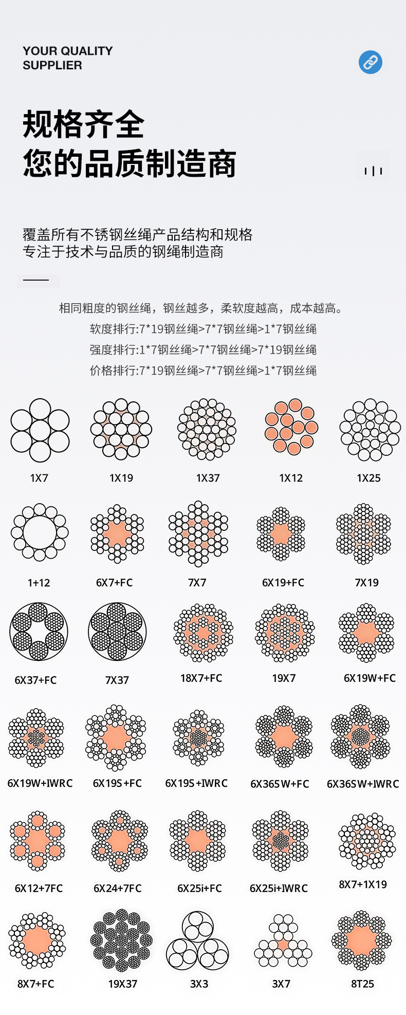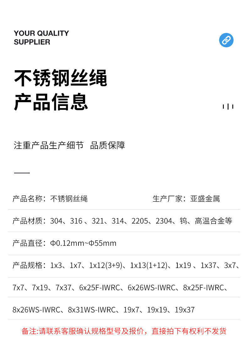 推荐理由:亚盛汽车不锈钢丝绳 1x7/7x19 操纵油门摇窗拉线耐疲劳细软柔韧