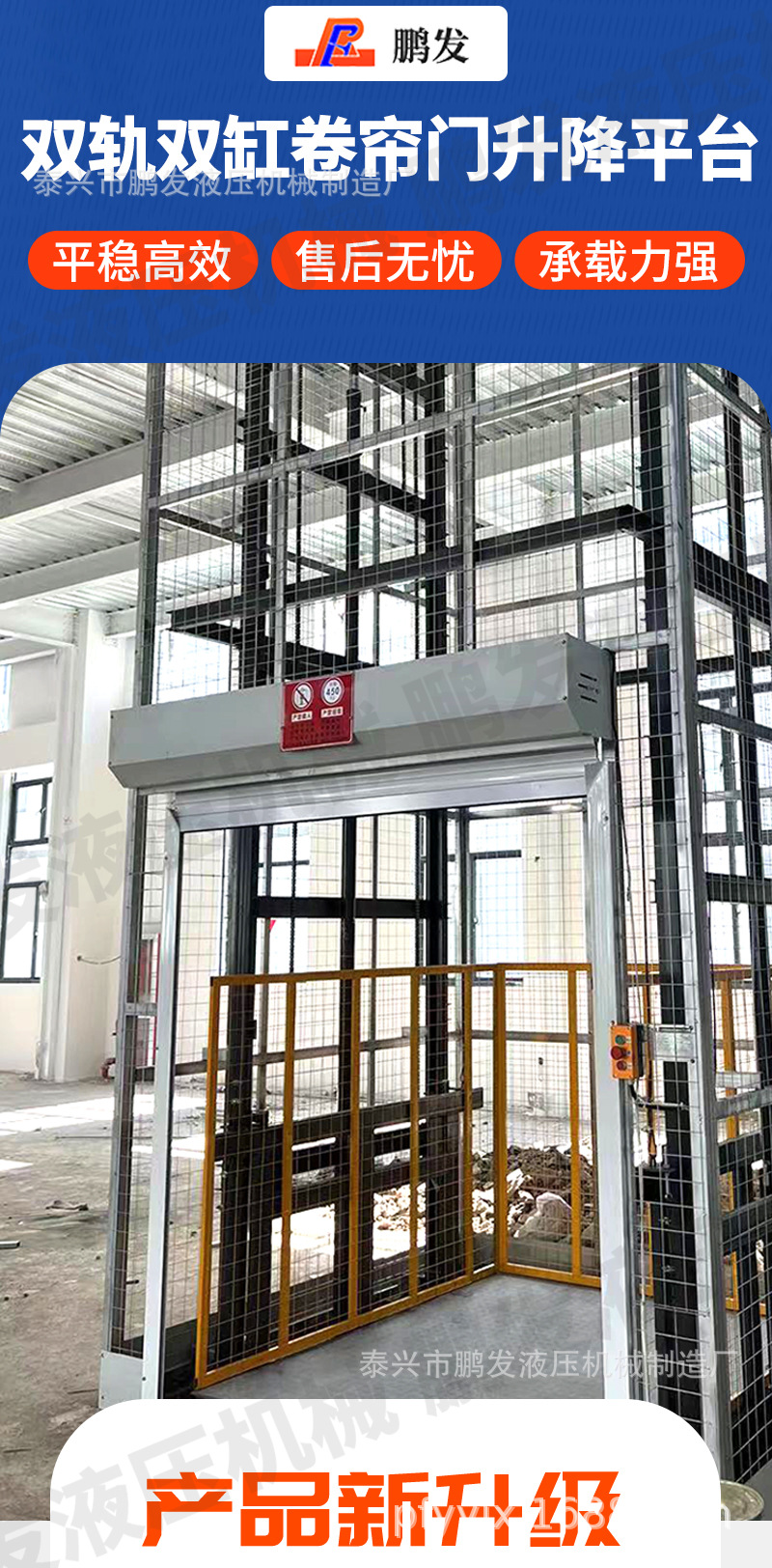 推荐理由:室内双轨双缸液压升降货梯加联动卷帘门导轨式液压升降装卸货平台