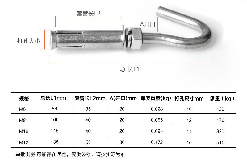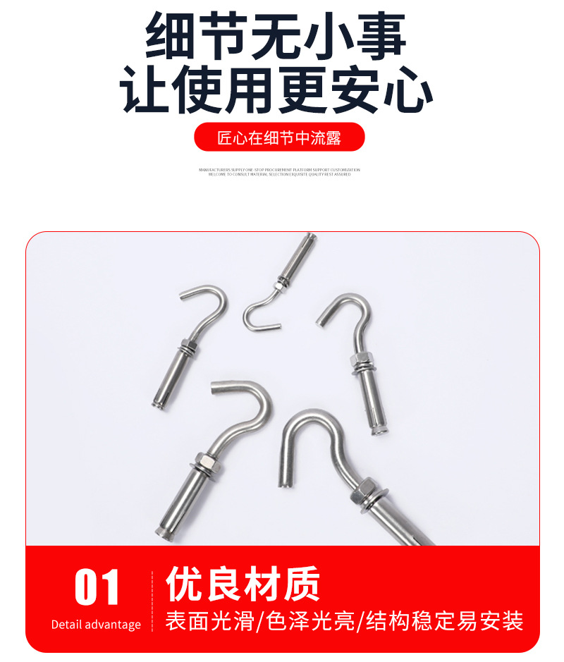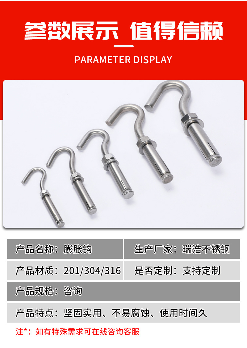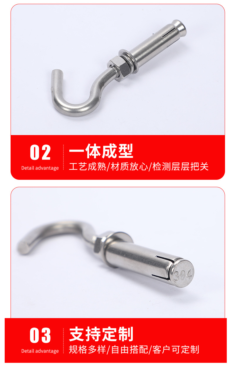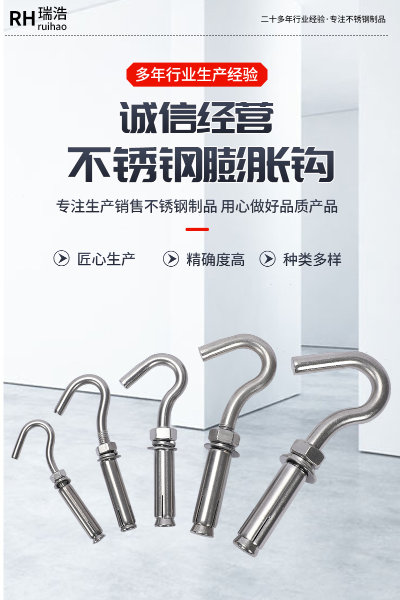 关键词:不锈钢膨胀钩201/304带勾膨胀螺丝 挂钩井盖网窨井专用膨