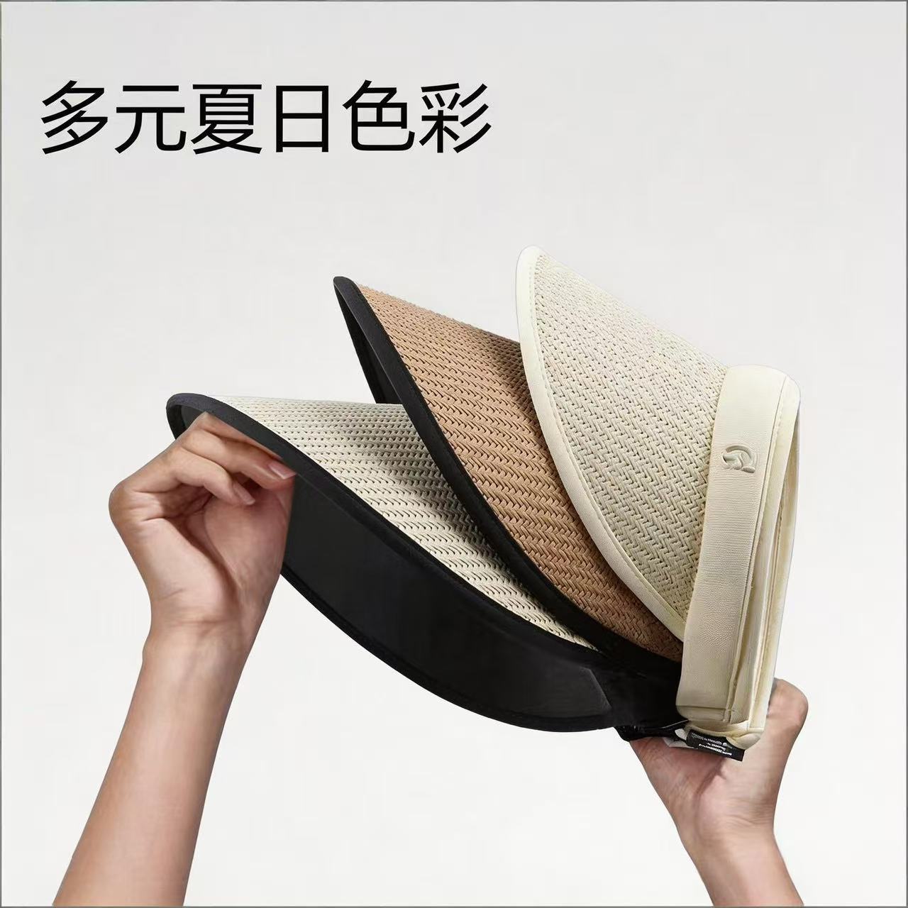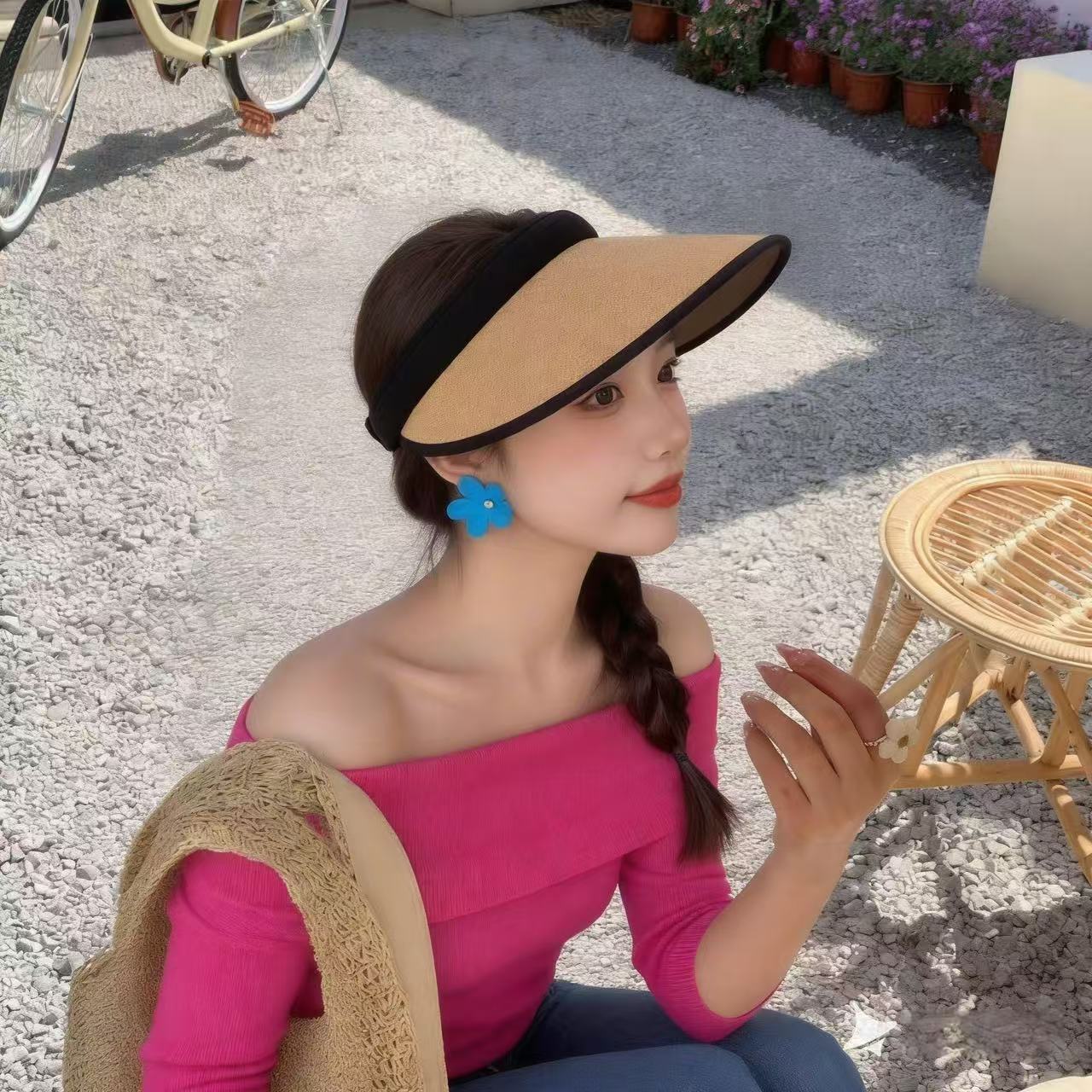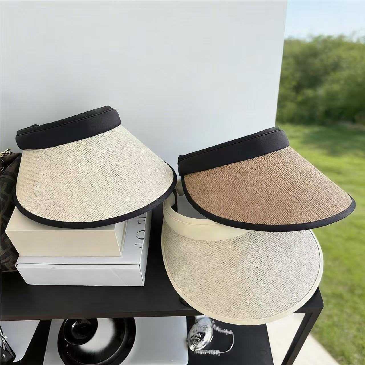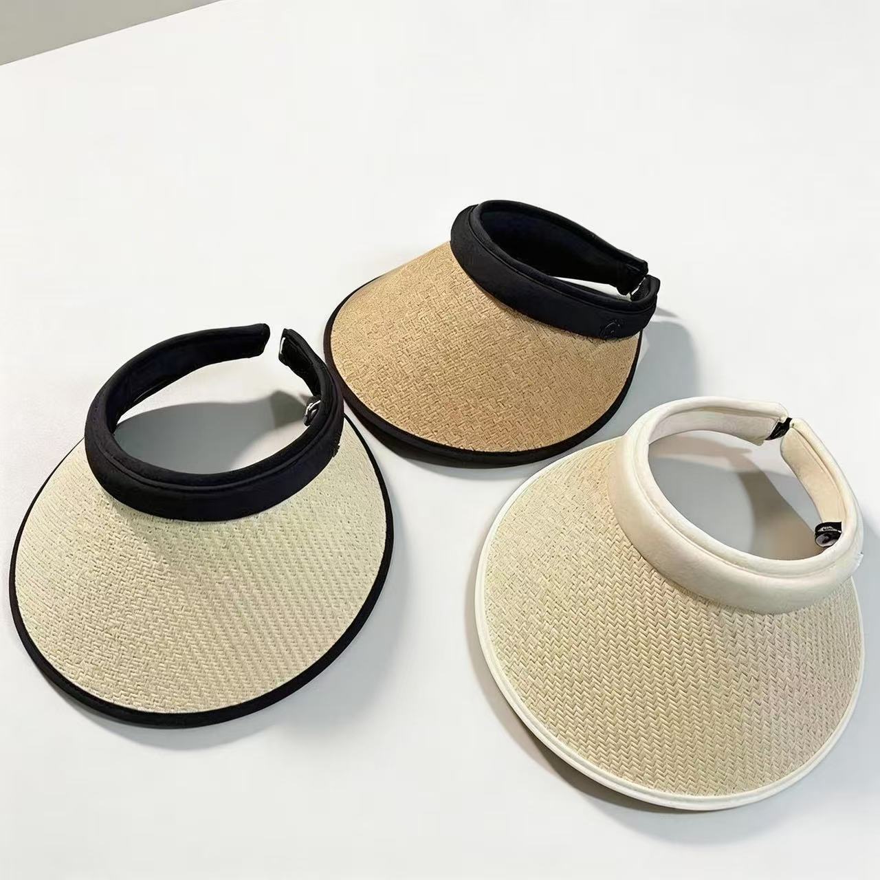 夏季防晒帽ins遮阳黑胶帽草帽空顶网红大檐女草帽时尚发箍太阳帽