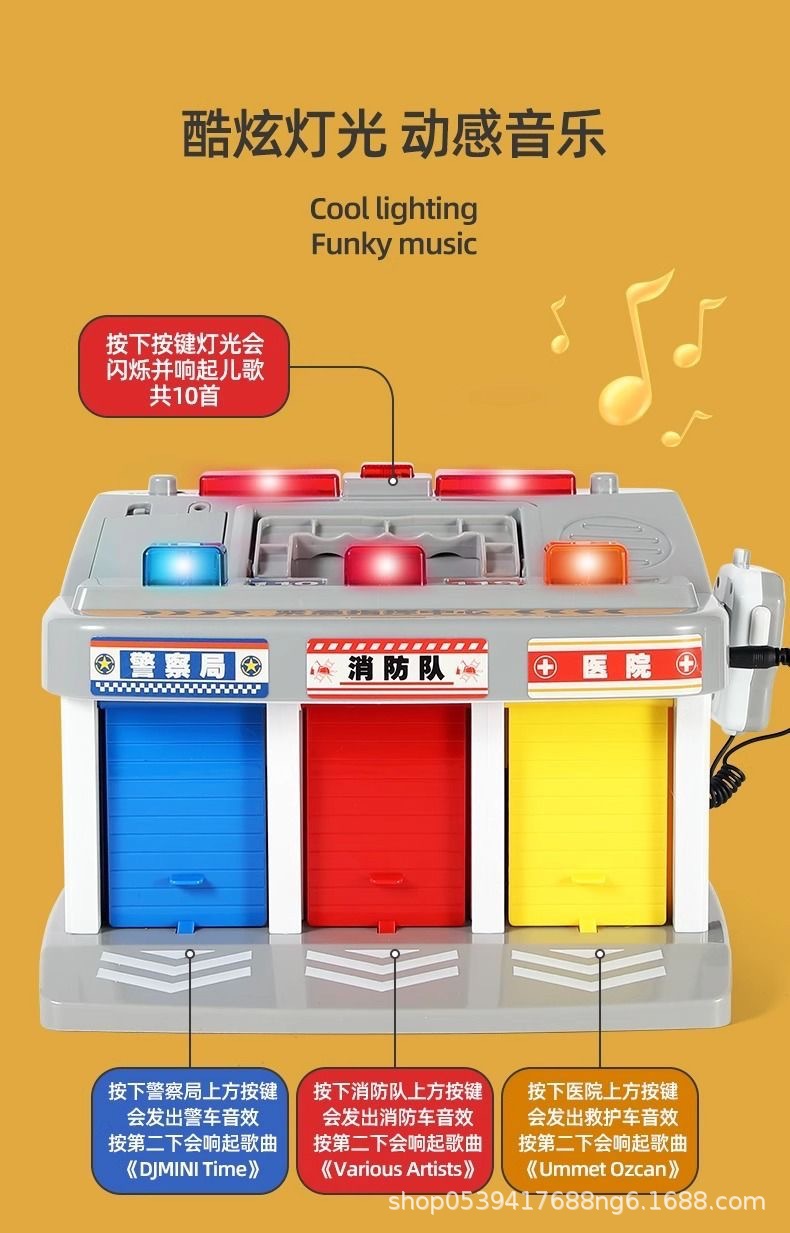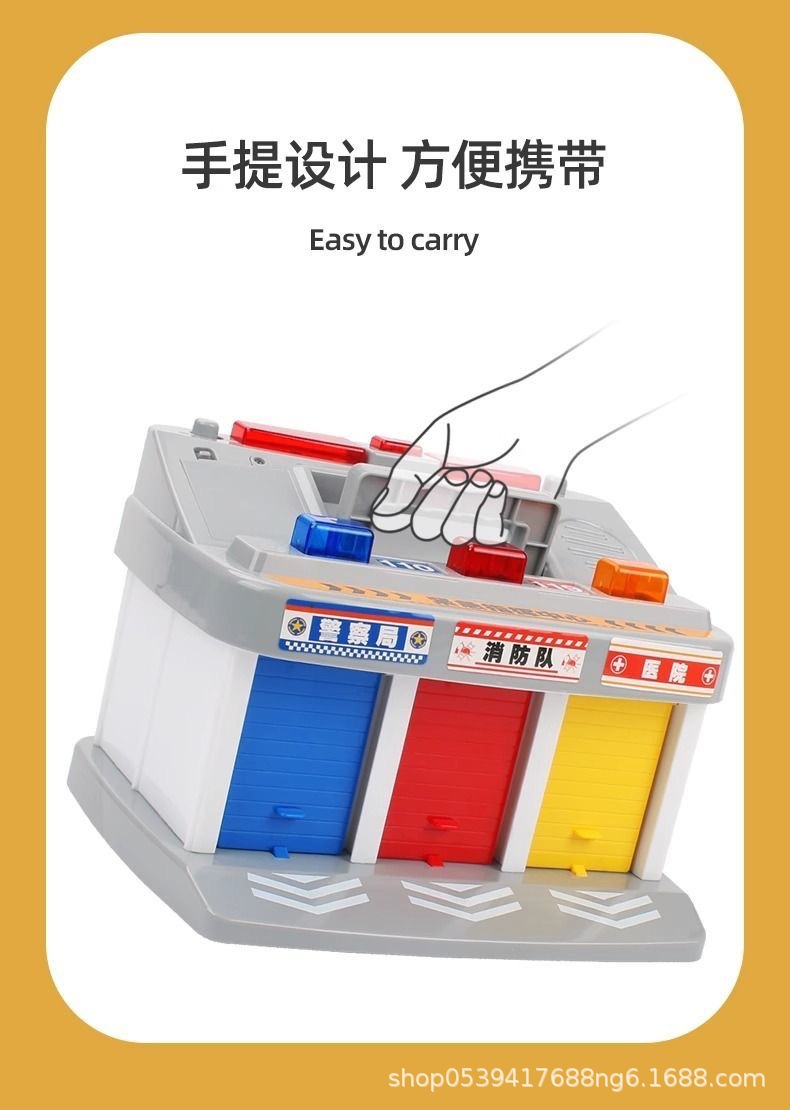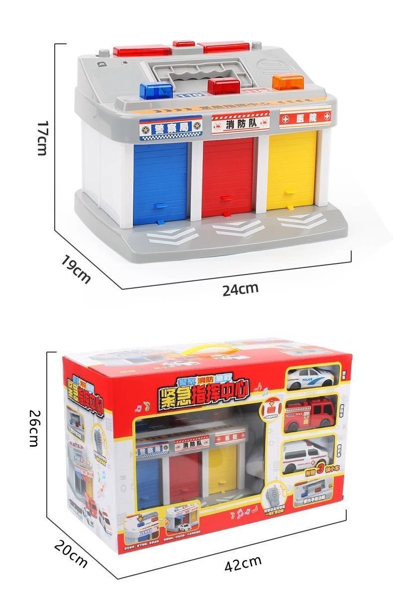 儿童紧急指挥中心警察车消防队停车场声光小汽车模型男孩玩具套装