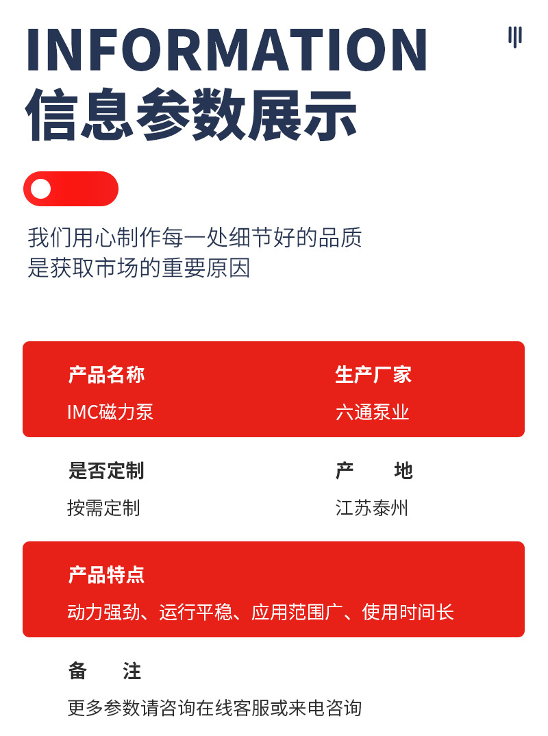 关键词:IMC衬氟磁力泵浓硫酸泵无泄漏磁力泵不锈钢输送泵耐腐蚀