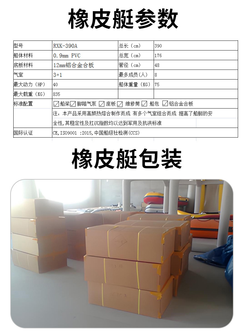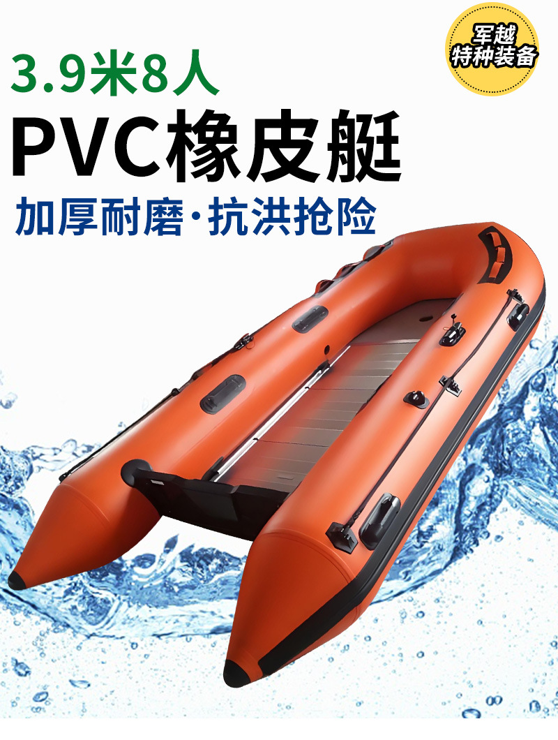 推荐理由:3.9米8人pvc橡皮艇铝合金底皮划艇防汛救灾搜救橡皮艇