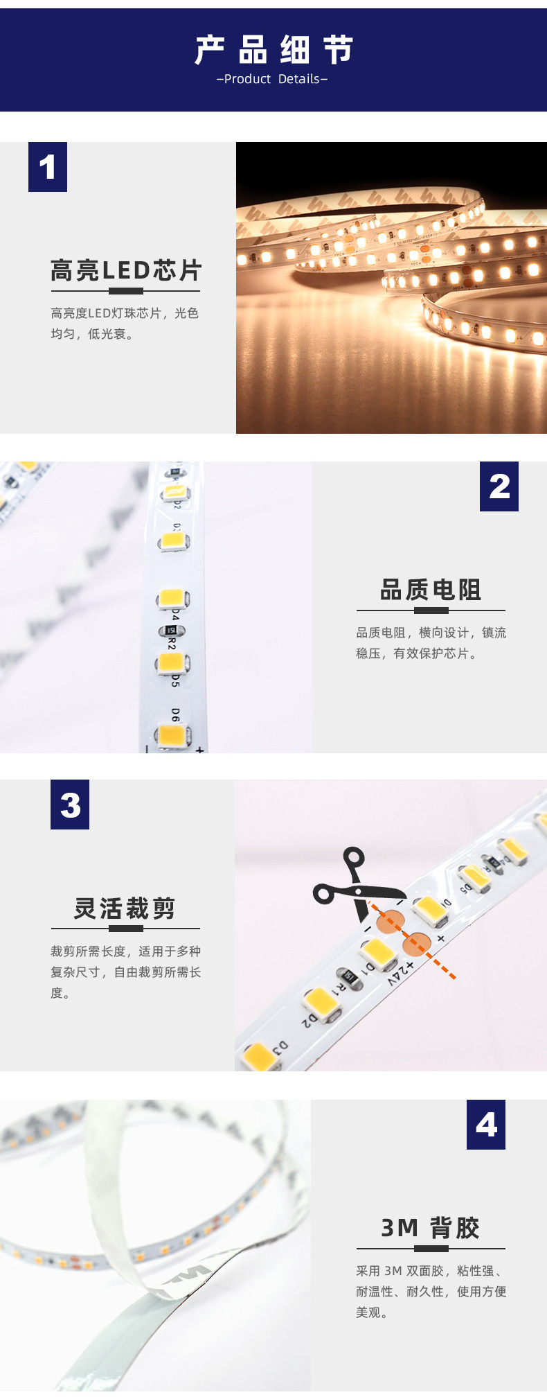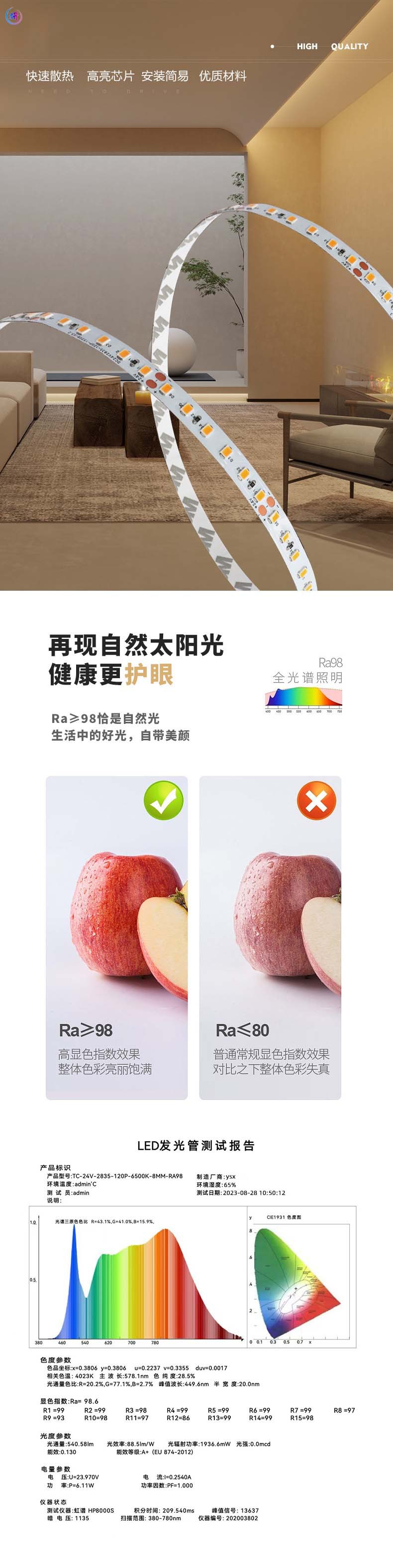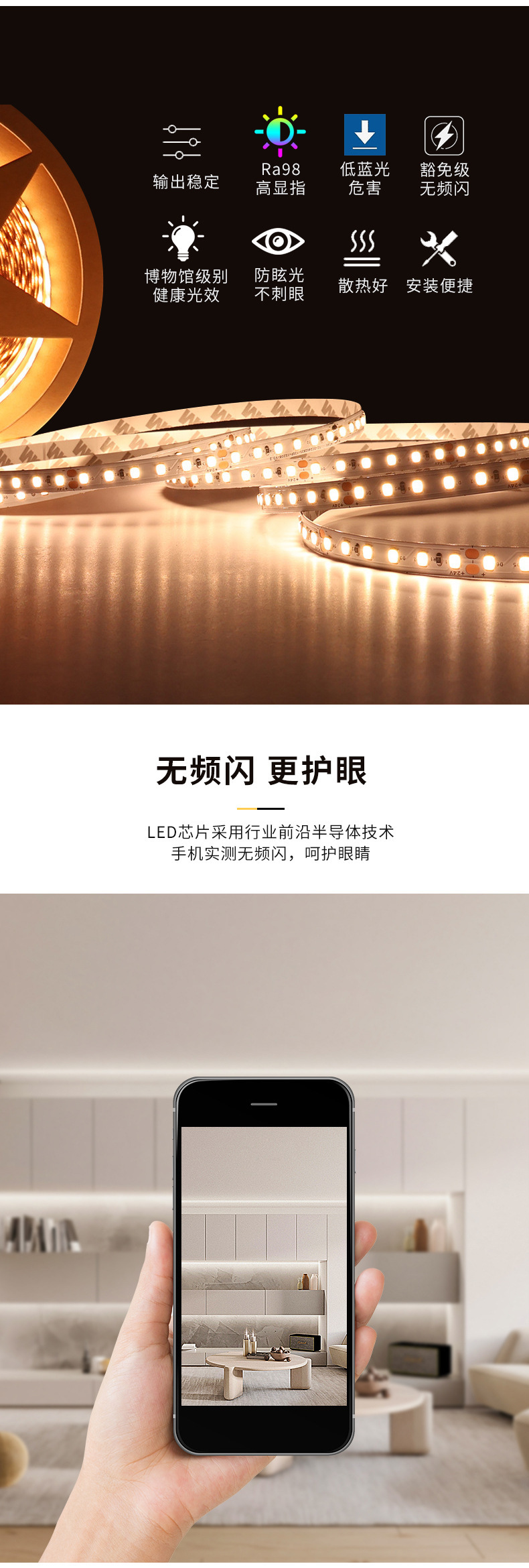 定制全光谱感应灯带led条自粘高显指软灯带氛围灯灯条高显指98