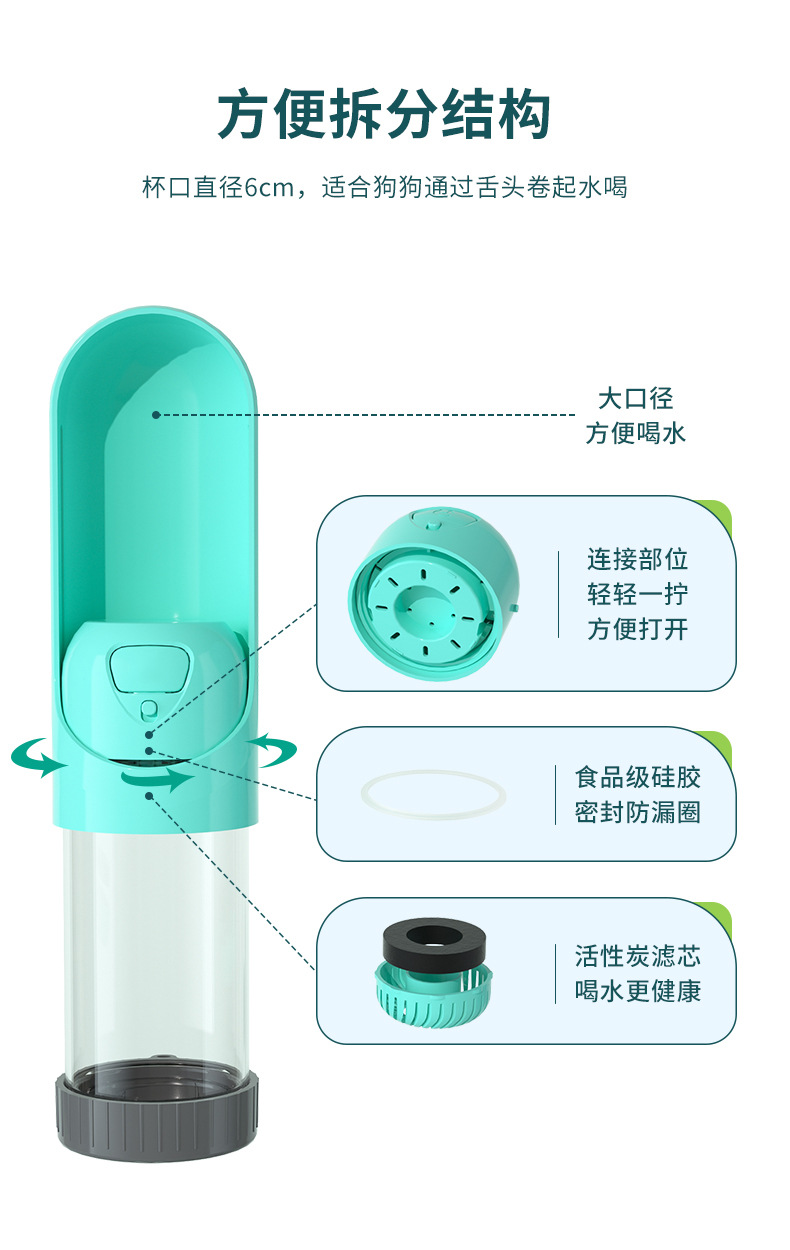 宠物随行水杯狗狗外出便携式水壶水瓶喝水器户外用品饮水器带滤芯