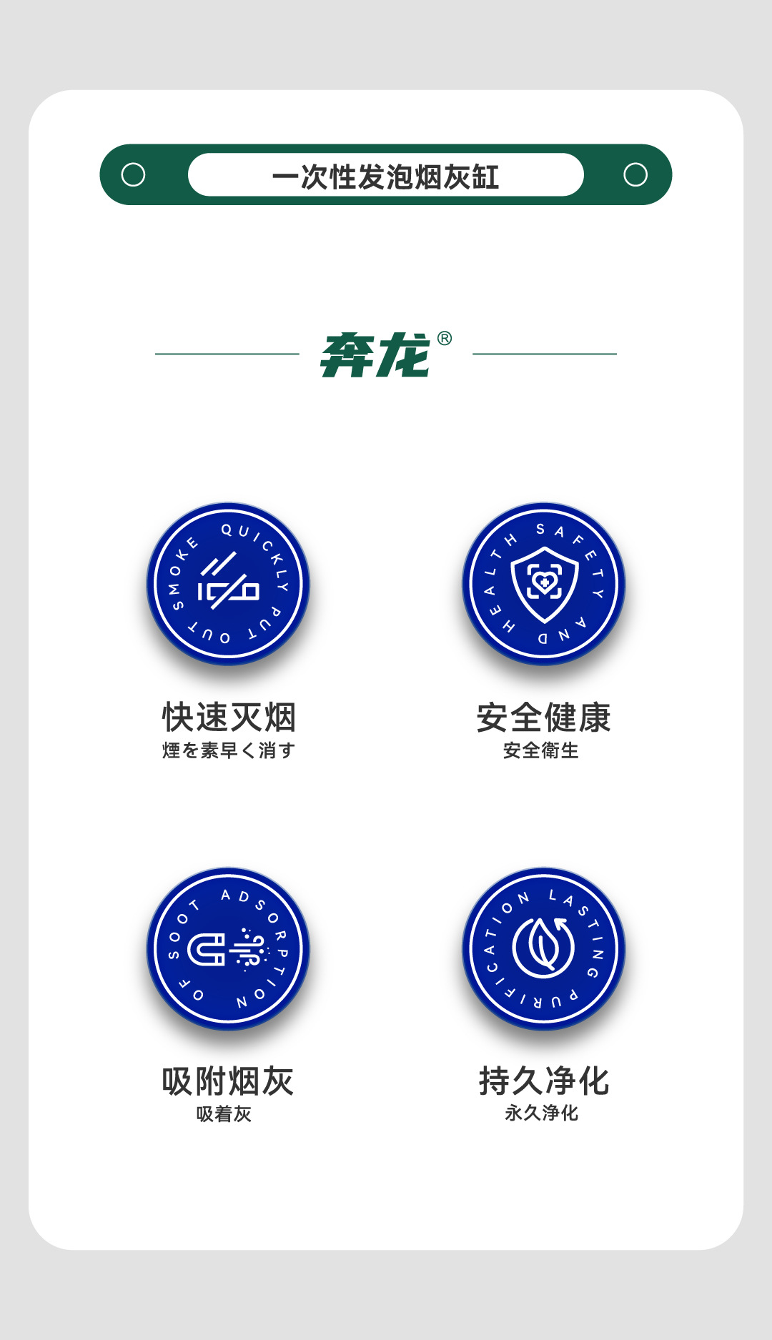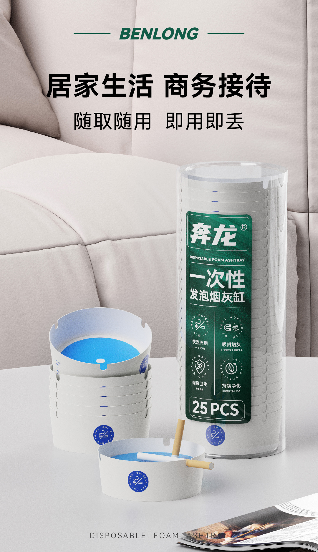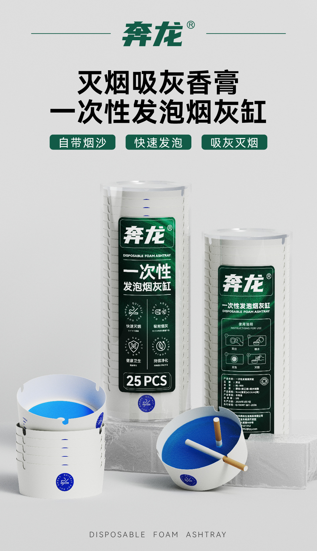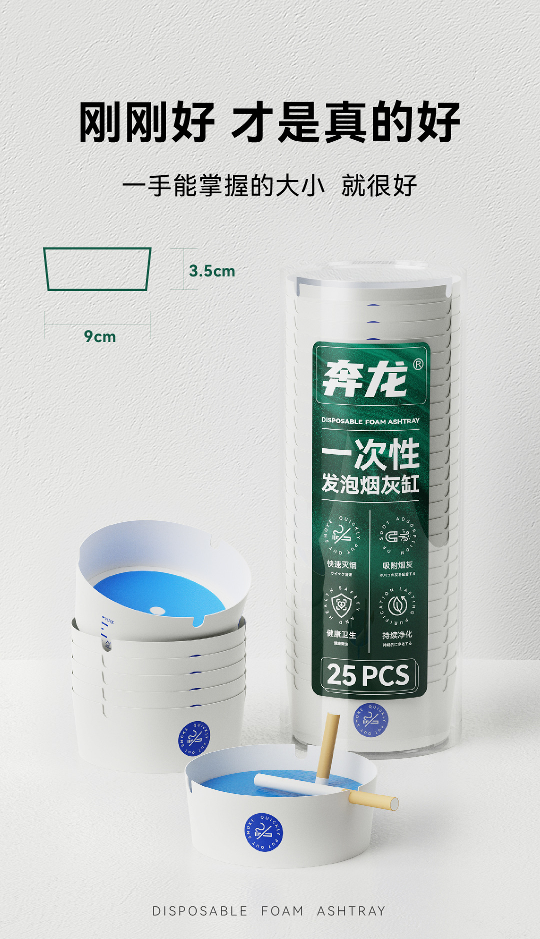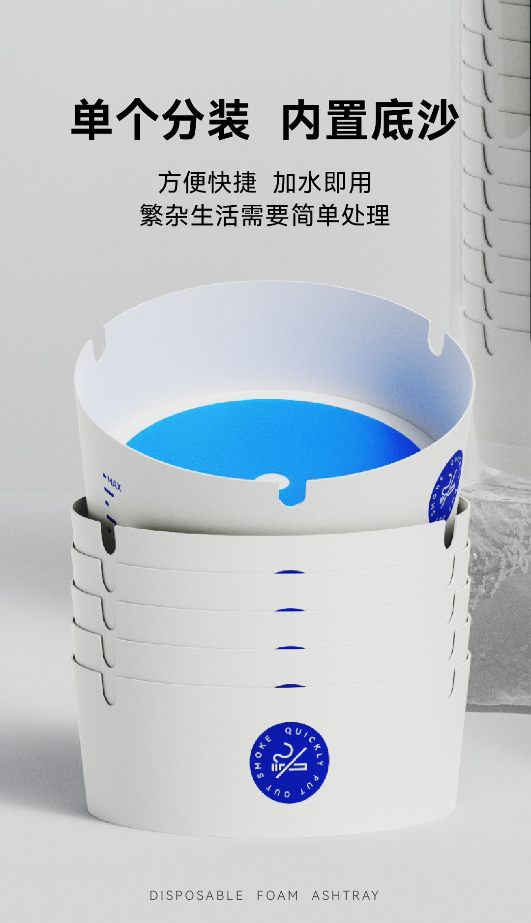 推荐理由:一次性产品使用便捷不用清理即用即丢,抽取式设计拿取方便,不用手动倒/拿灭烟沙,加水即用用完即丢,能真正做到一次性产品的便捷