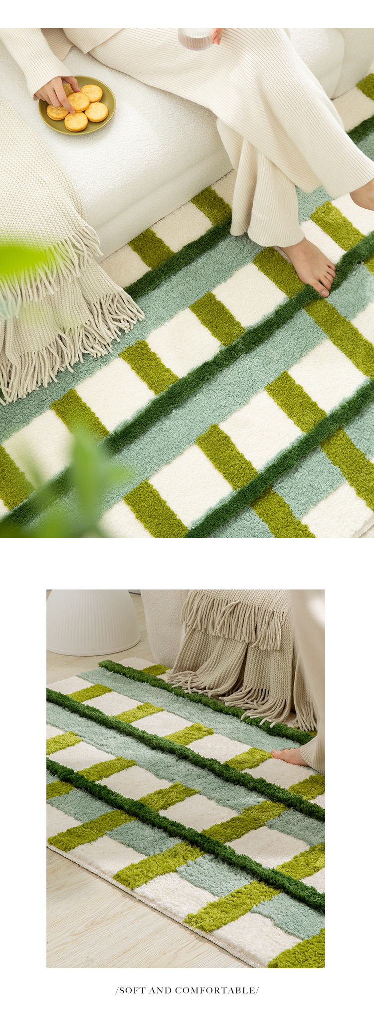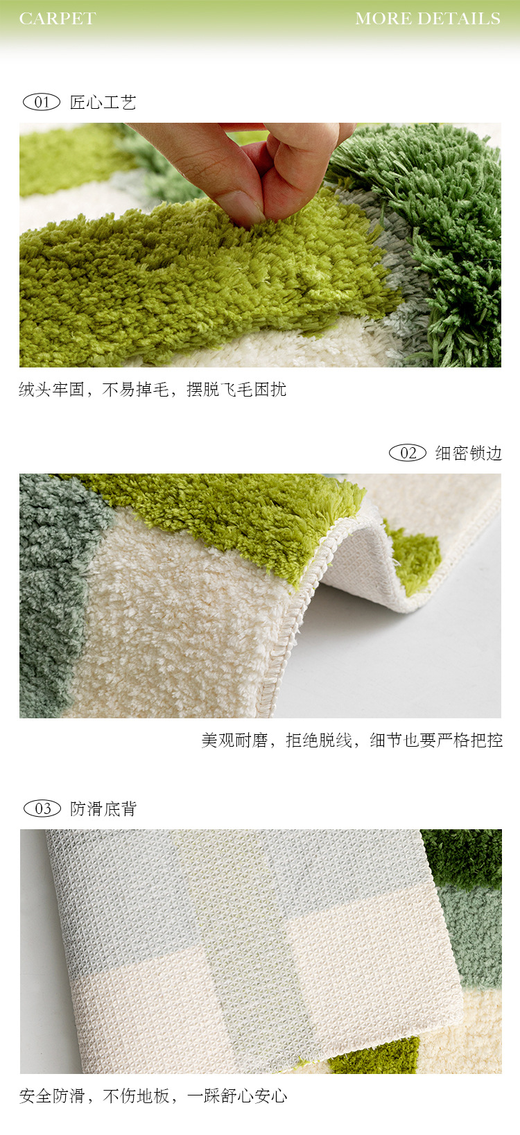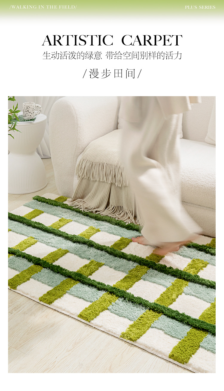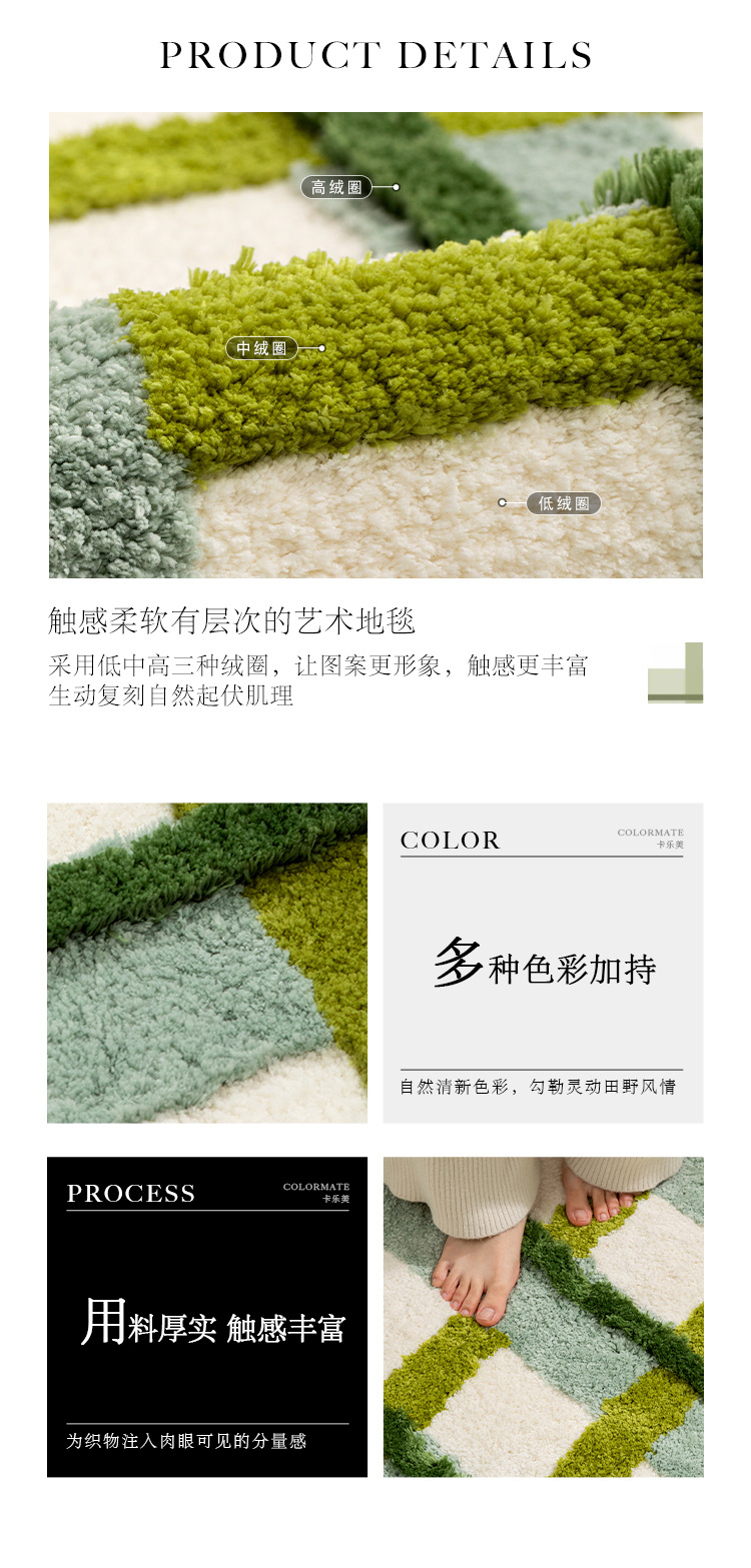 田园小清新植绒地毯装饰垫簇绒隔凉卧室书房耐磨可机洗地毯可折叠