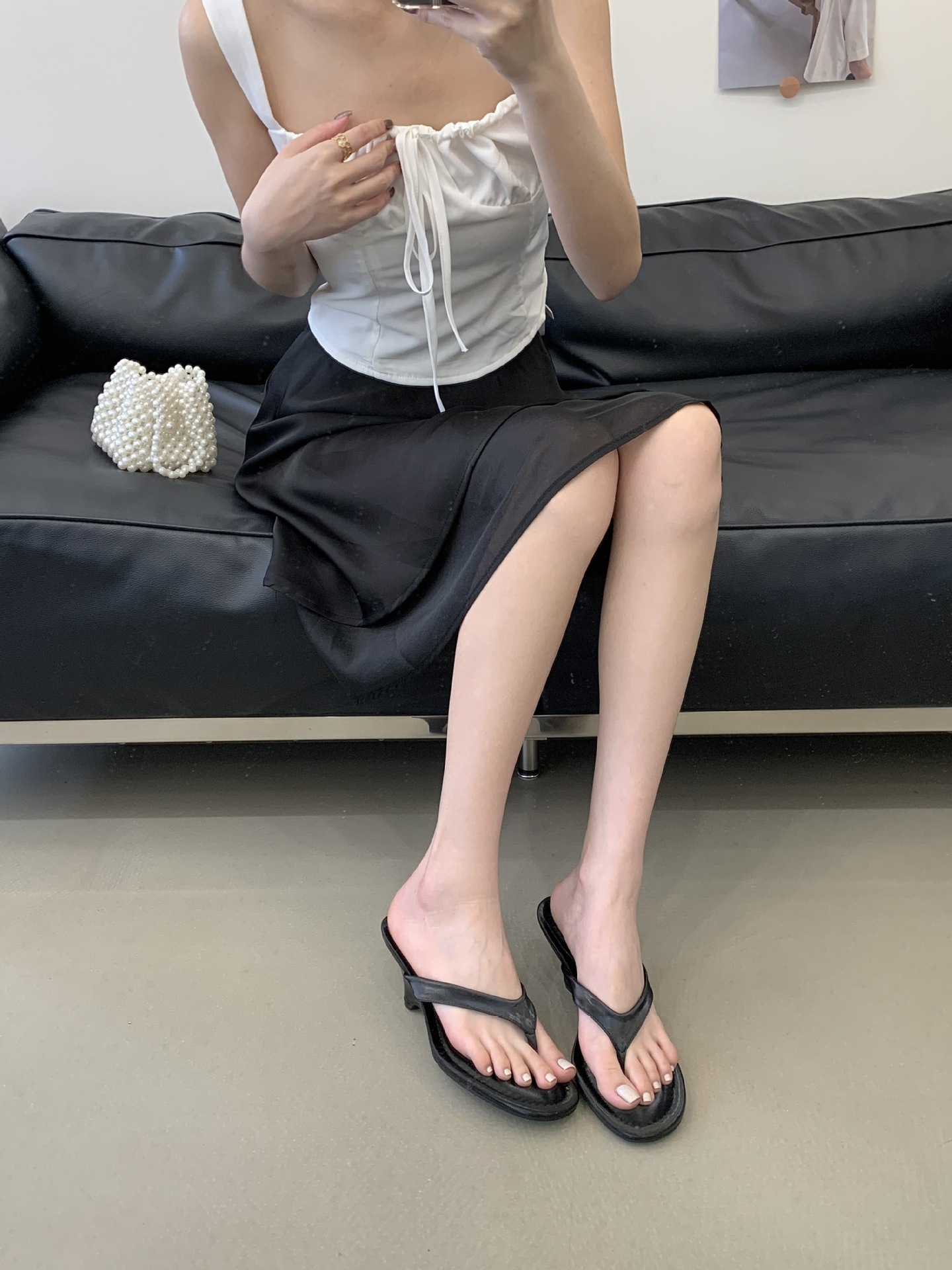 轻奢风酒杯跟纯色半托2026春季新款潮流时尚人字高跟半托舒适女鞋