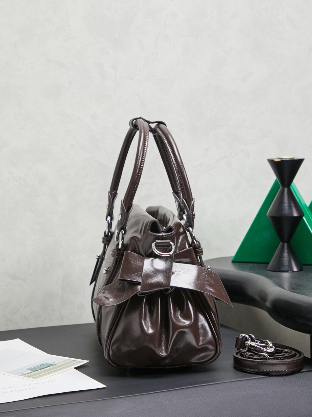 自带拉链与斜背肩带,包包拉链可以折进去适合多种风格造型,经典版型与趣味蝴蝶结结合,成就新型机车包