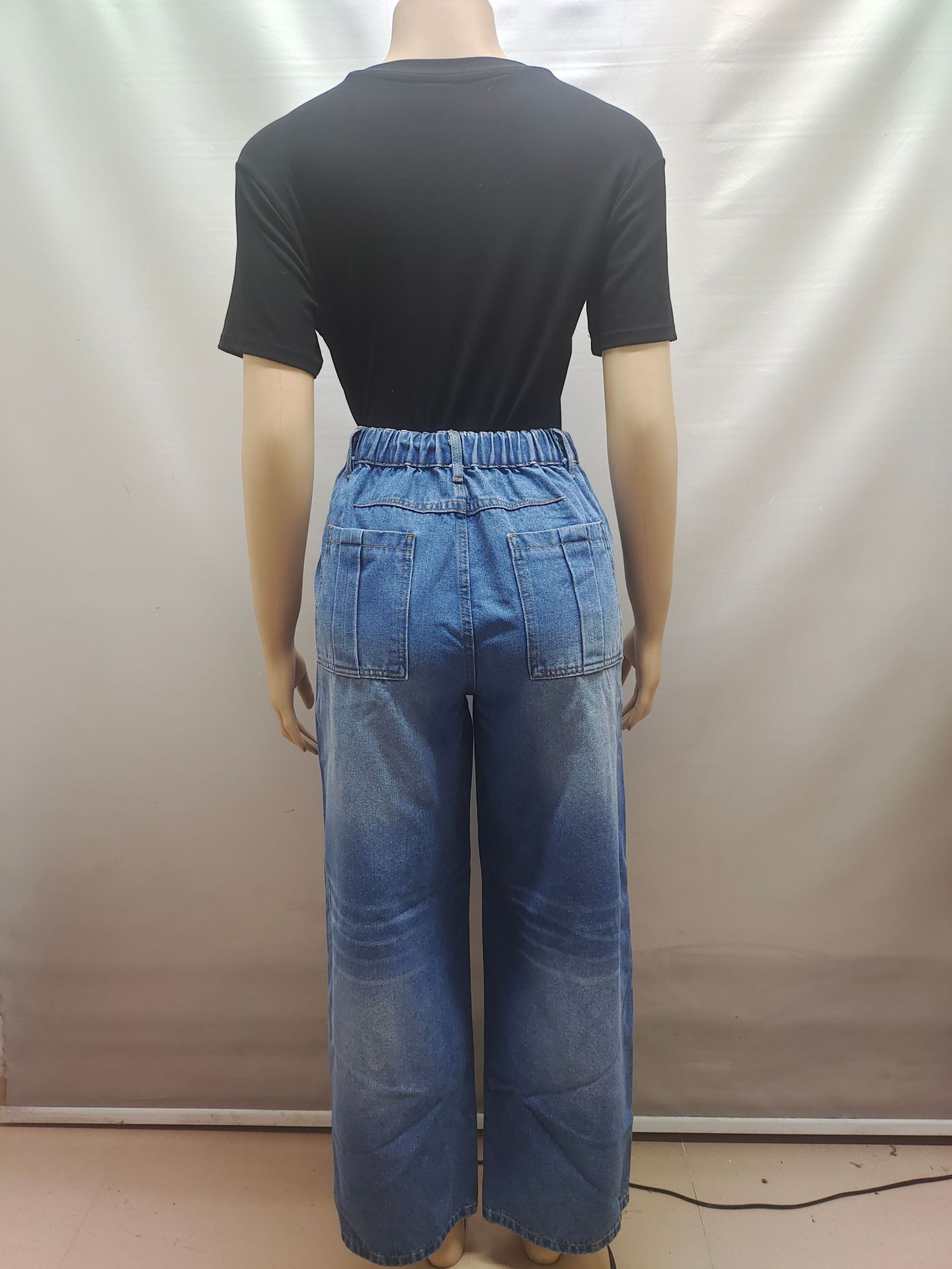 关键词:欧美跨境新款女装,亚马逊外贸专供,休闲牛仔裤,复古高腰直筒裤