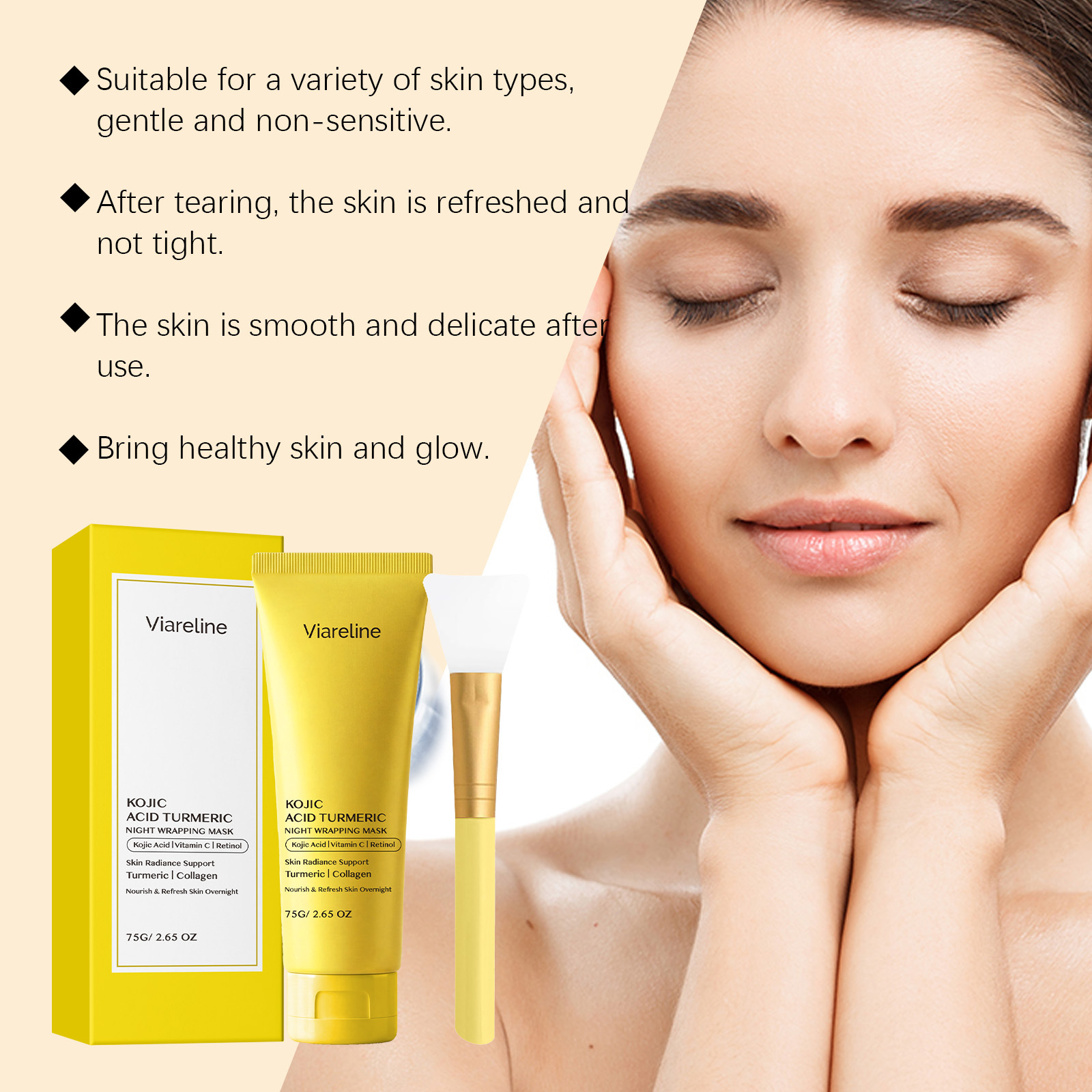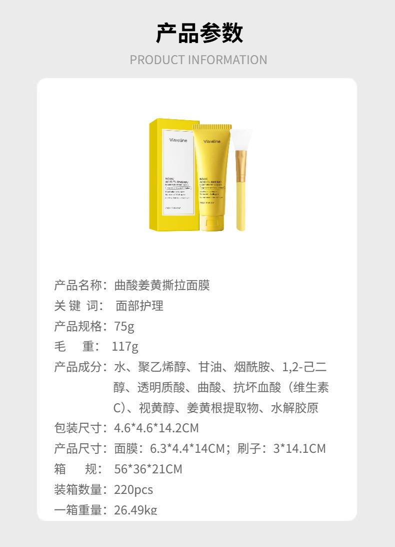 VIARELINE 曲酸姜黄撕拉面膜 滋润面部肌肤日常温和清洁补水面膜