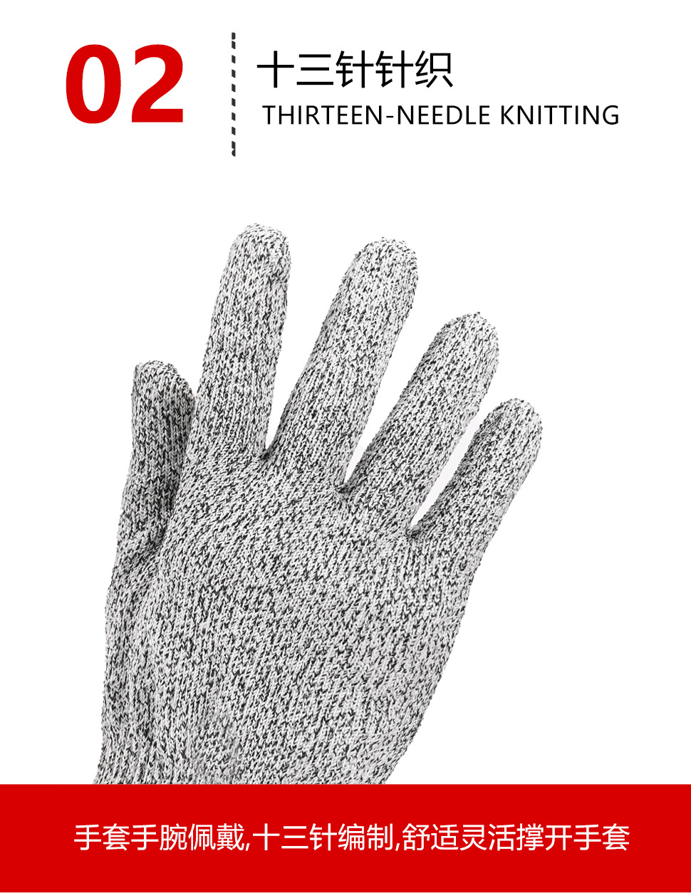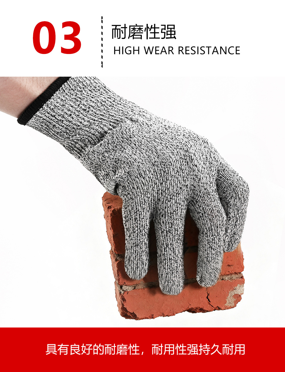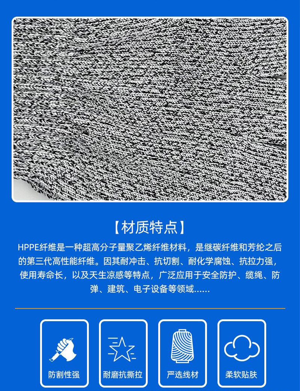 5级防割HPPE纤维手套园艺耐磨安全劳保手套防切割手套生产厂家