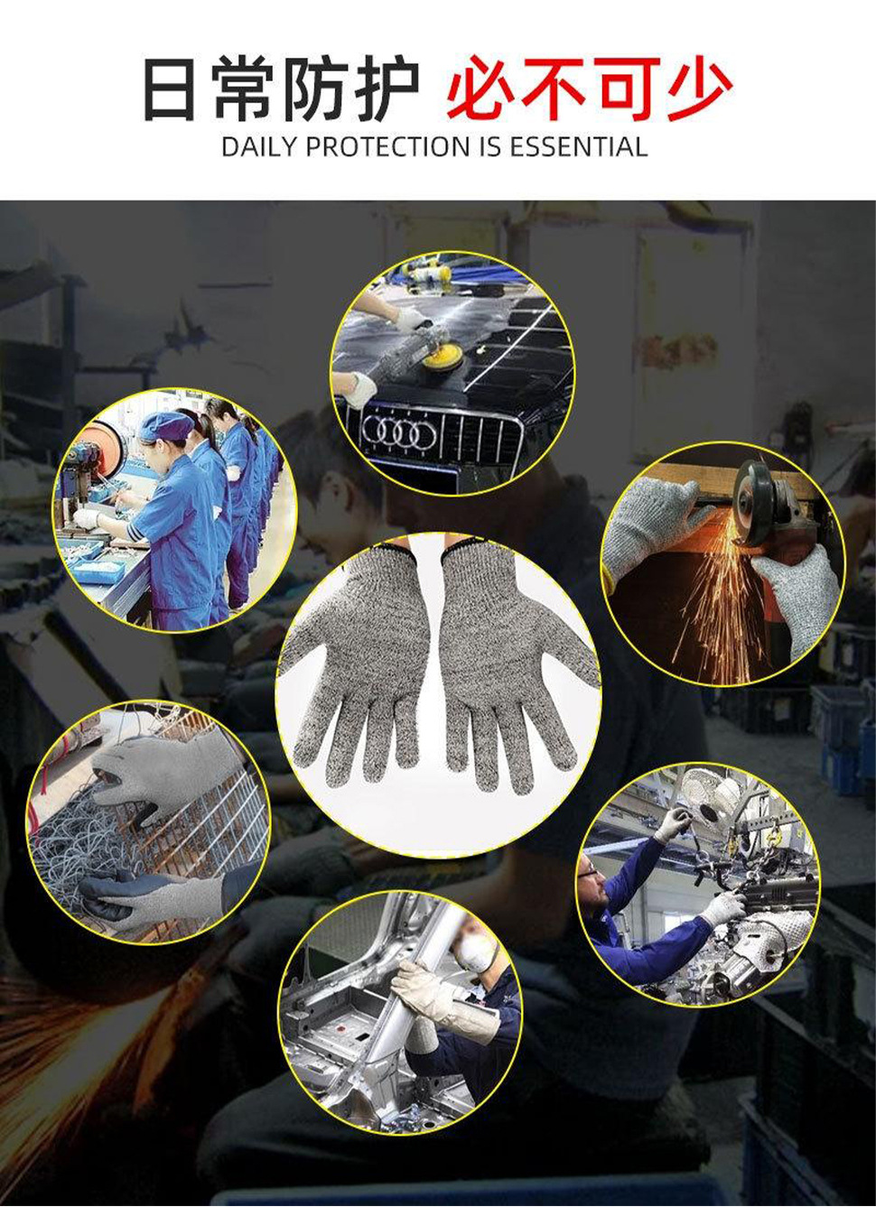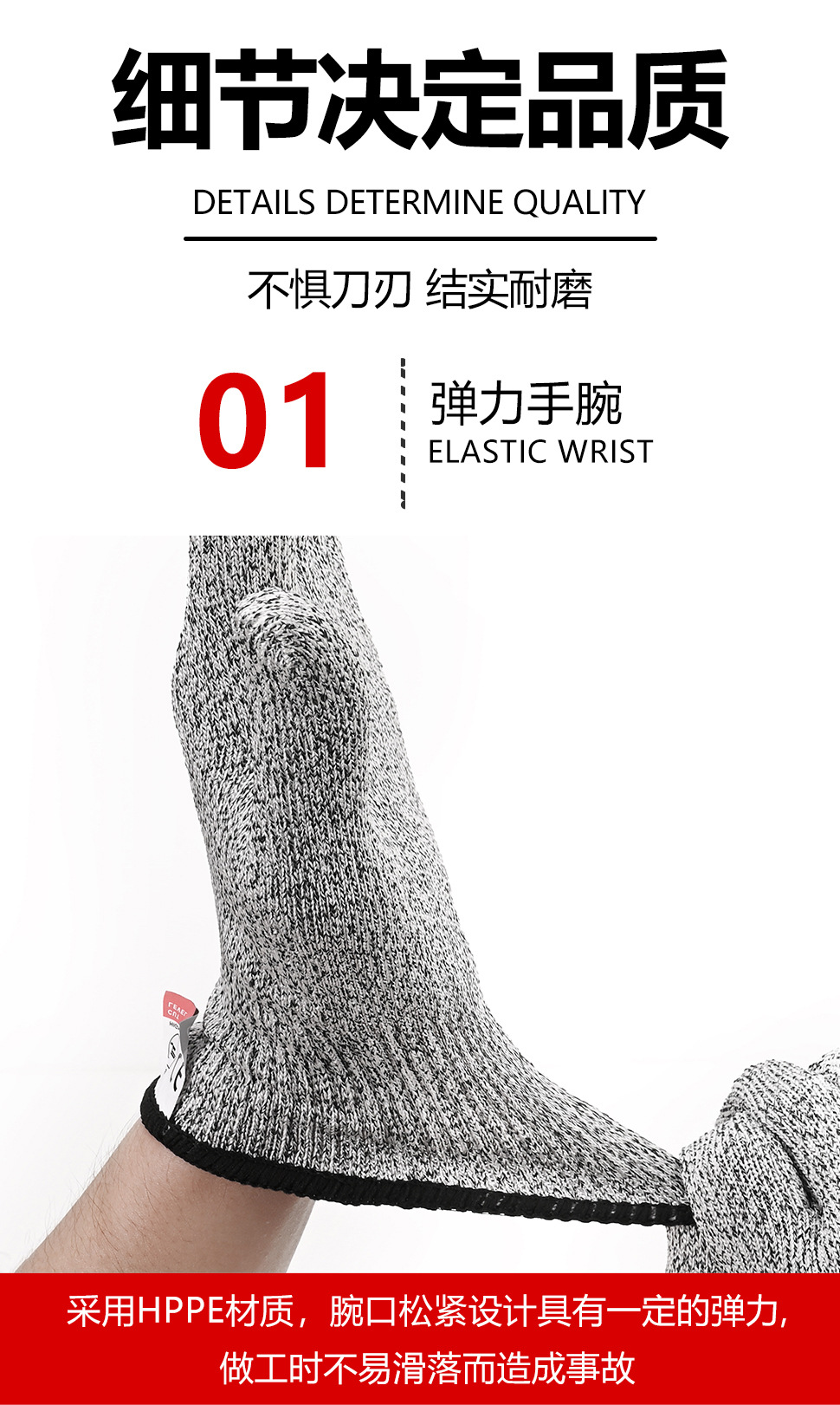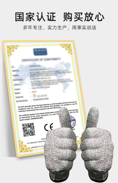 5级防割HPPE纤维手套园艺耐磨安全劳保手套防切割手套生产厂家