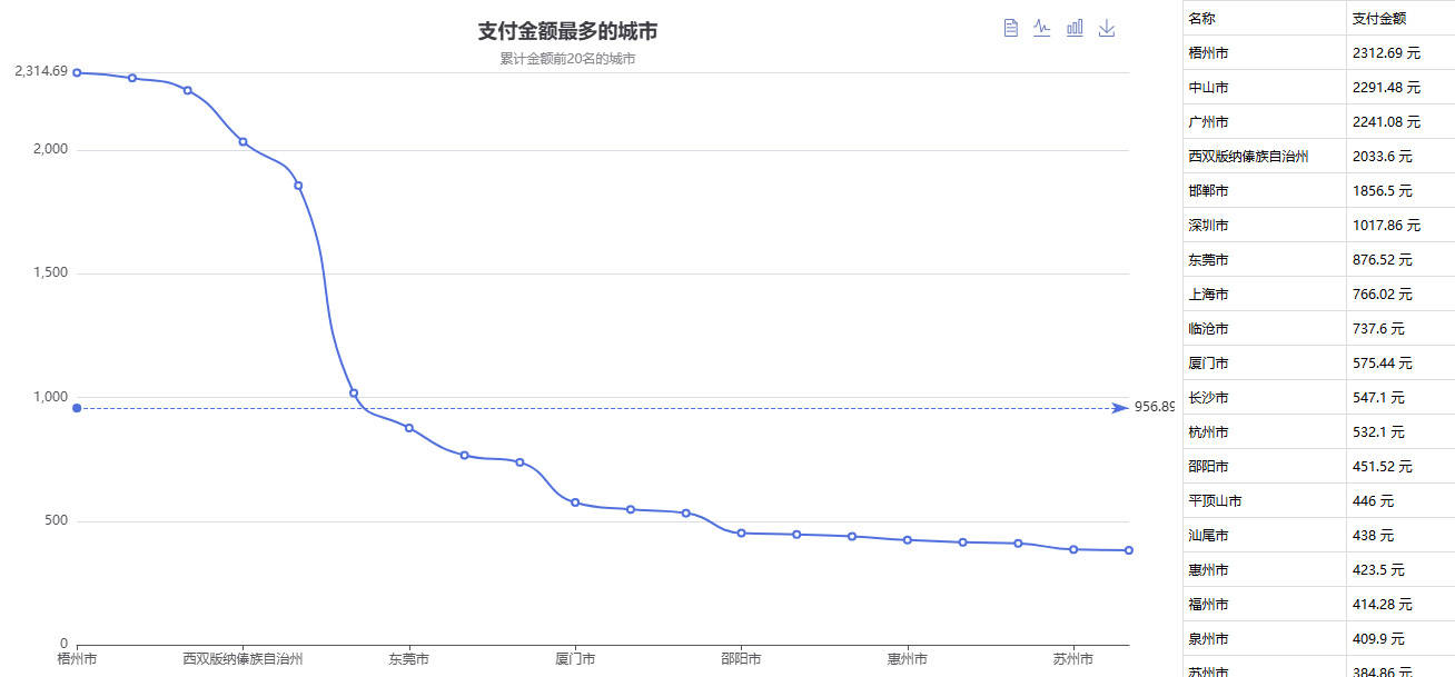 在区域分析方面,交易分析功能可以精准识别下单和支付最多的省份及城市。这些数据对商家具有重要价值:一方面可以优化仓储布局,在热门区域设置前置仓缩短配送时间;另一方面可以针对高消费区域制定精准营销策略,提高广告投放ROI。