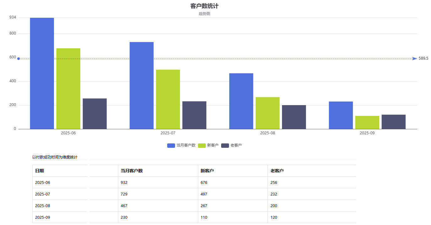 - 数据统计:掌握特定时间段老客户数量、新老客户占比,依趋势调整产品与运营策略;