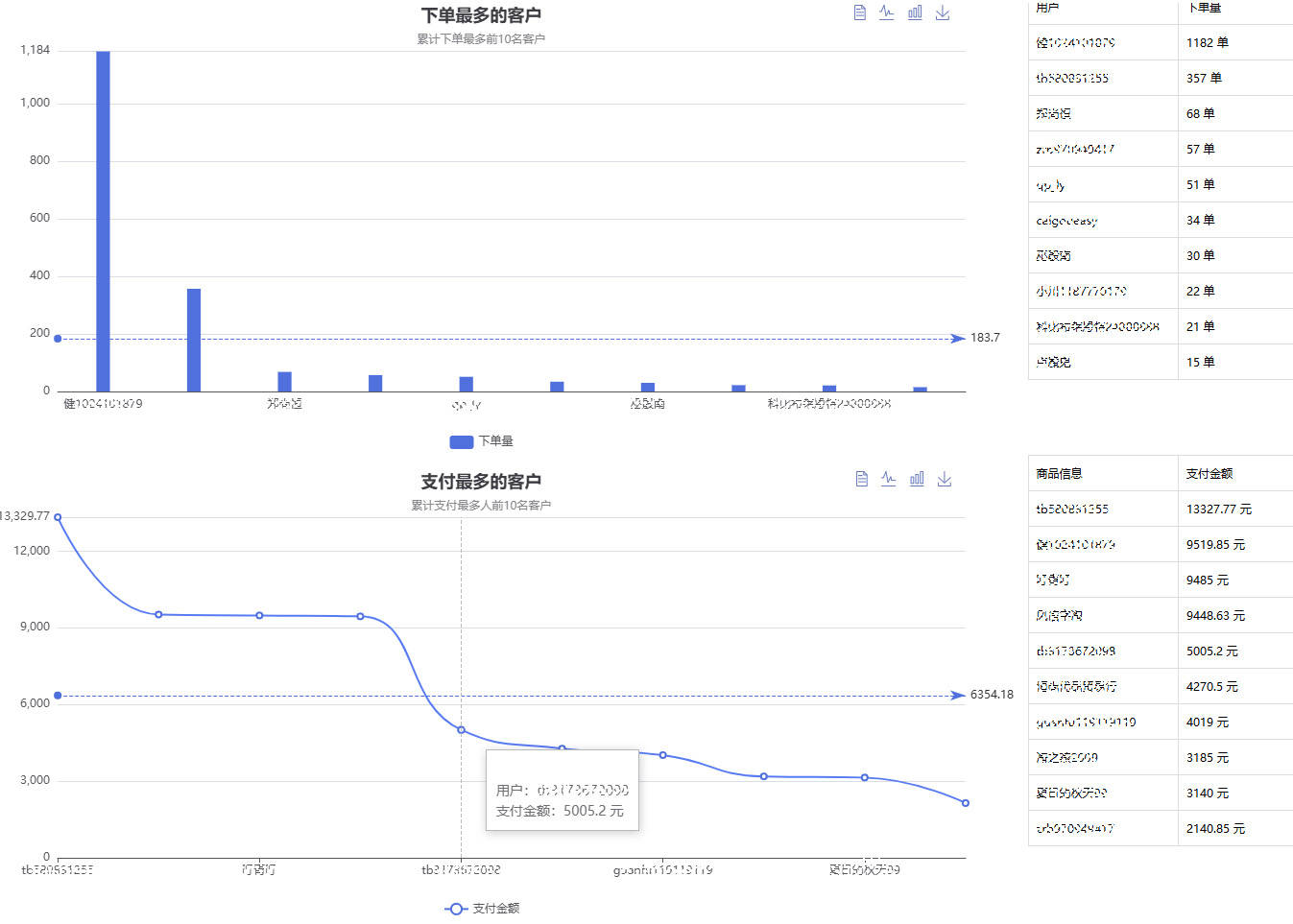 - 单个客户分析:输入名称即可判断新老身份,获取地址、支付时间 / 金额、电话、旺旺等数据,新客户引导转化,老客户细致维护。