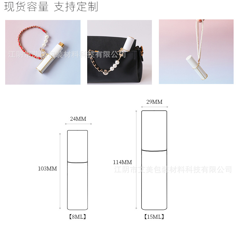 来图来样厂家定制随身便携装珍珠链条包挂喷雾瓶10ml旋转分装瓶