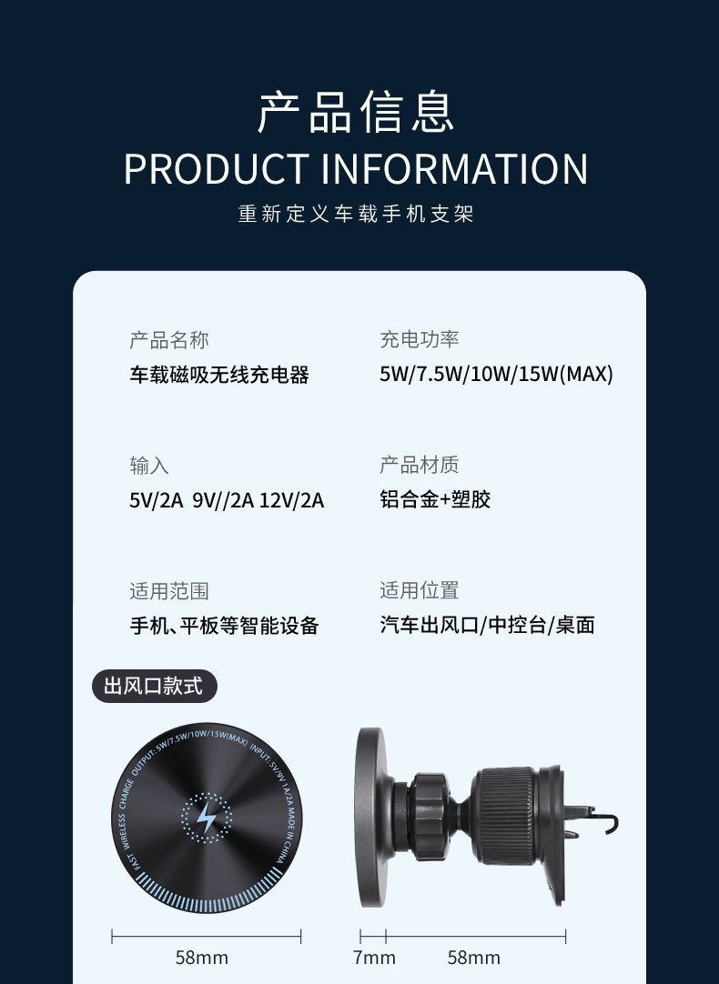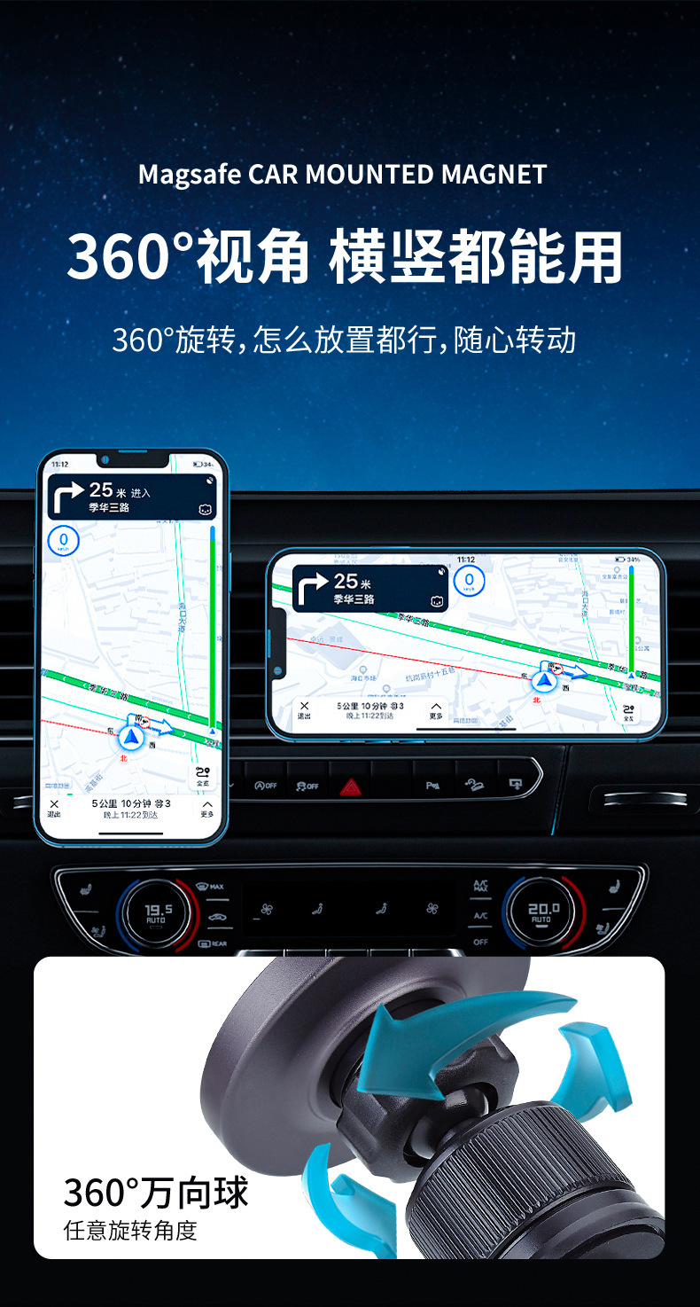 车载磁吸手机支架 磁吸无线充 汽车多功能滴滴导航手机充电支架
