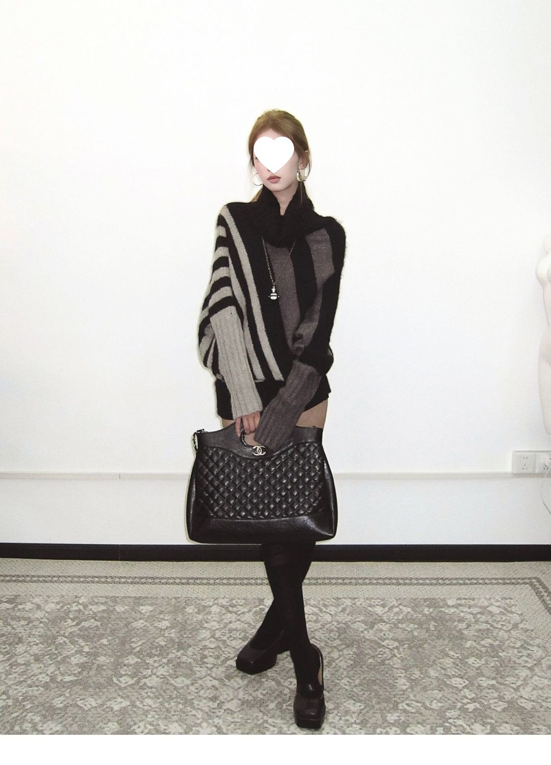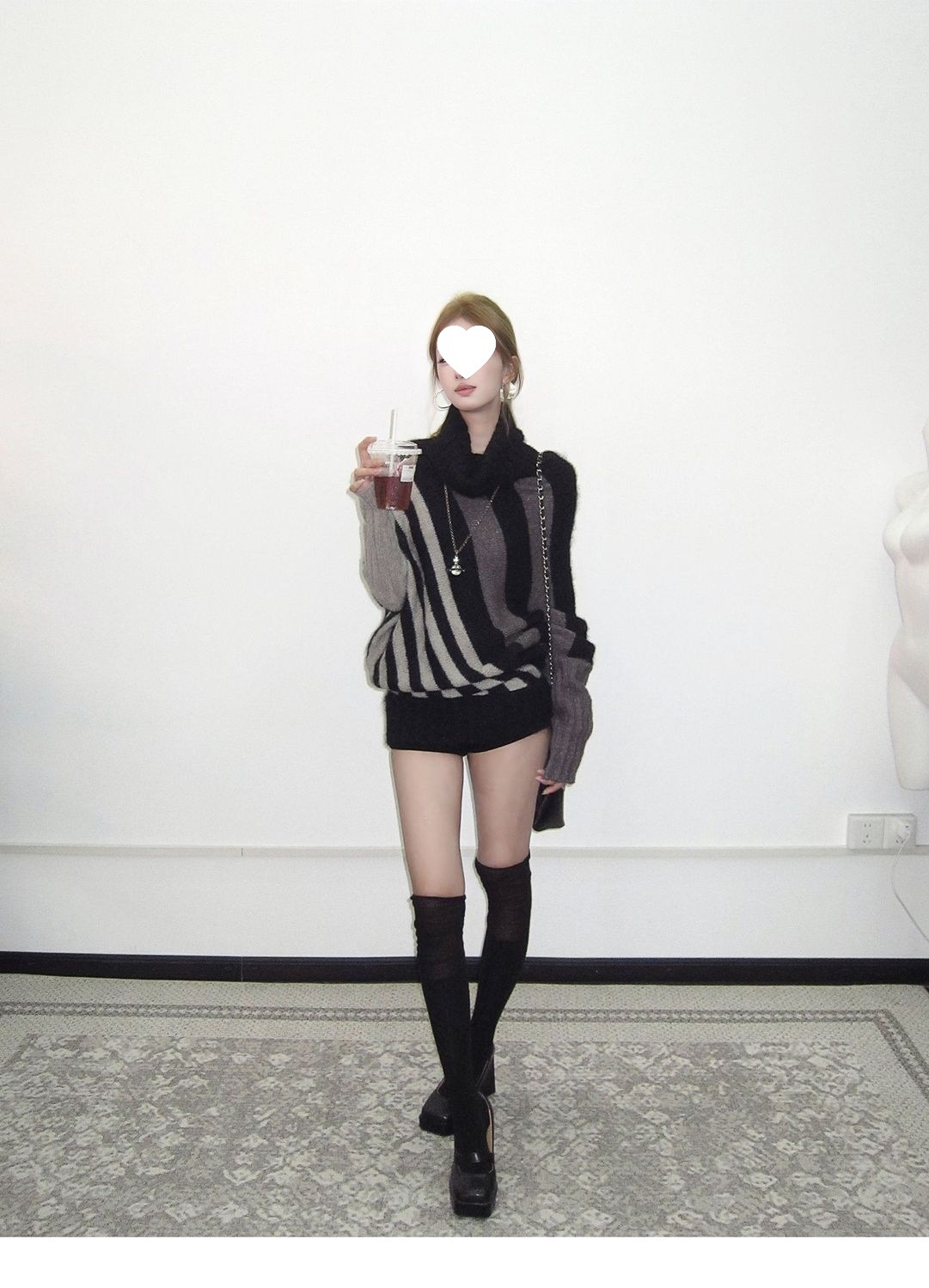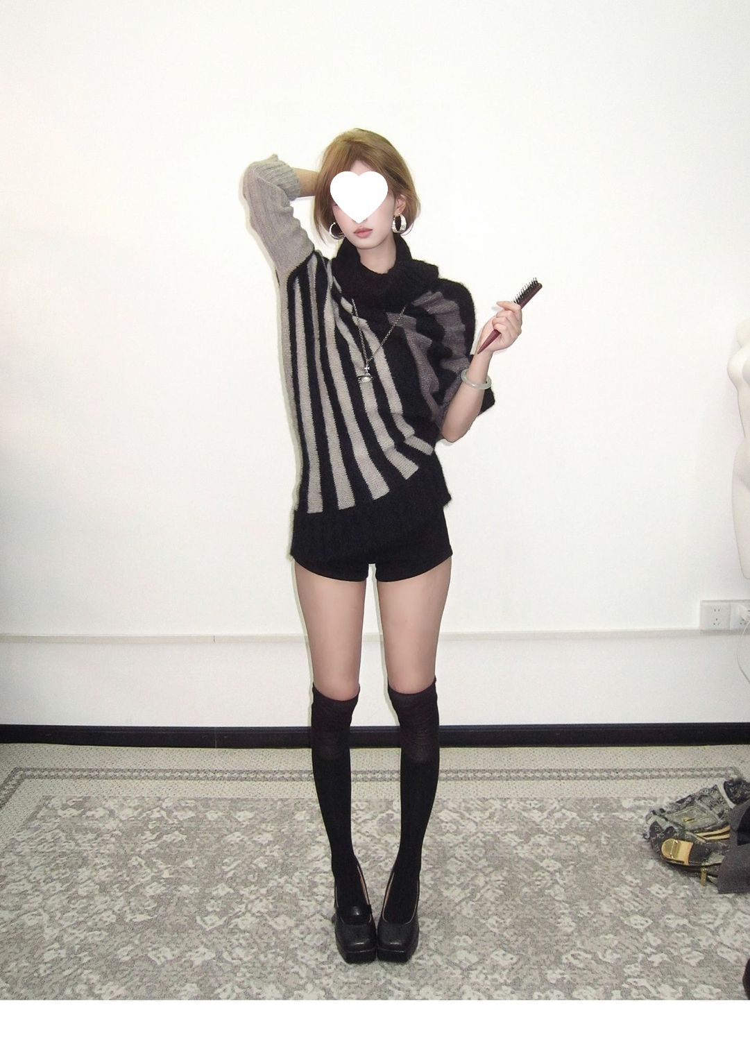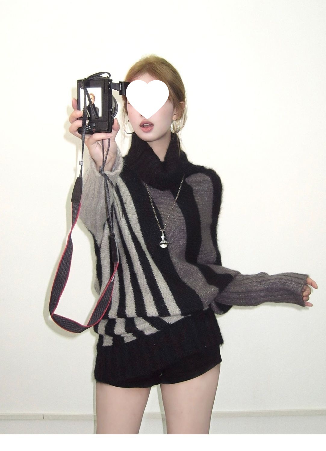 蝙蝠衫uiua可撞色黑白反穿R古早上下条纹毛衣造型混纺nr多灰