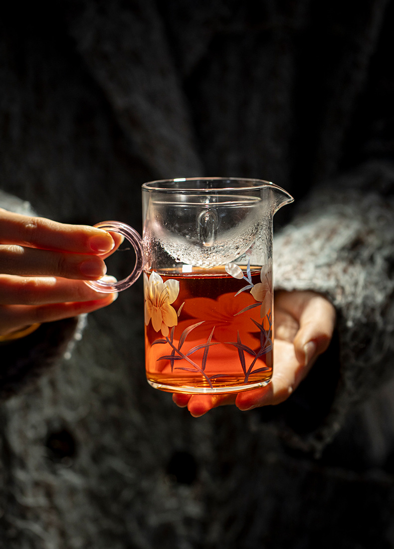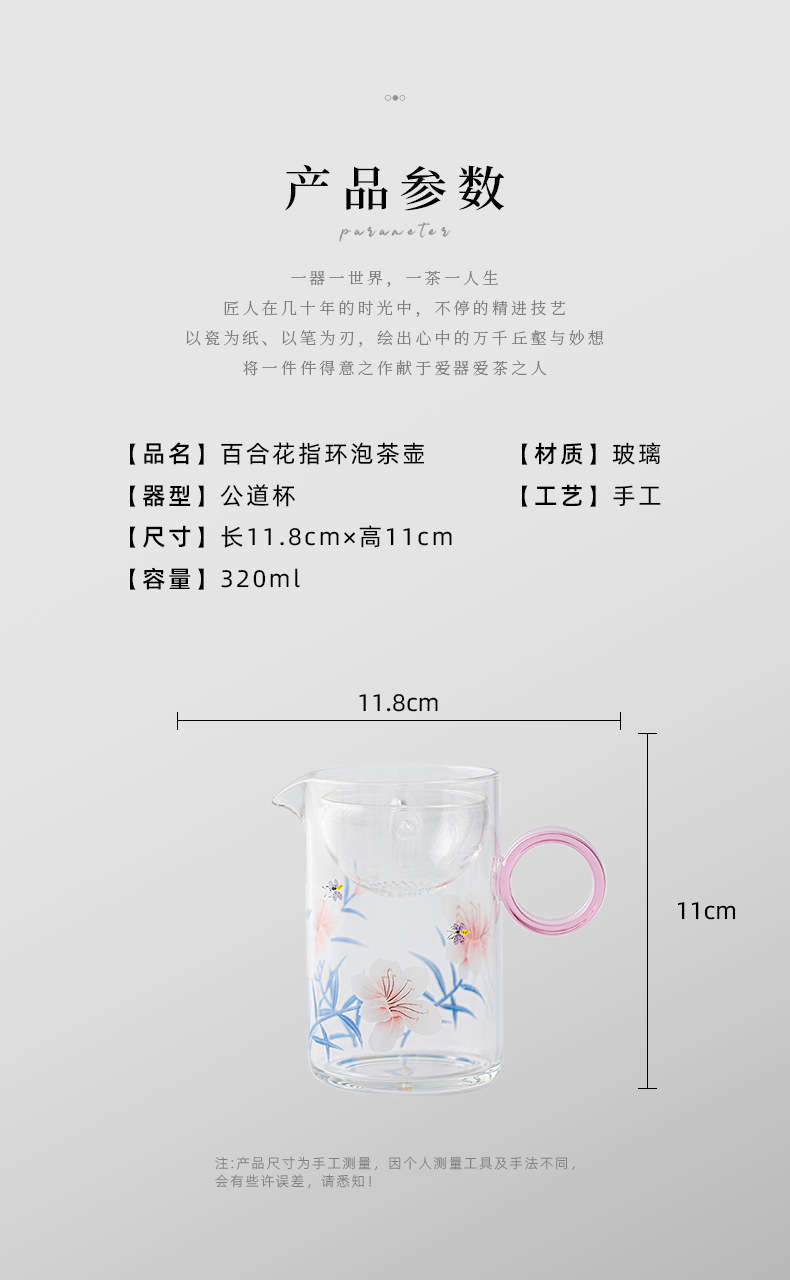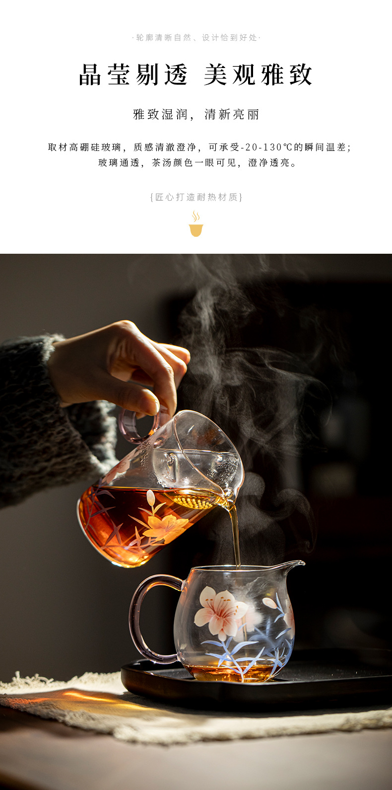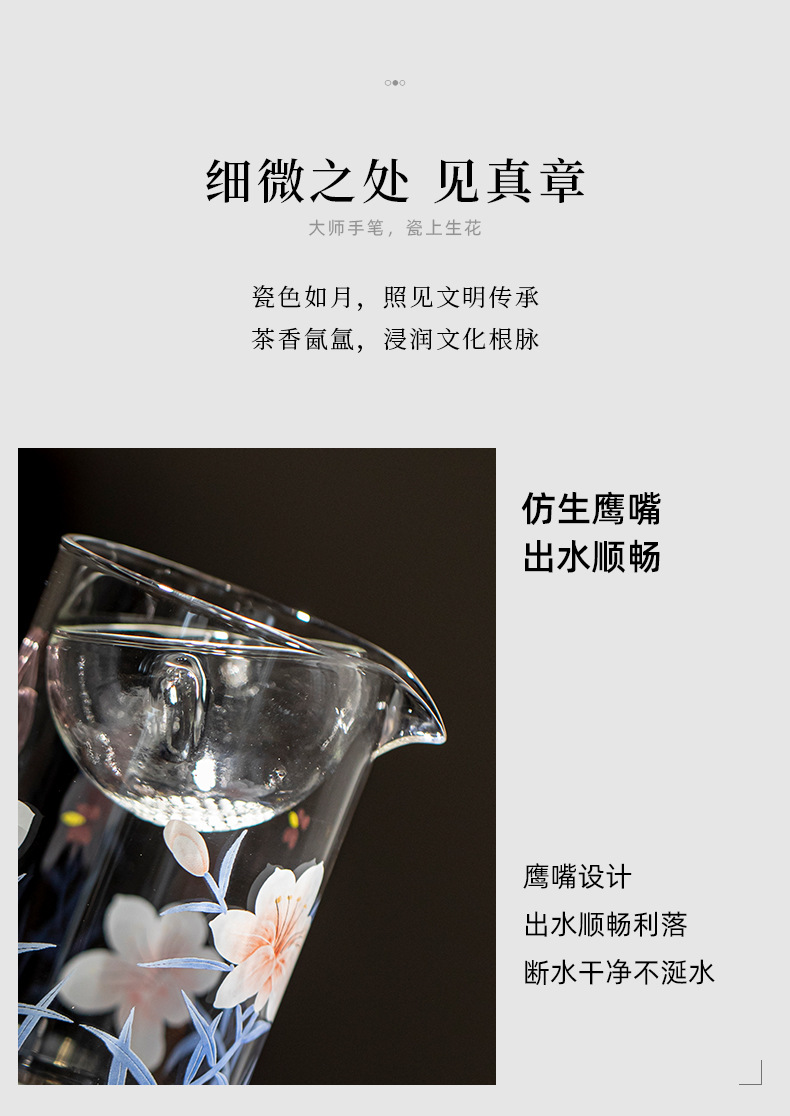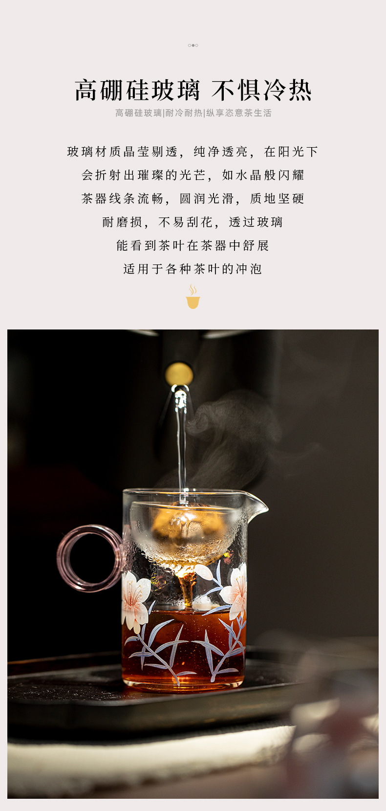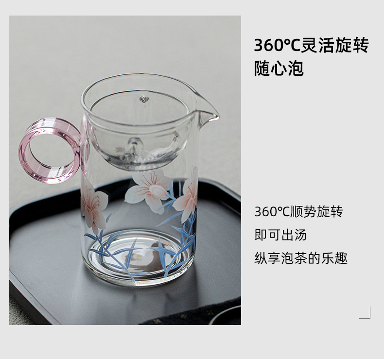 耐高温透明玻璃百合花专业泡茶壶公杯茶水分离飘逸杯