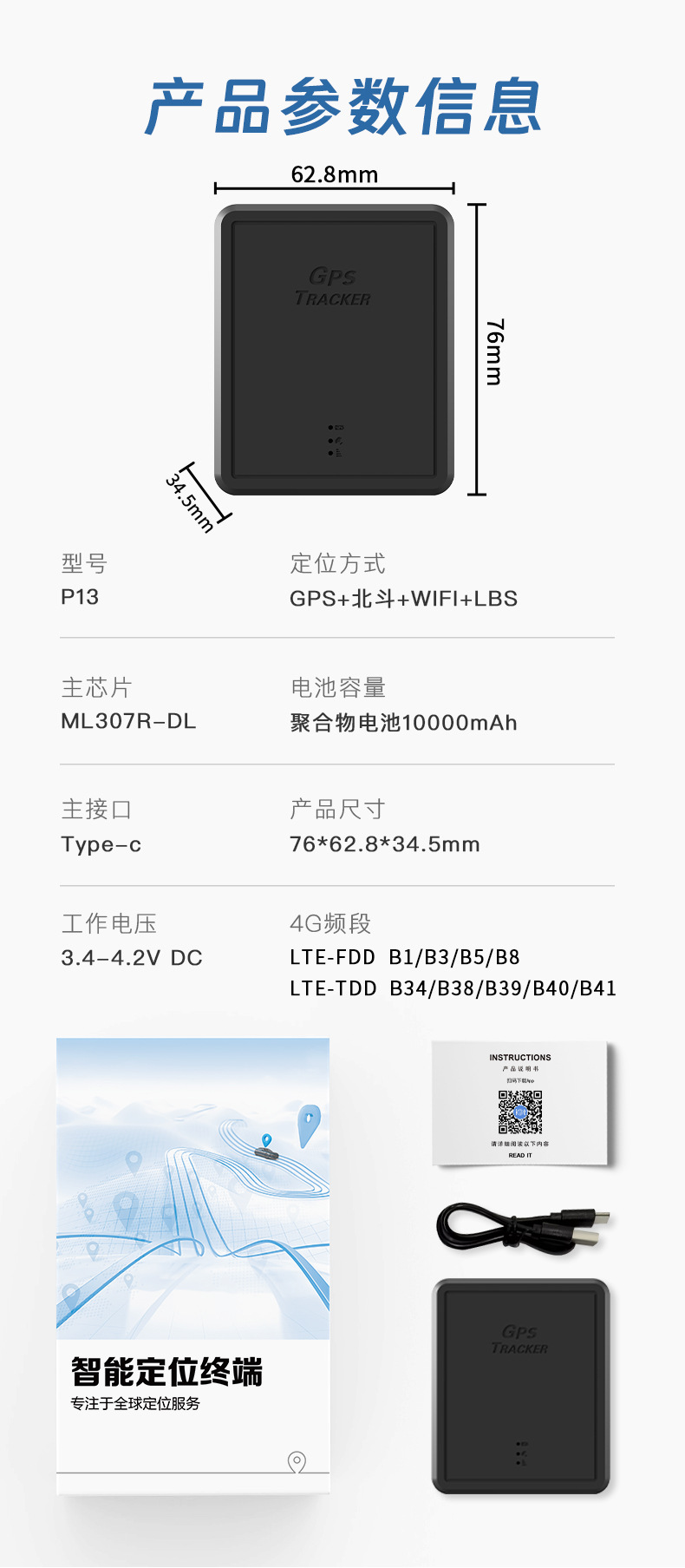 GPS定位追踪器1万毫安持久续航电子围栏精准定位信号稳定汽车定位
