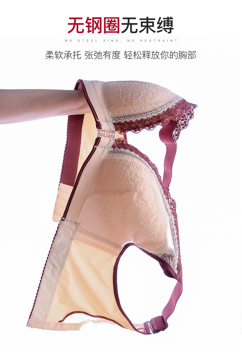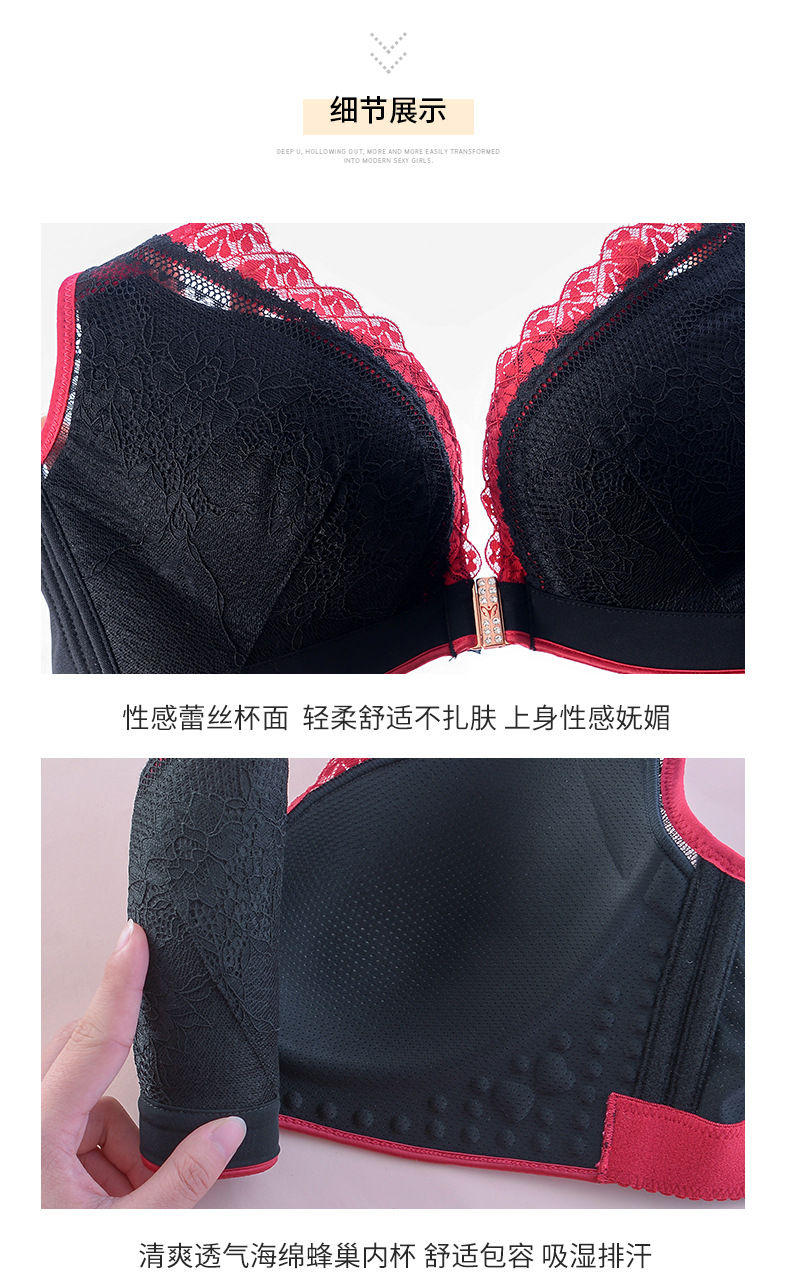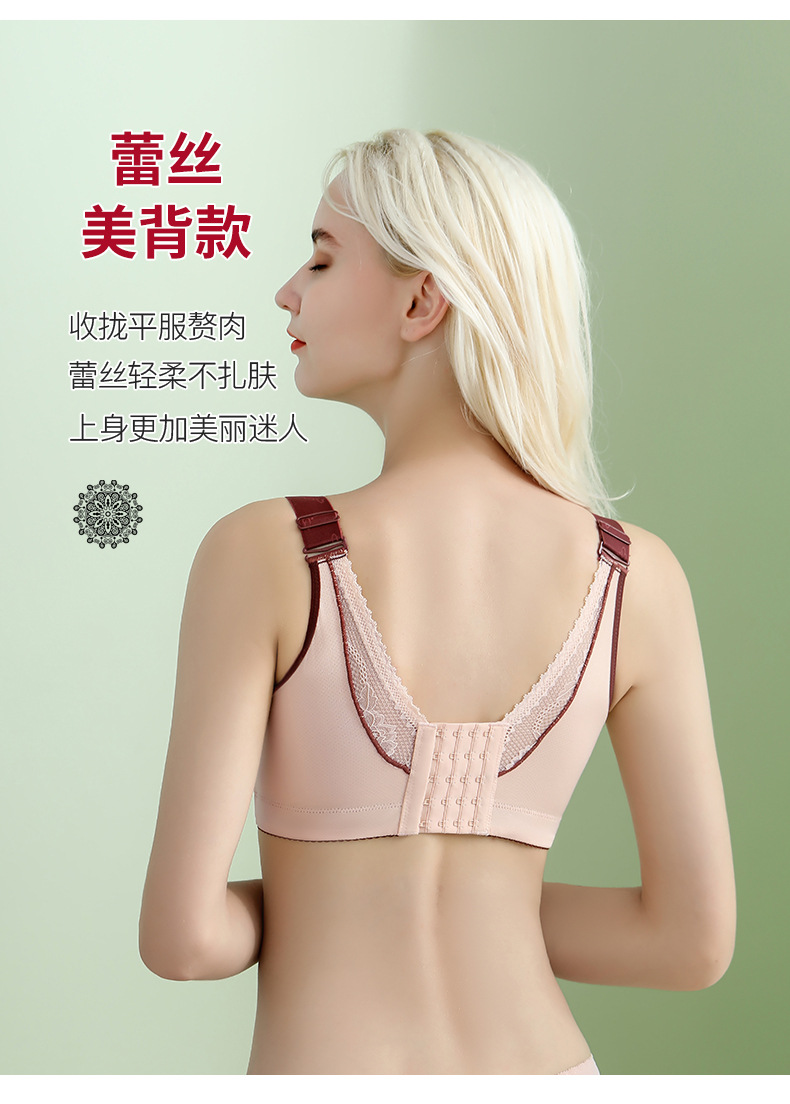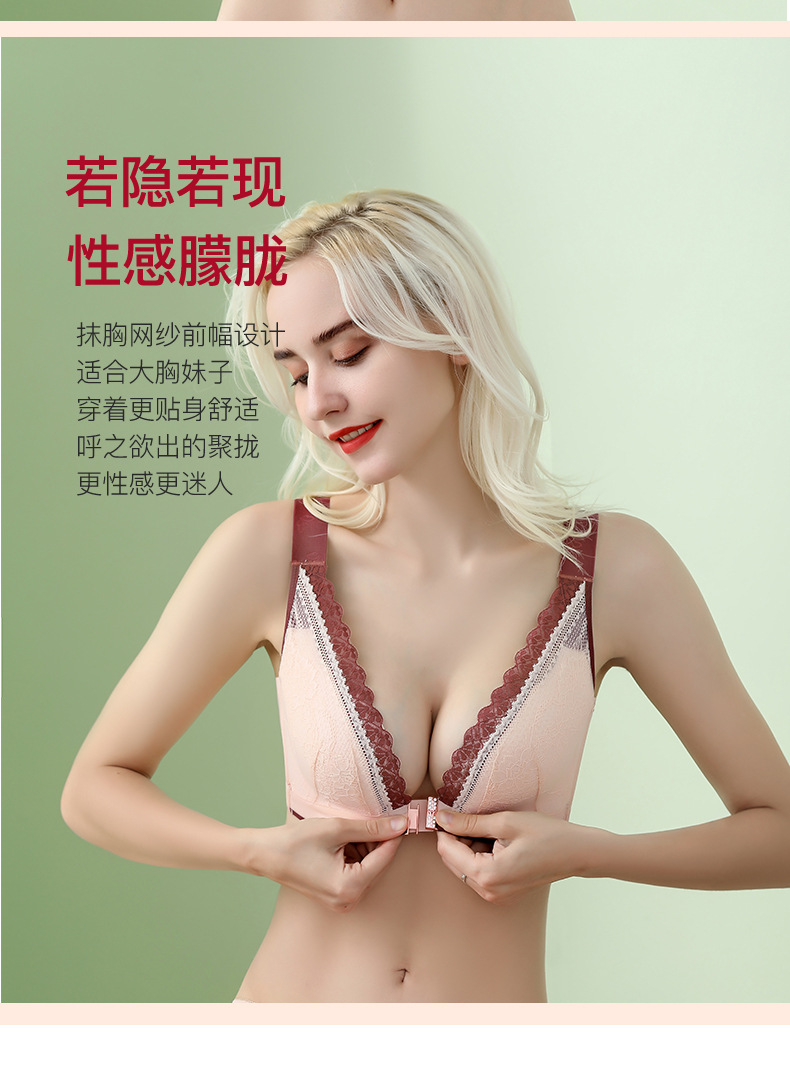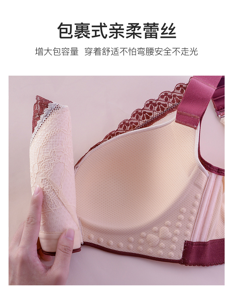 性感大码前扣蕾丝美背夏季薄款大胸显小调整型聚拢无钢圈收副乳罩