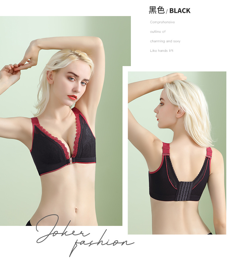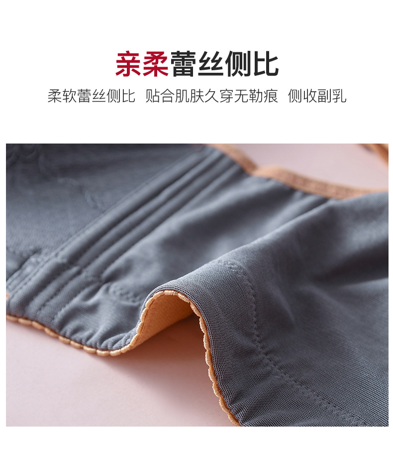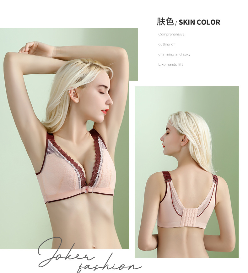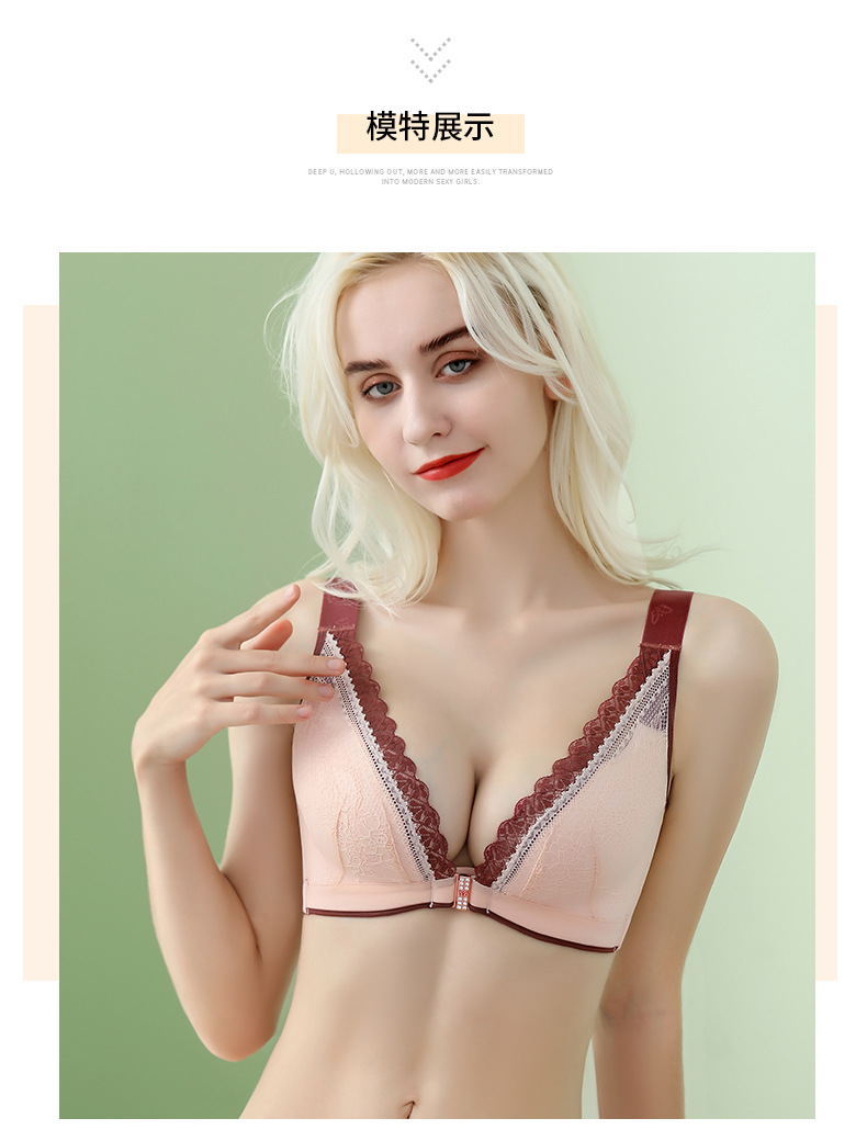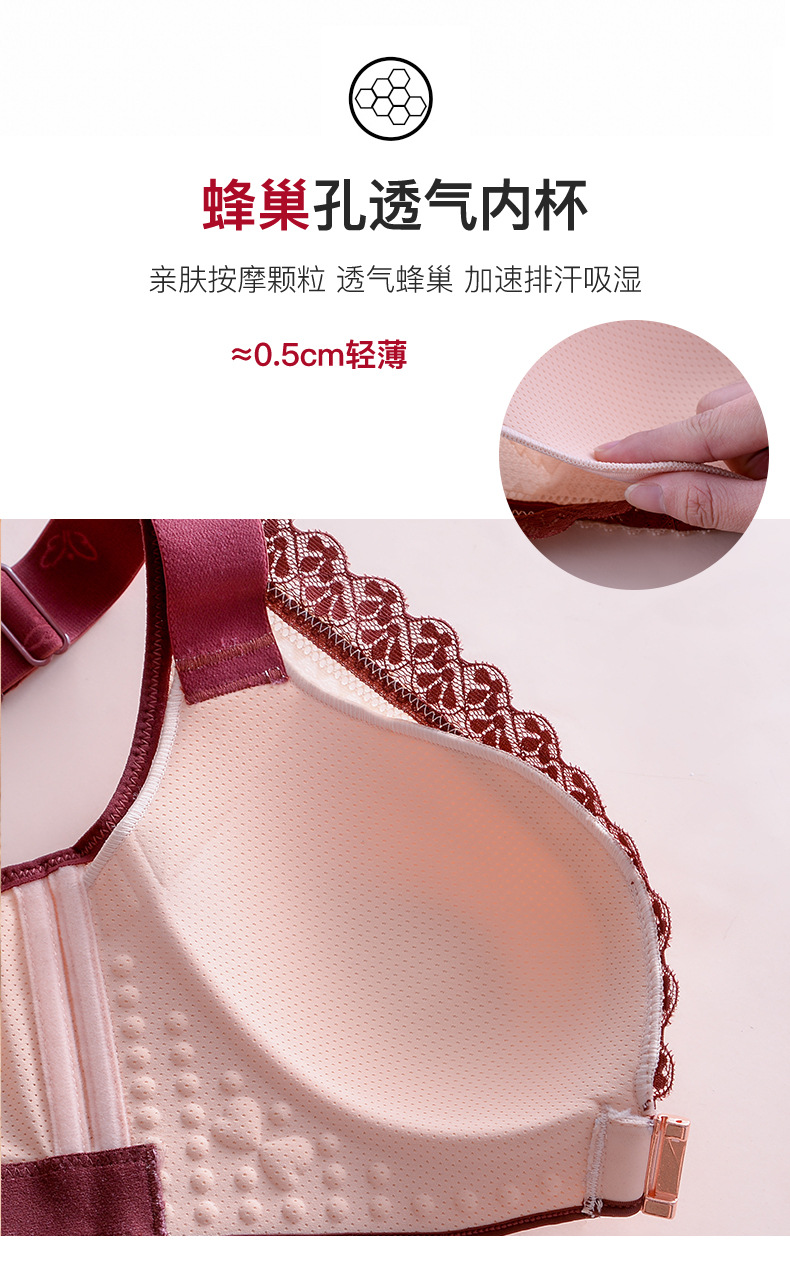 性感大码前扣蕾丝美背夏季薄款大胸显小调整型聚拢无钢圈收副乳罩