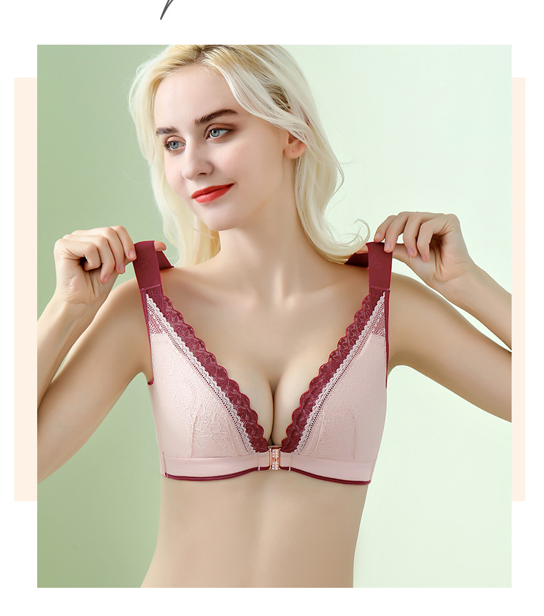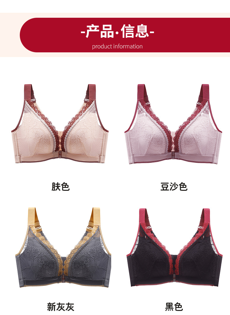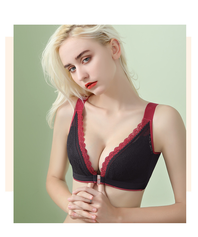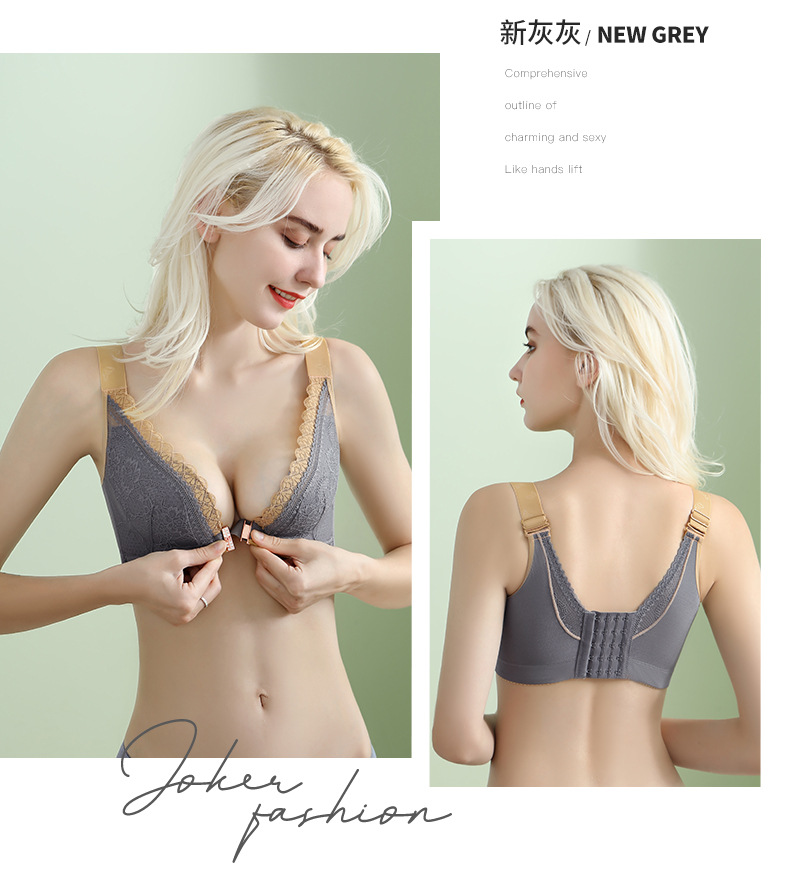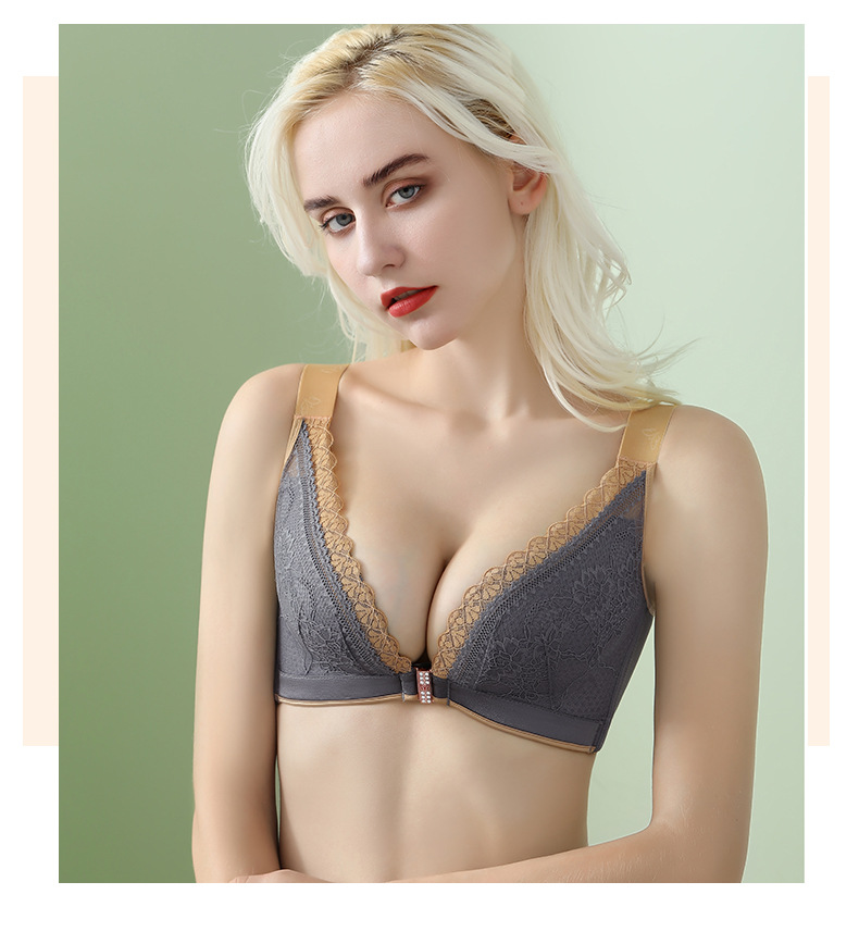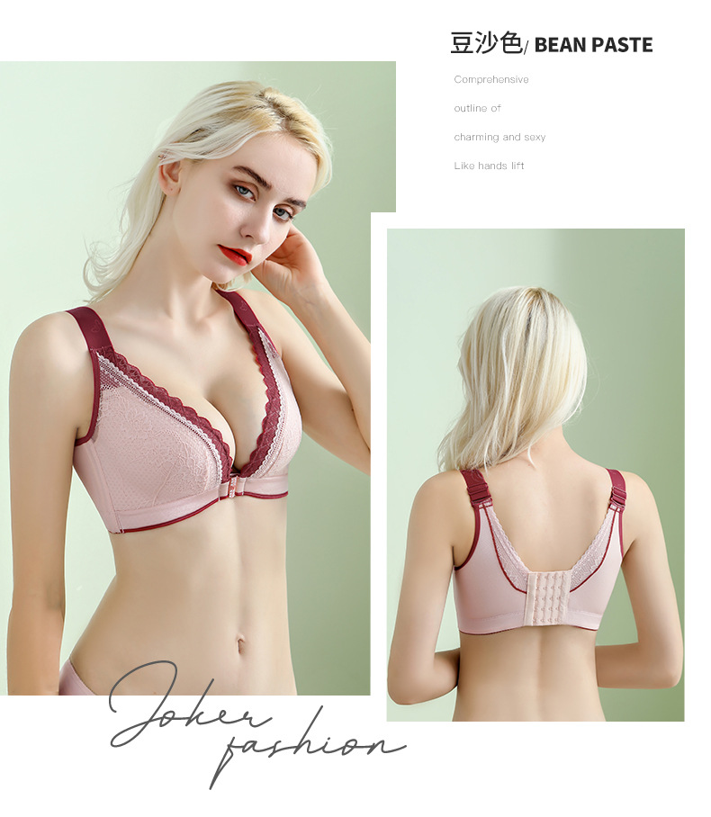 性感大码前扣蕾丝美背夏季薄款大胸显小调整型聚拢无钢圈收副乳罩