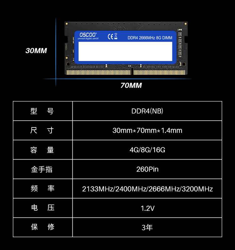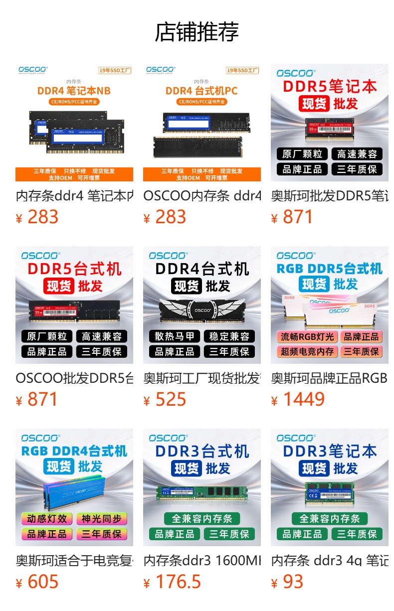22年内存条工厂现货批发DDR4 台式PC LONGDIMM 4GB 8GB 16GB 2400MHZ 2666MHZ 3200MHZ OSCOO 品牌正品 官方质保三年