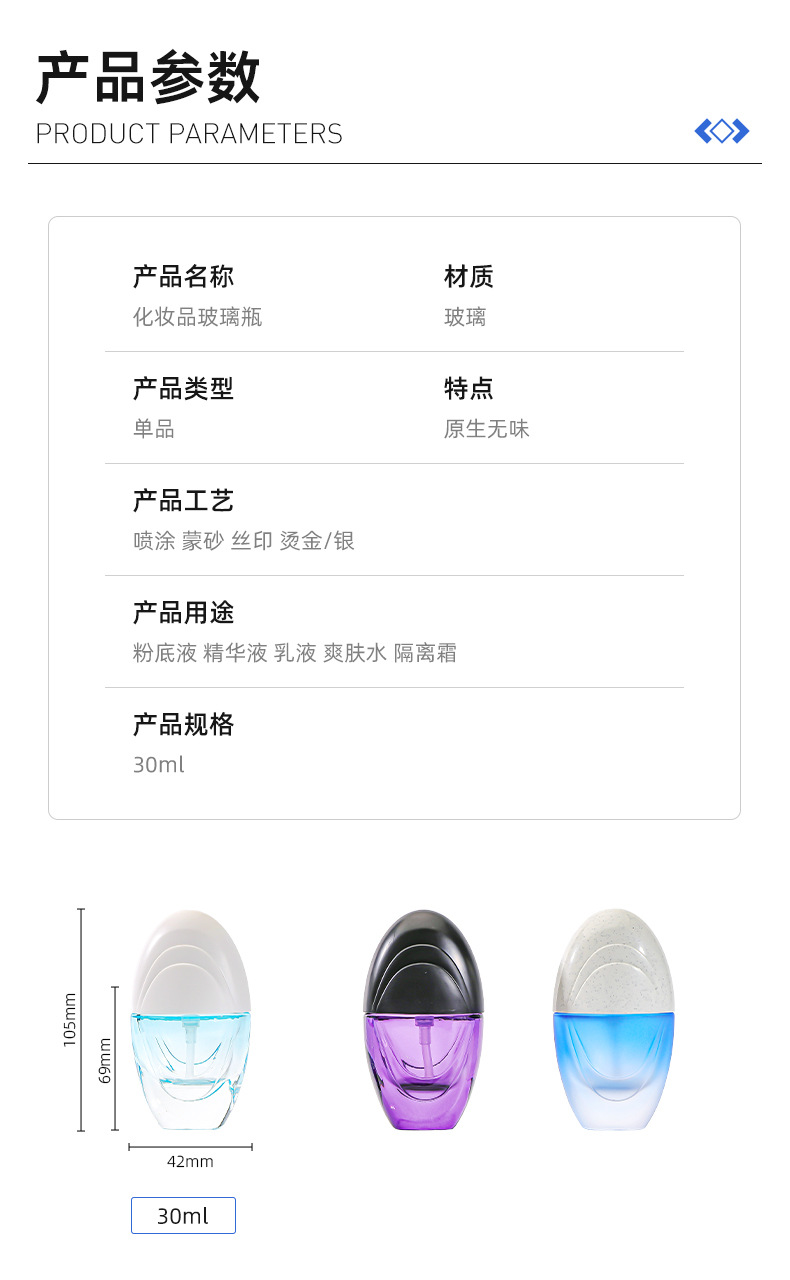 30ml扁圆贝壳粉底液隔离霜瓶 按压式精华液乳液爽肤水护手霜包材