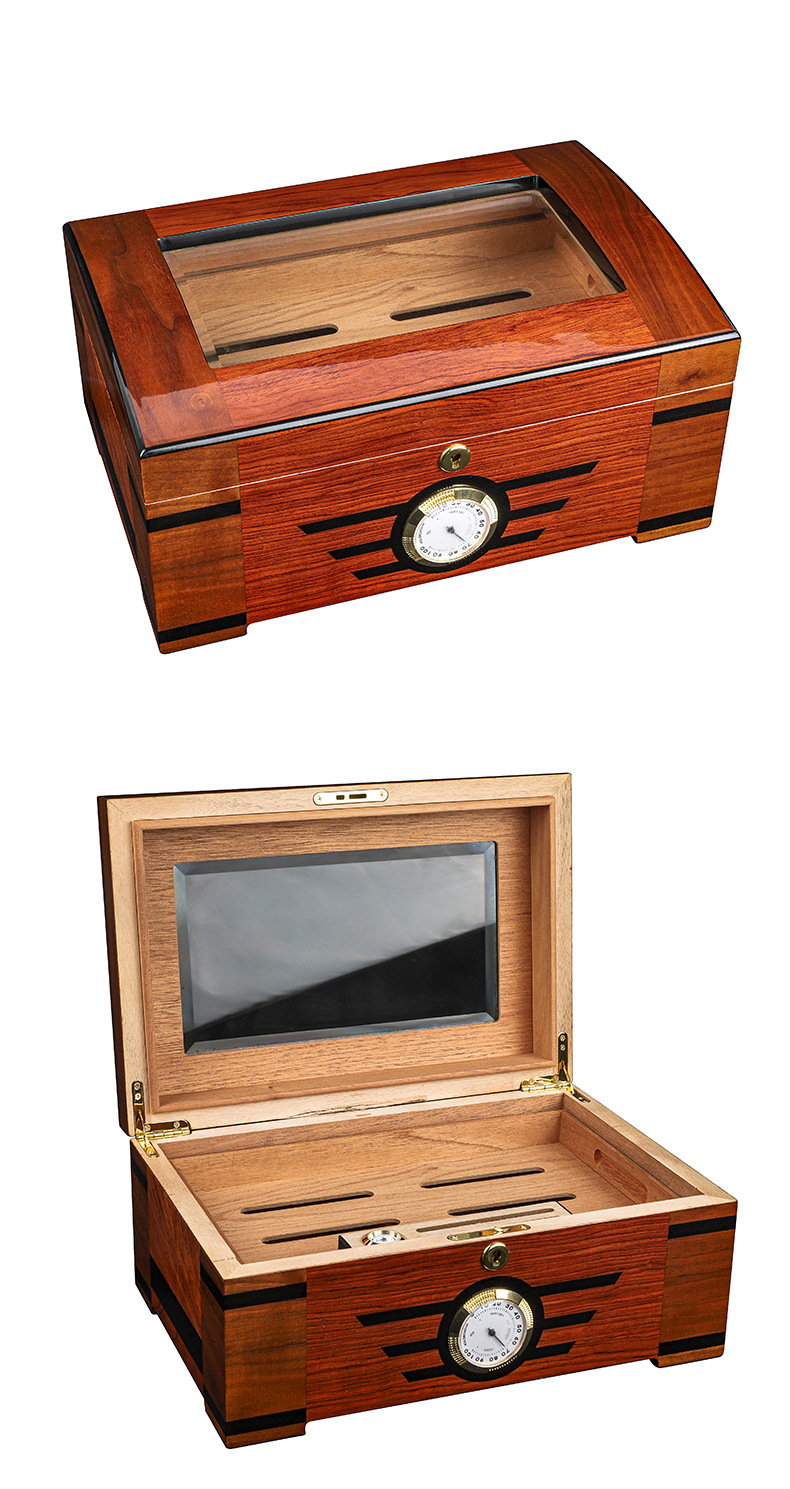 钢琴烤漆保湿雪松木材质实木开窗雪茄礼盒高端大容量收纳盒