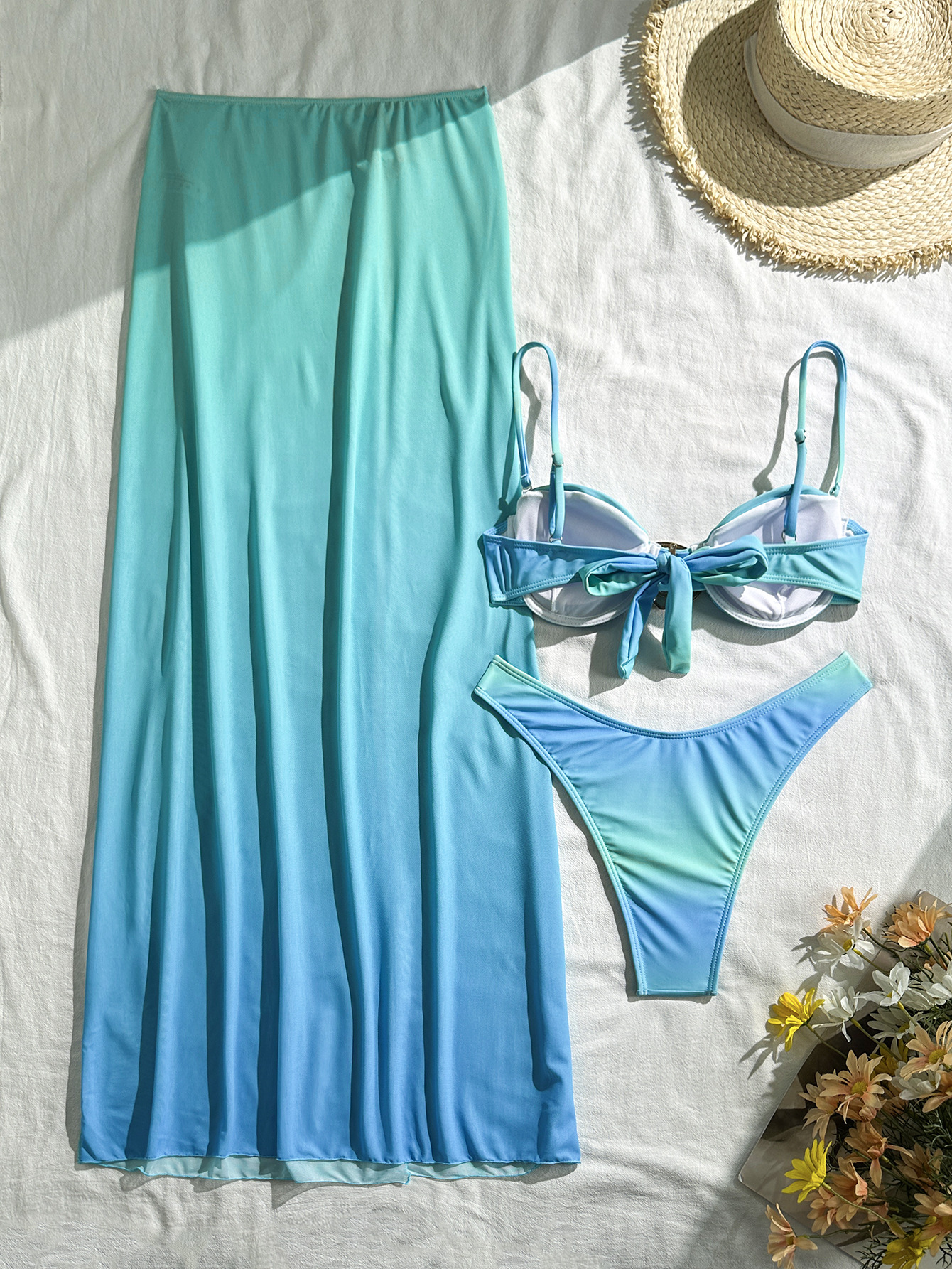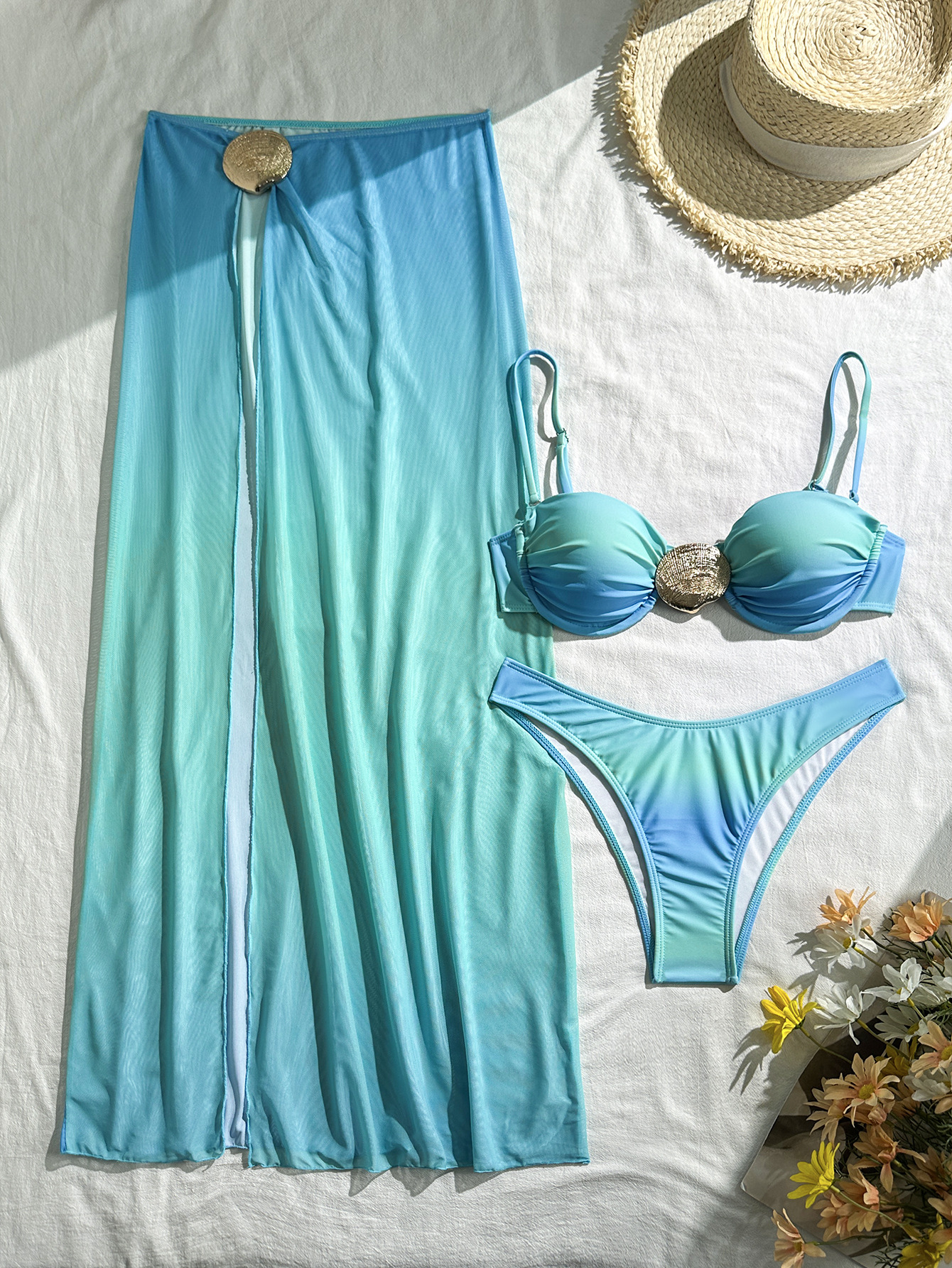 2026欧美爆款金属海蛎饰品分体三件套抹胸衣泳装比基尼bikini跨境