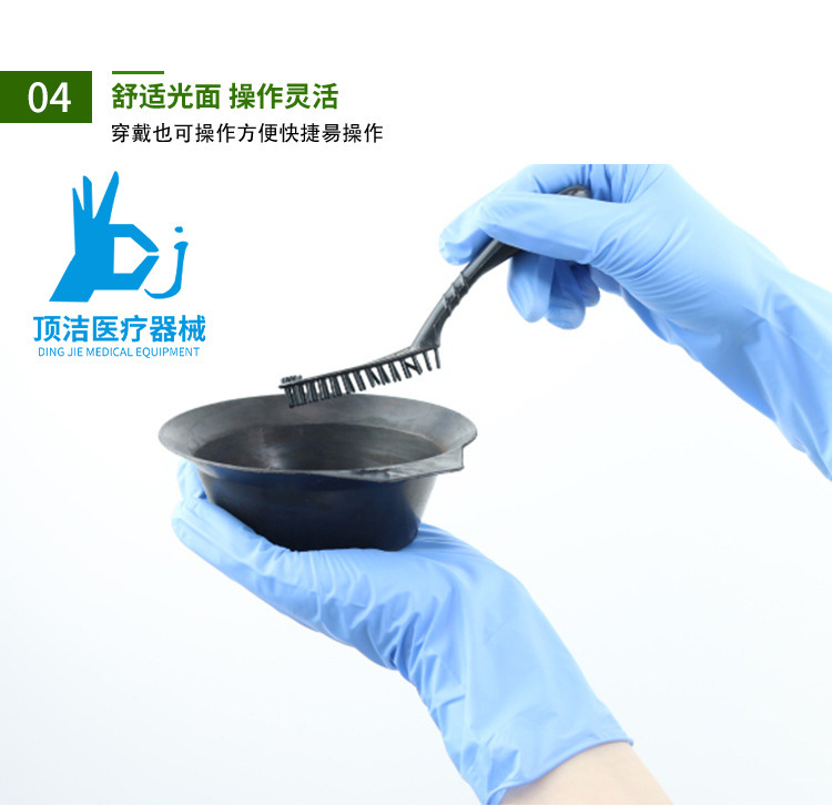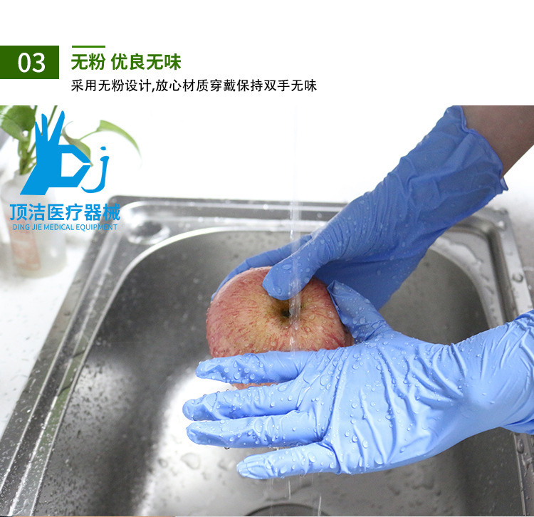 蓝色丁腈手套一次性手套12寸加长加厚款蓝色丁腈防水医用检查手套
