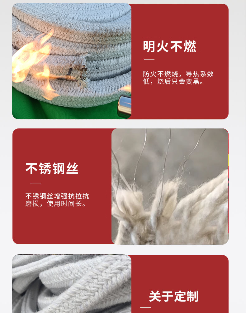 硅酸铝耐高温保温密封陶瓷纤维盘根密封条石棉条耐高压陶瓷纤维绳