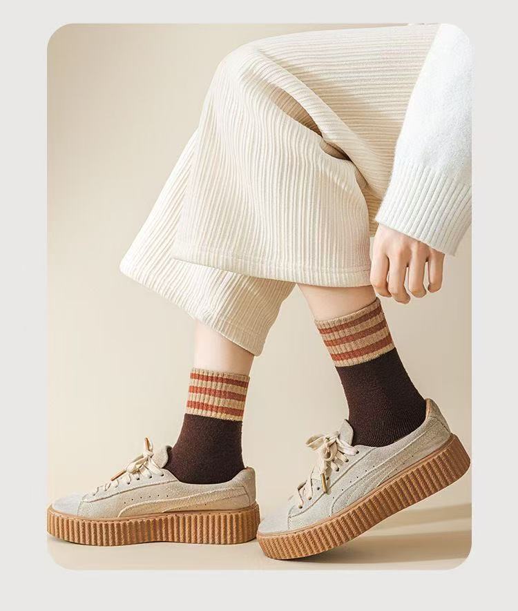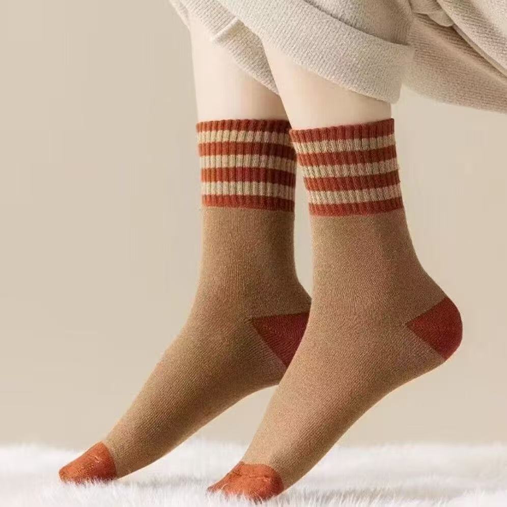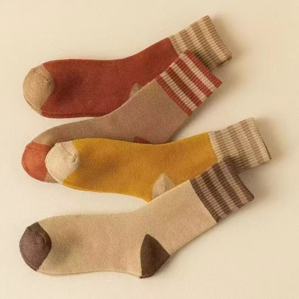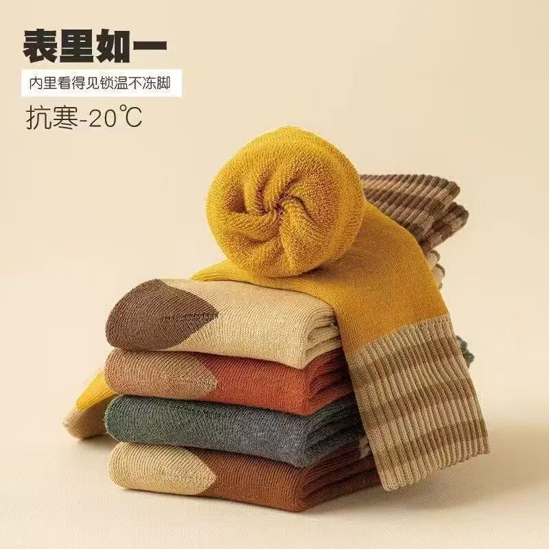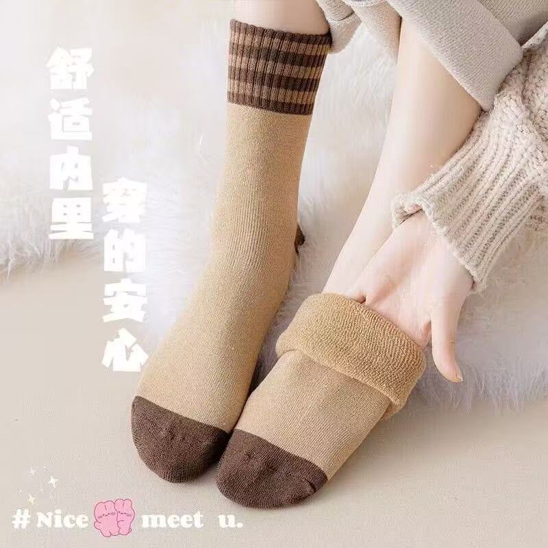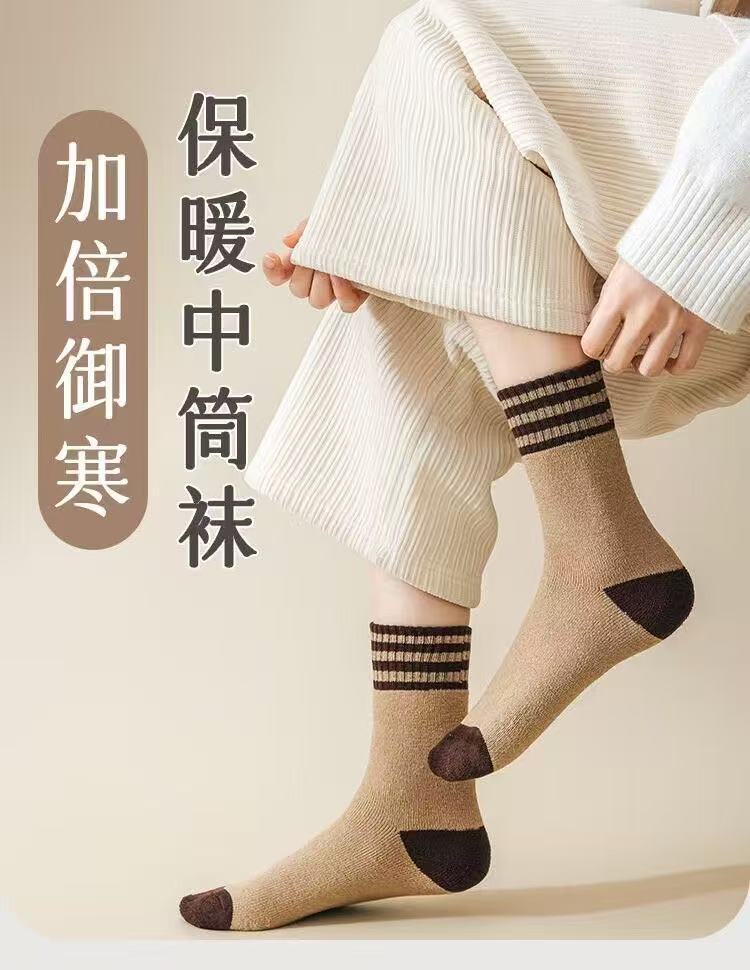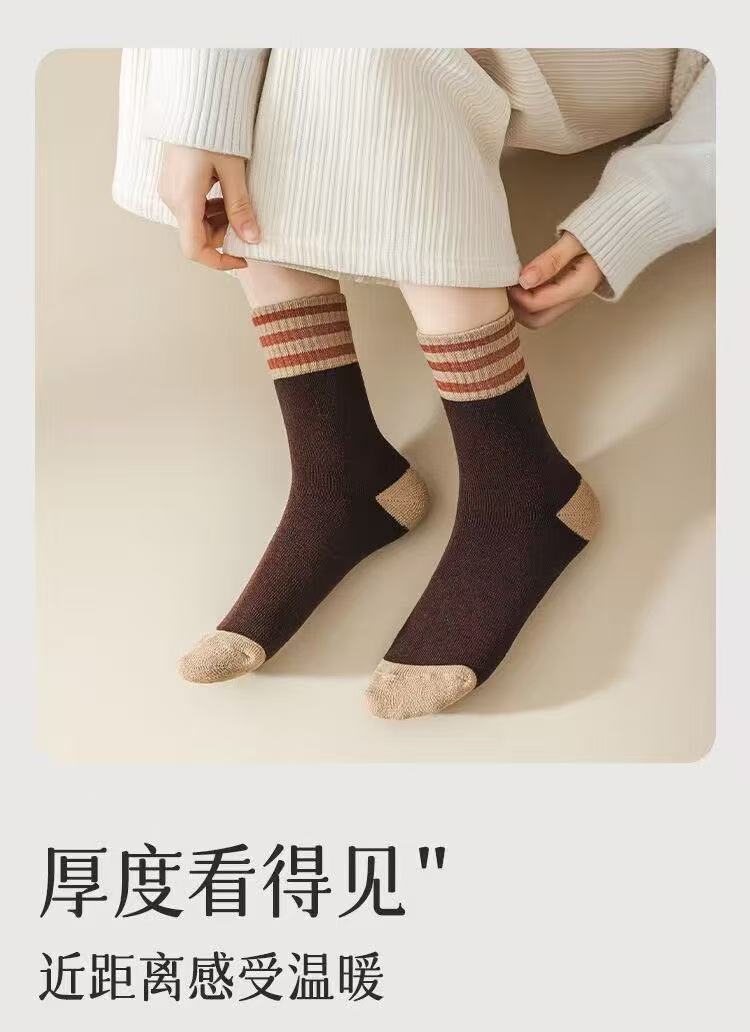 加绒加厚保暖毛圈秋冬季中筒长筒袜子男女三杠诸暨批发毛圈冬天袜
