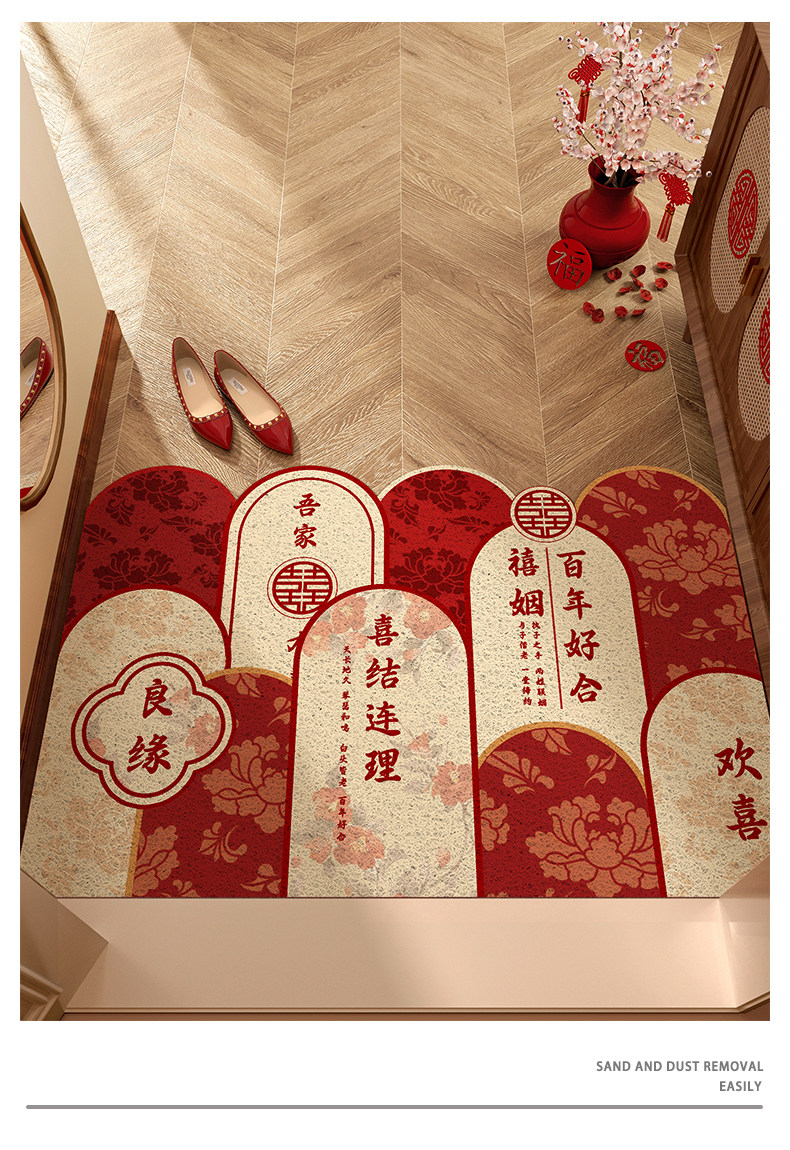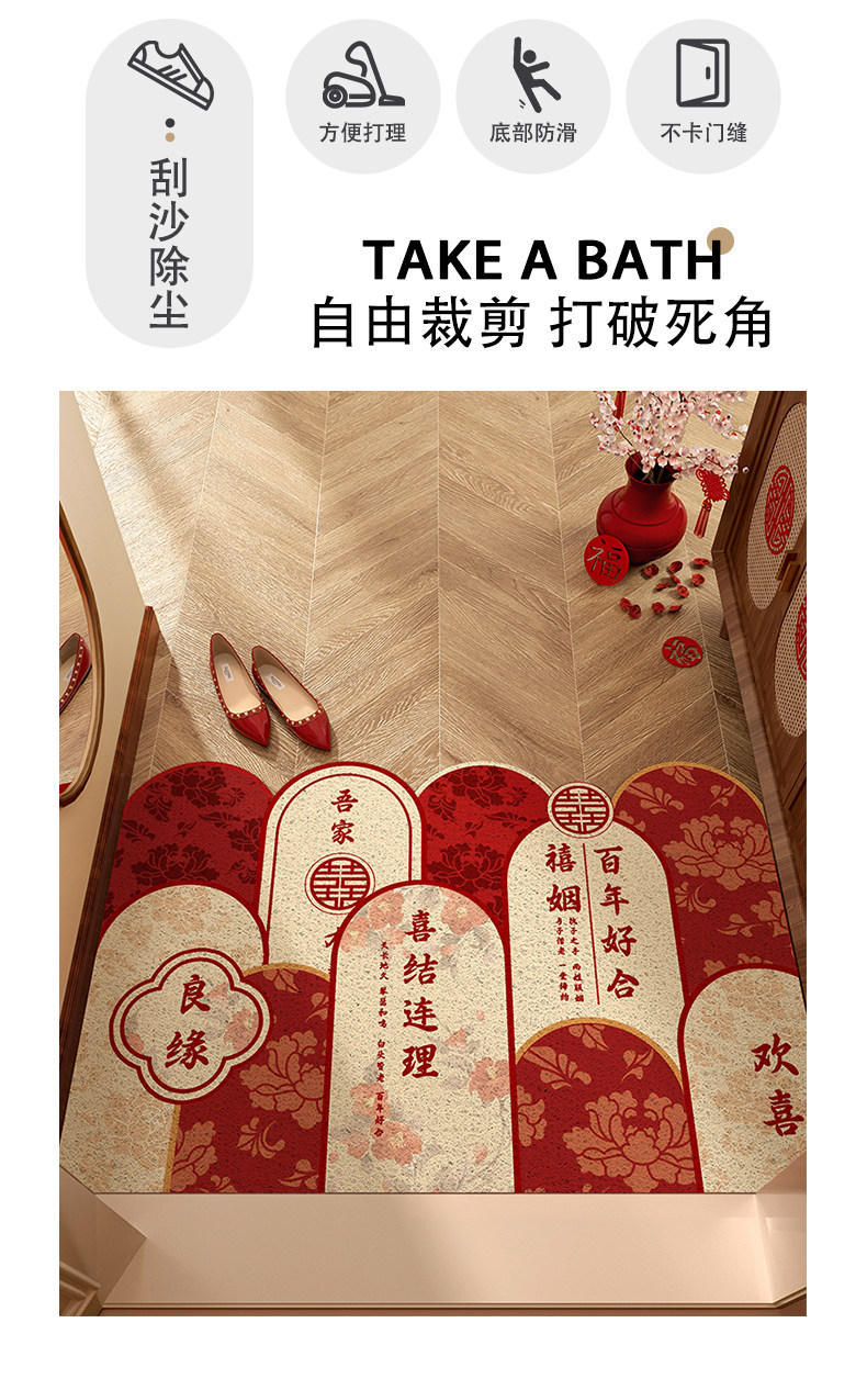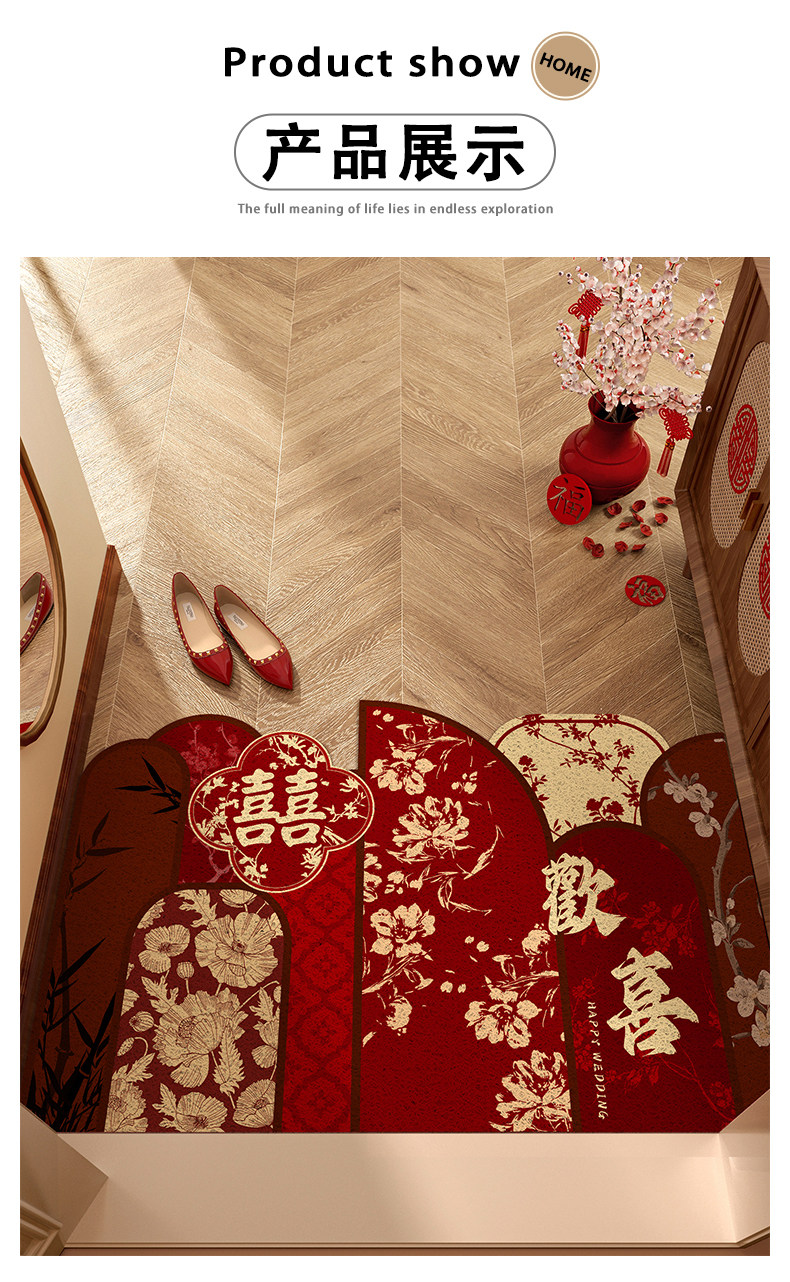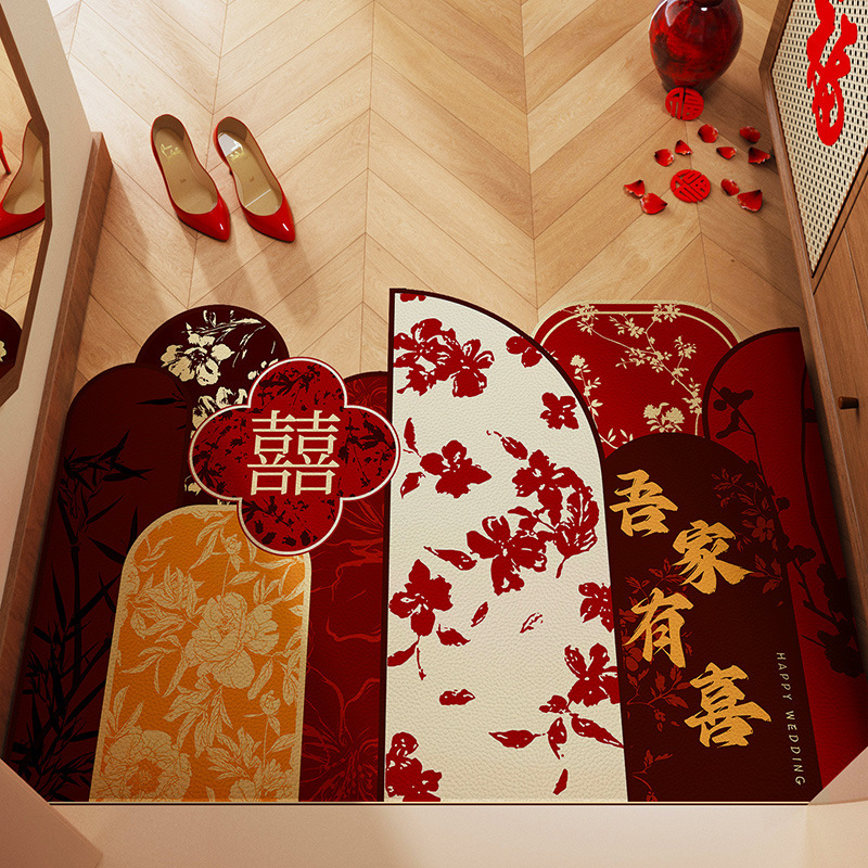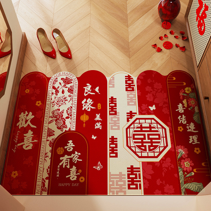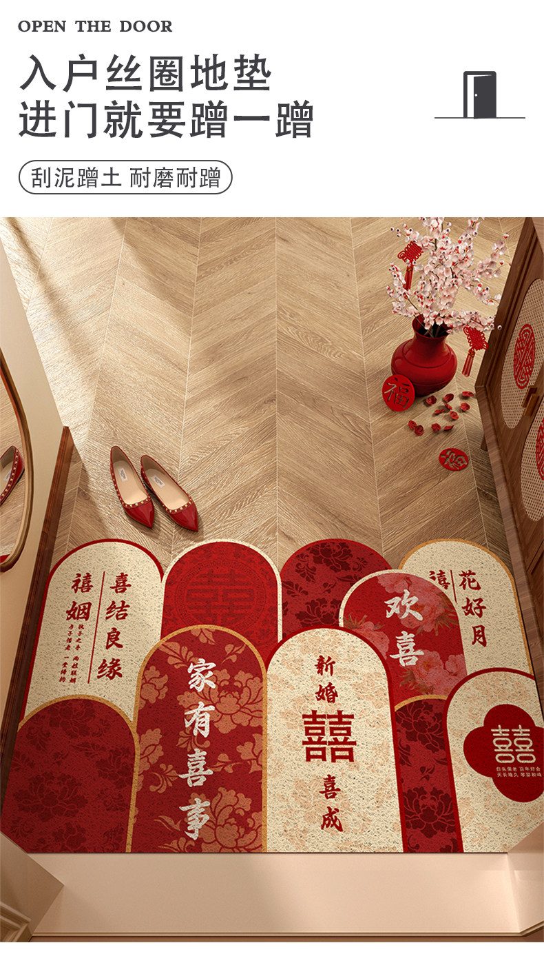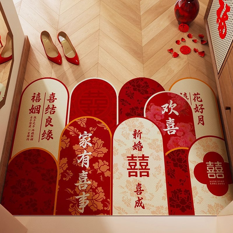 入户门地垫门口地毯进门结婚红色喜庆脚垫喜字婚房布置装饰可裁剪