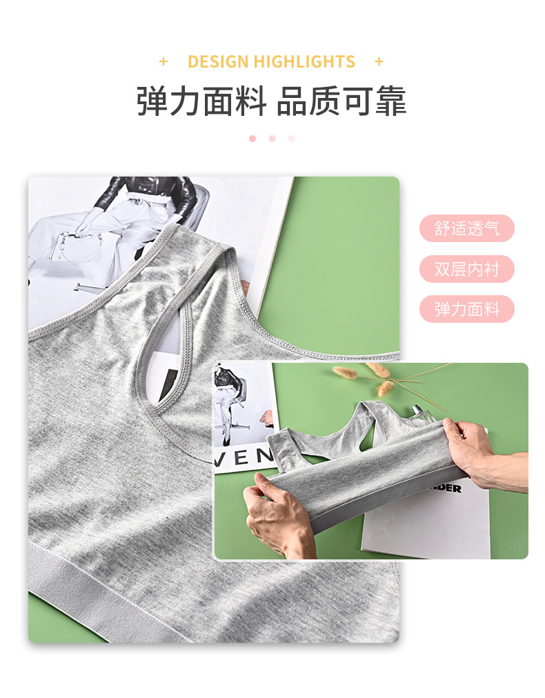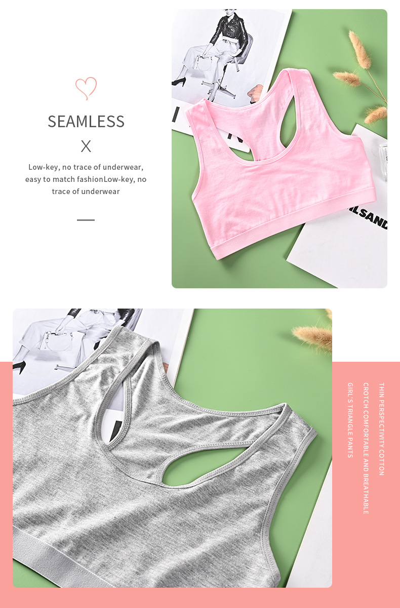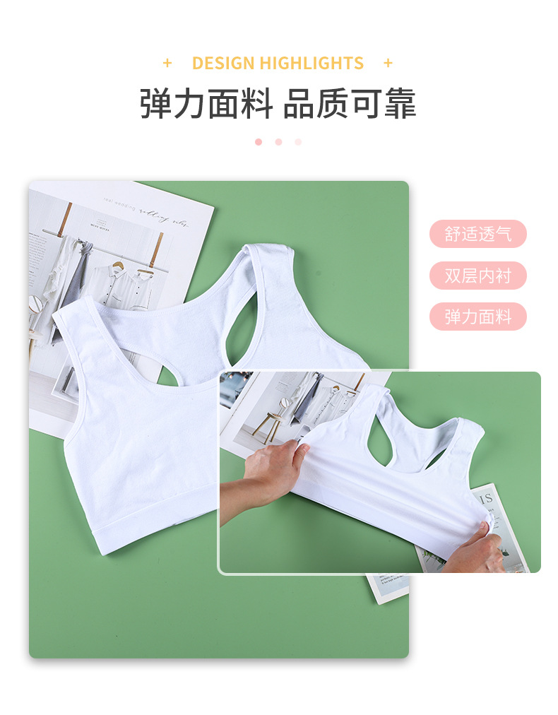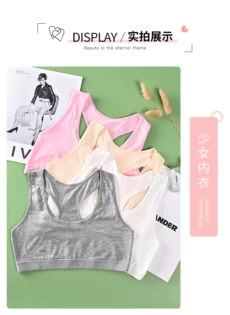 纯色无钢圈背心式运动内衣女学生发育期文胸中小学生棉内衣批发