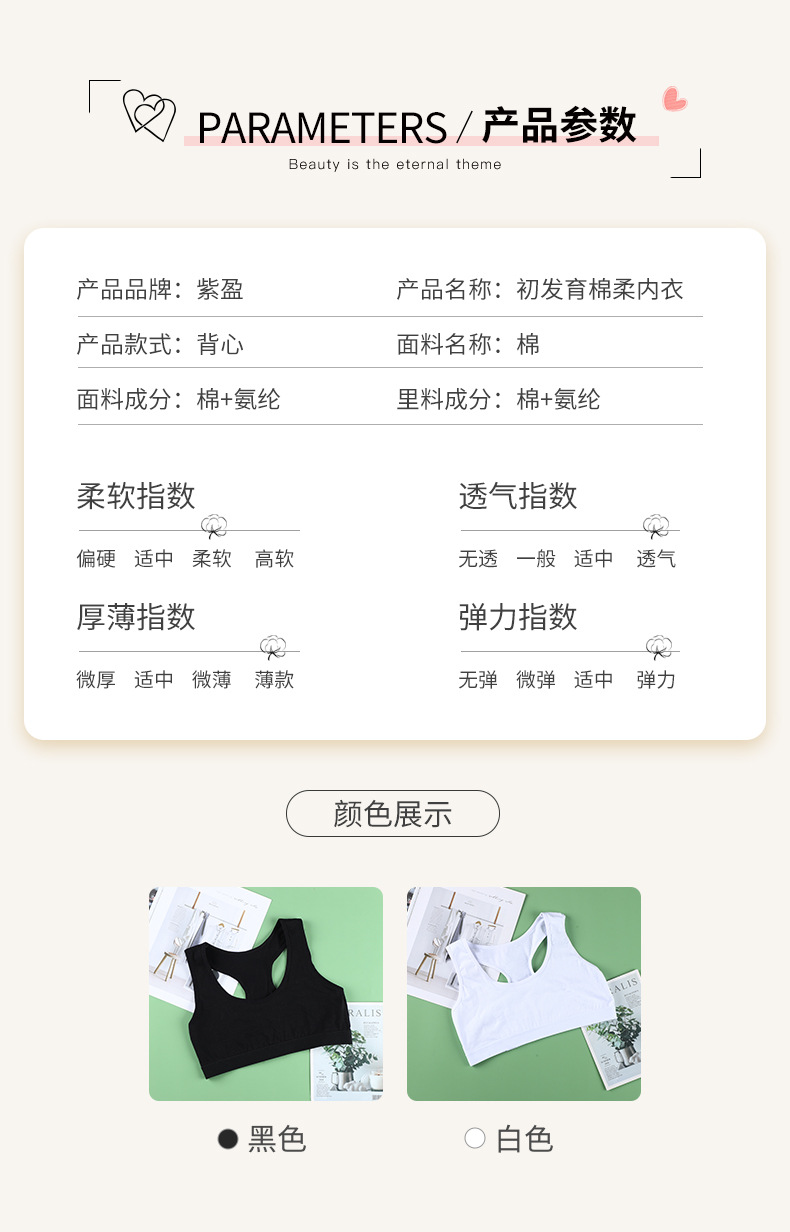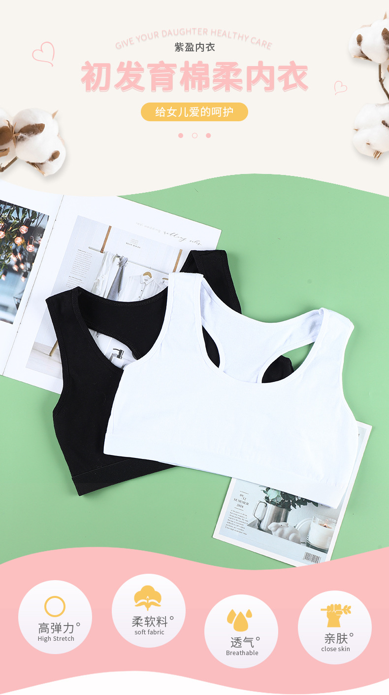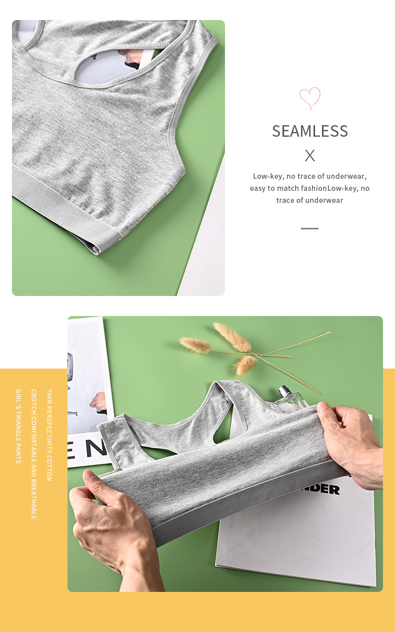 纯色无钢圈背心式运动内衣女学生发育期文胸中小学生棉内衣批发