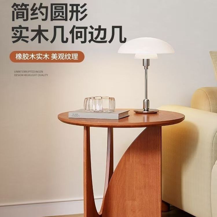 高档实木边几简约现代创意设计圆形桌面便携创意现代客厅沙发边桌
