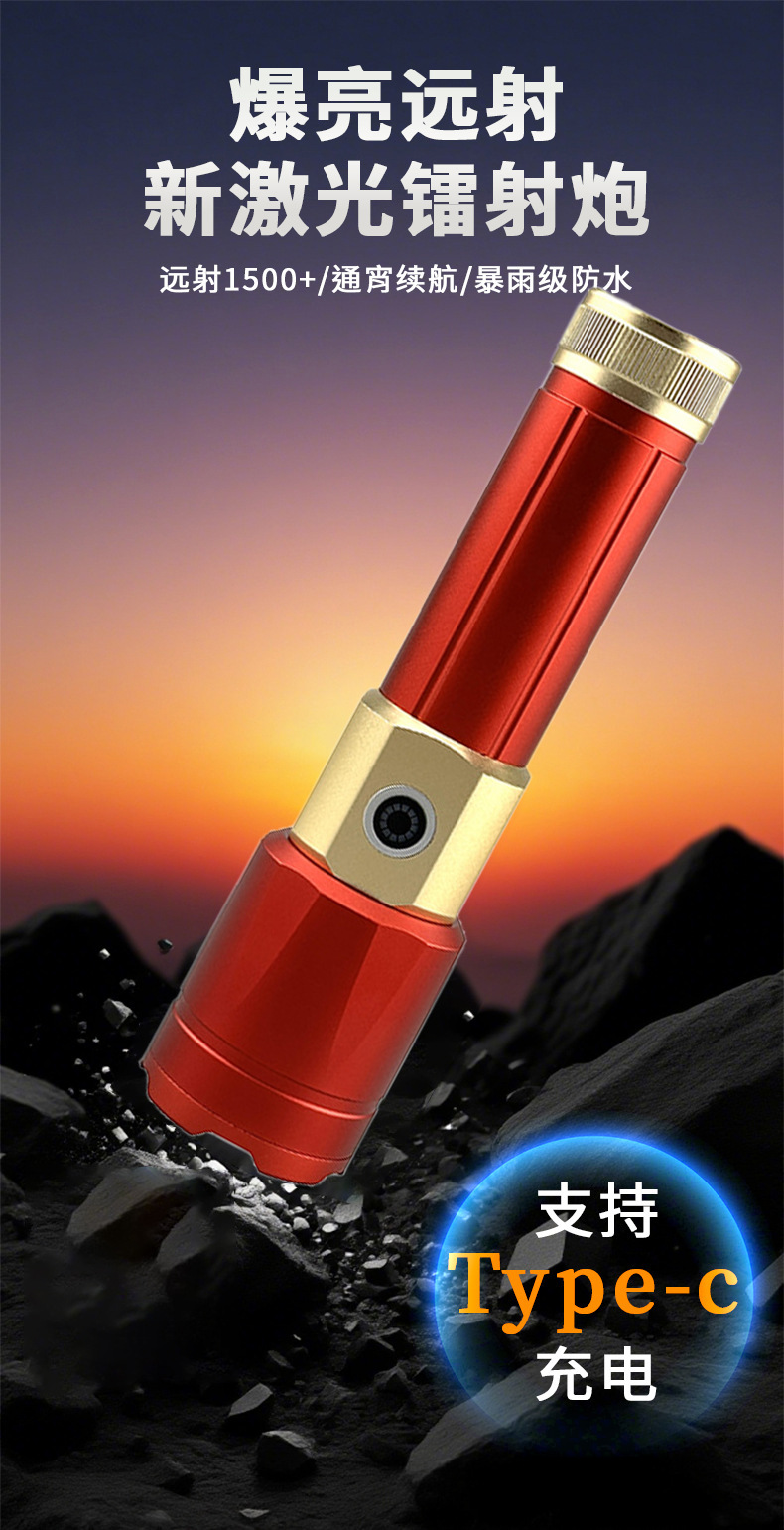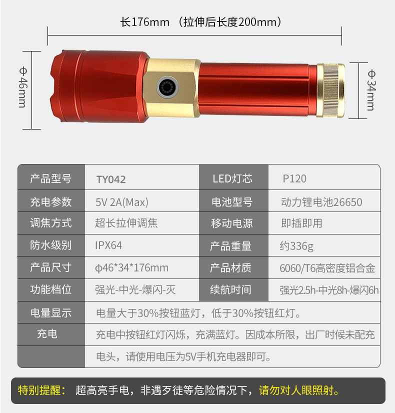 户外强光手电筒超亮远射应急灯伸缩变焦便携多功能专业照明手电筒