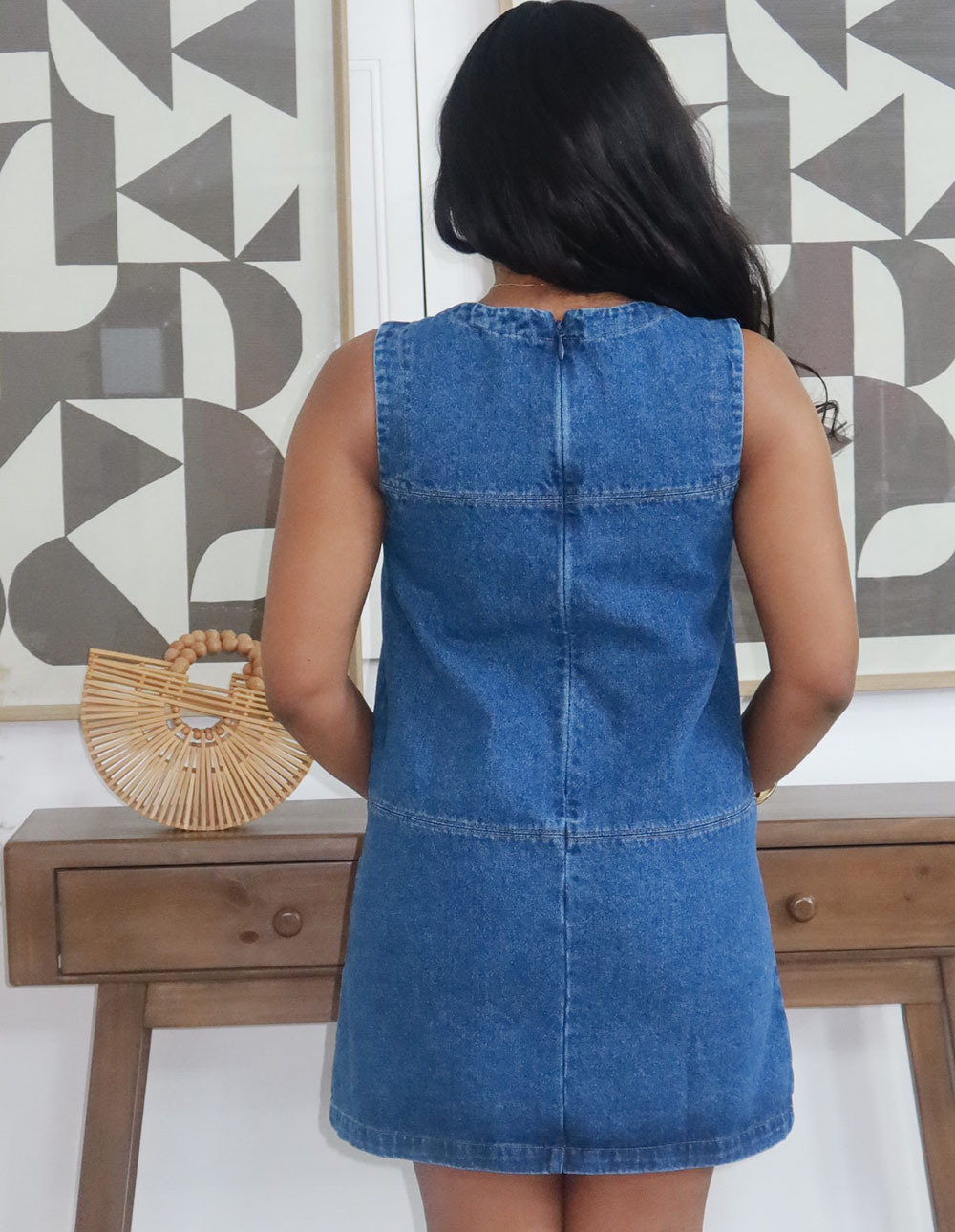 欧美女式休闲牛仔背心裙亚马逊跨境女装宽松圆领大口袋设计连衣裙