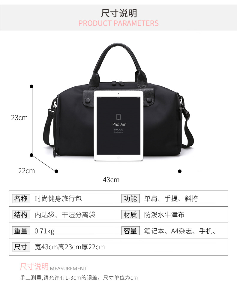 健身包女大容量瑜伽收纳袋游泳包出差旅游行李包手提短途旅行包