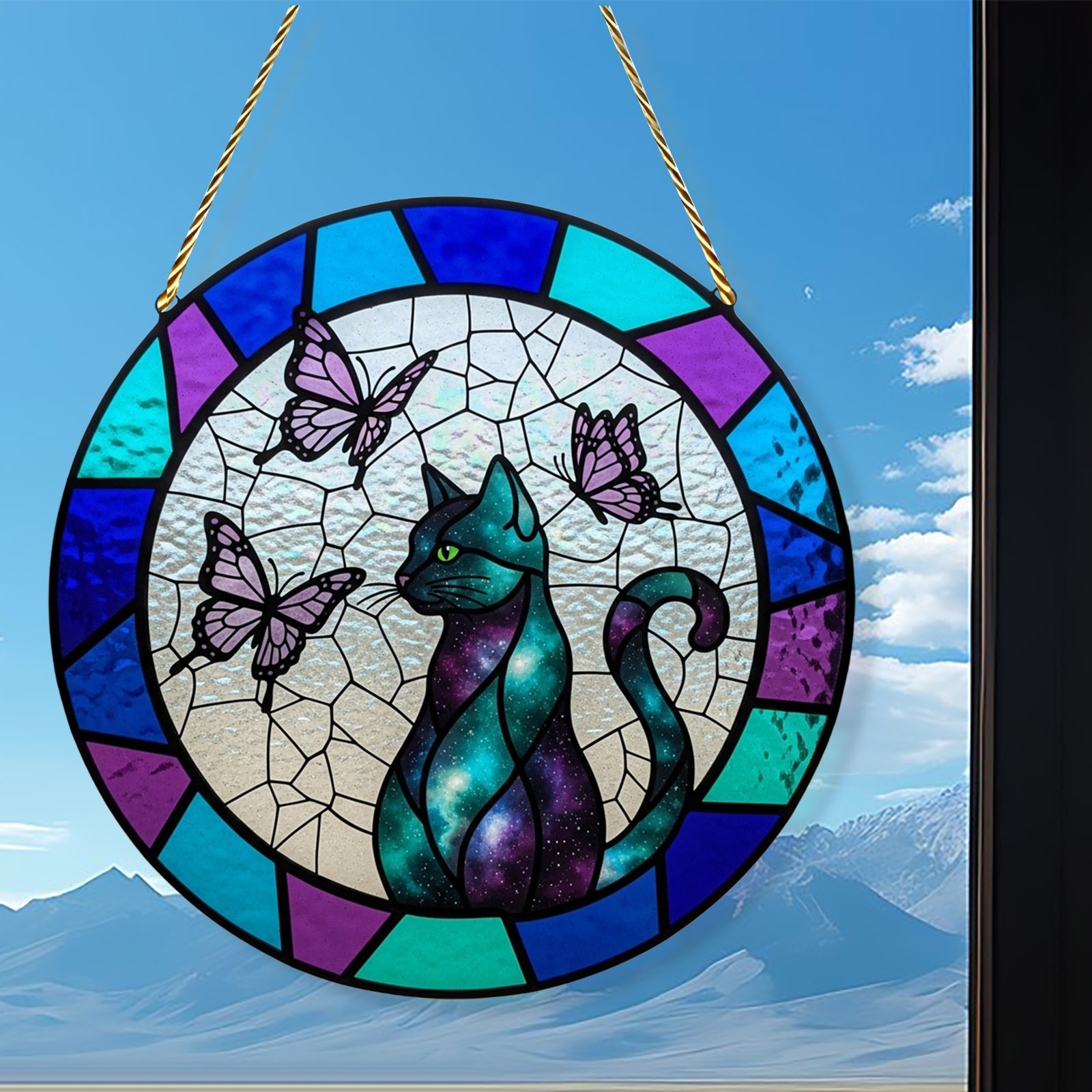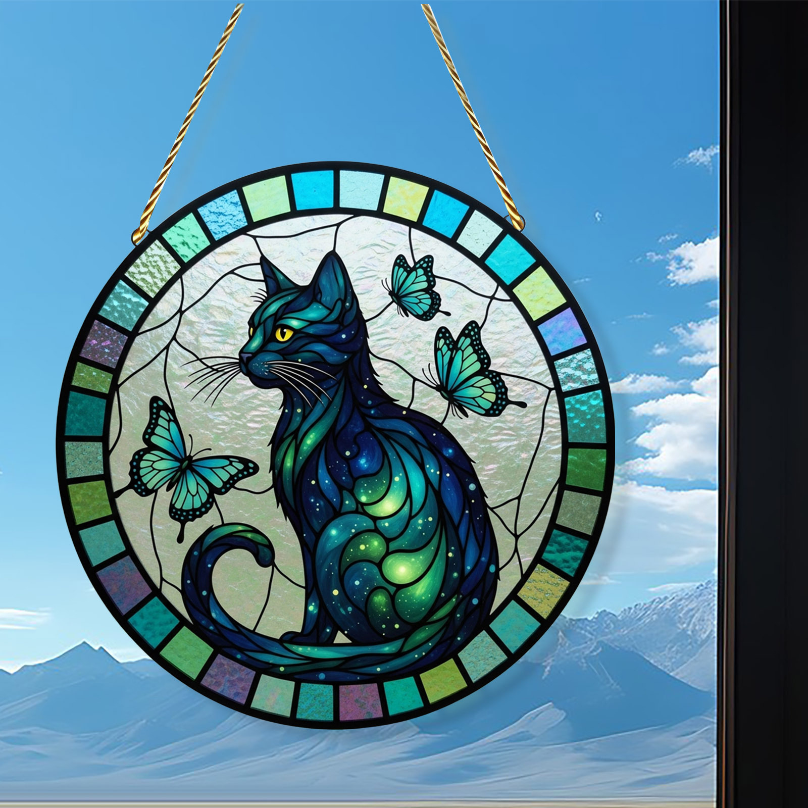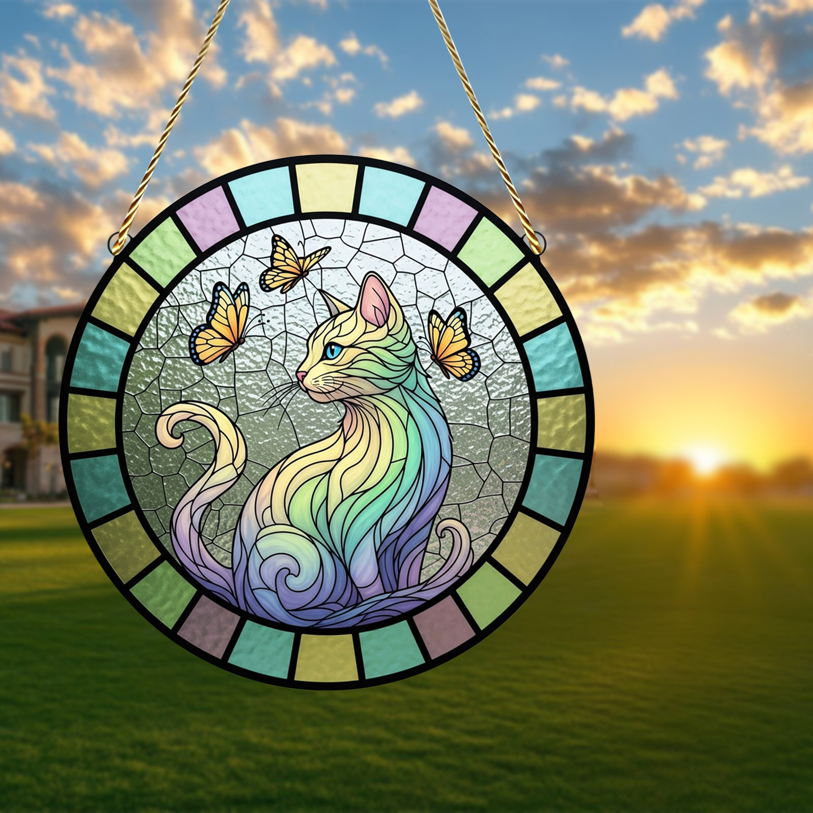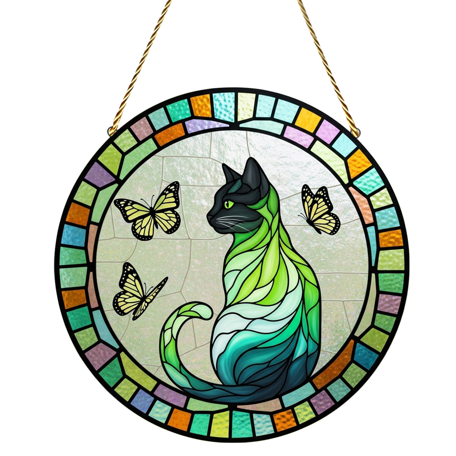 跨境悬挂彩色猫猫亚克力窗户手绘捕光器花园挂饰装饰品节日礼物