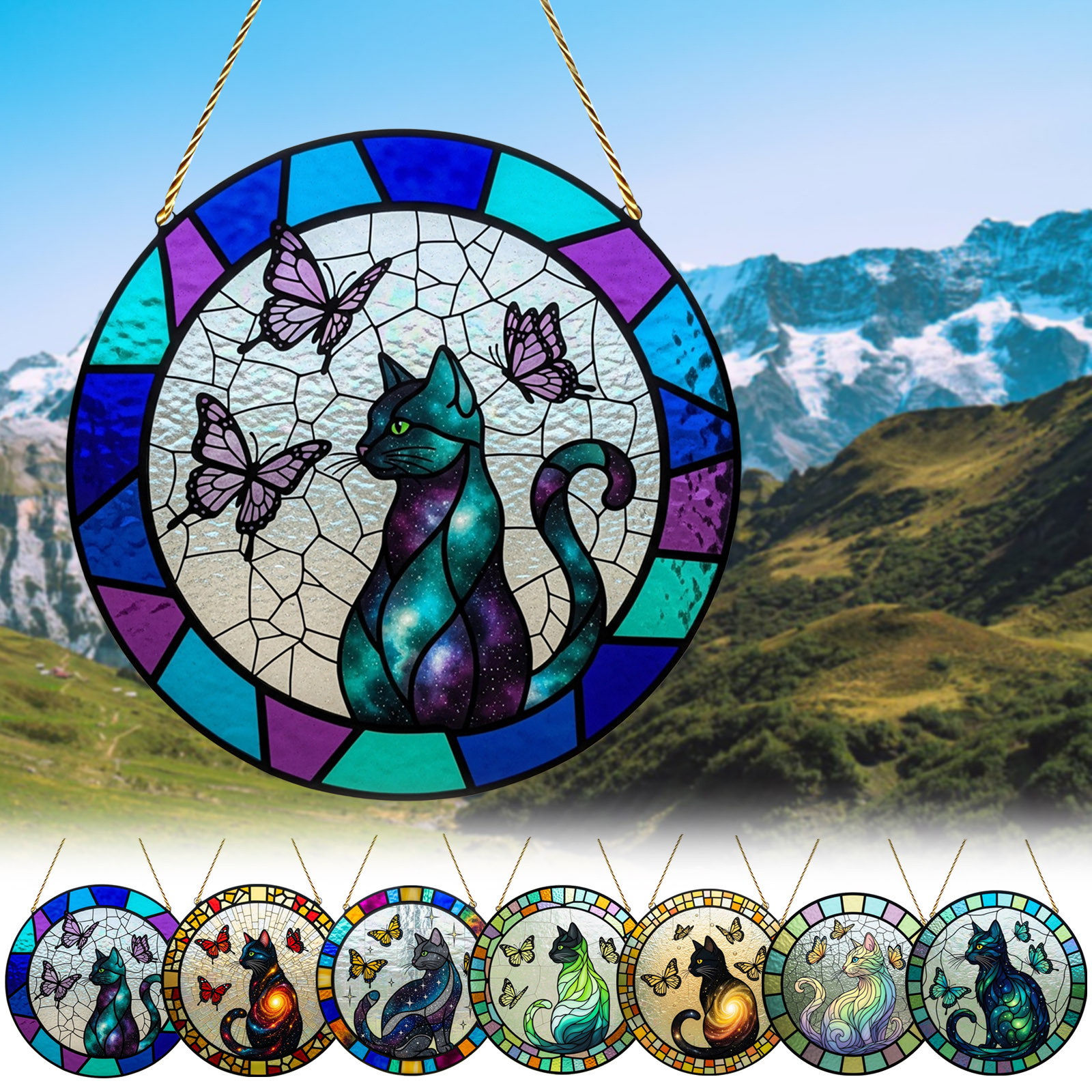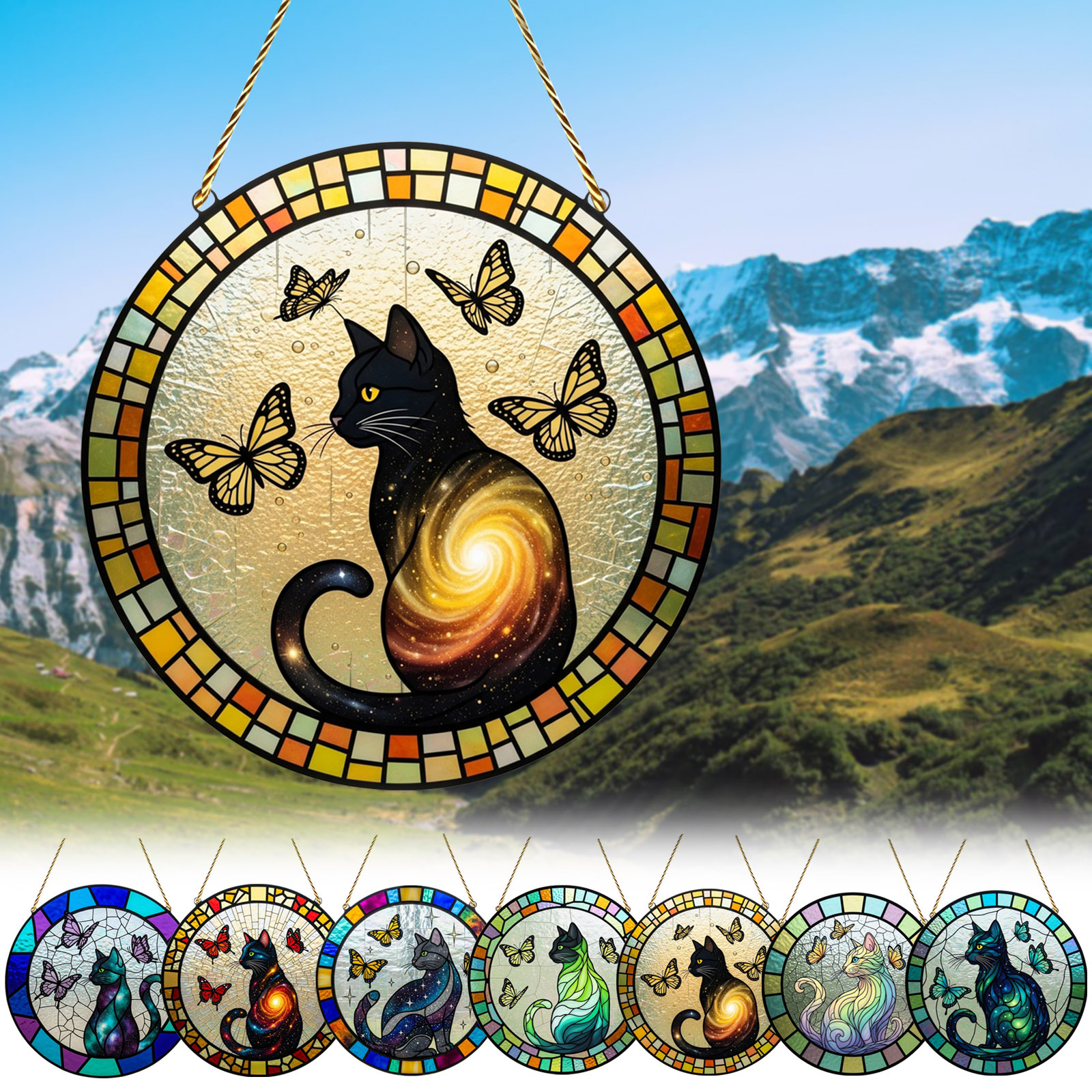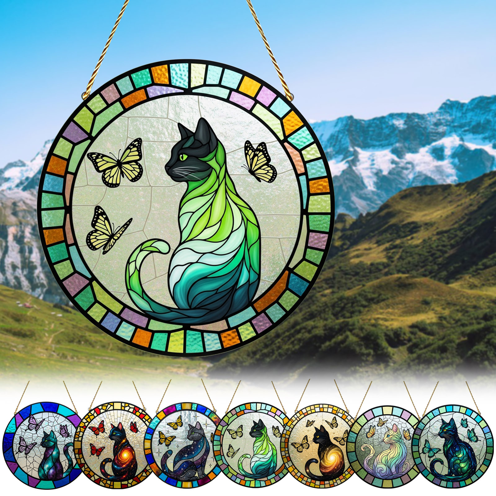 跨境悬挂彩色猫猫亚克力窗户手绘捕光器花园挂饰装饰品节日礼物