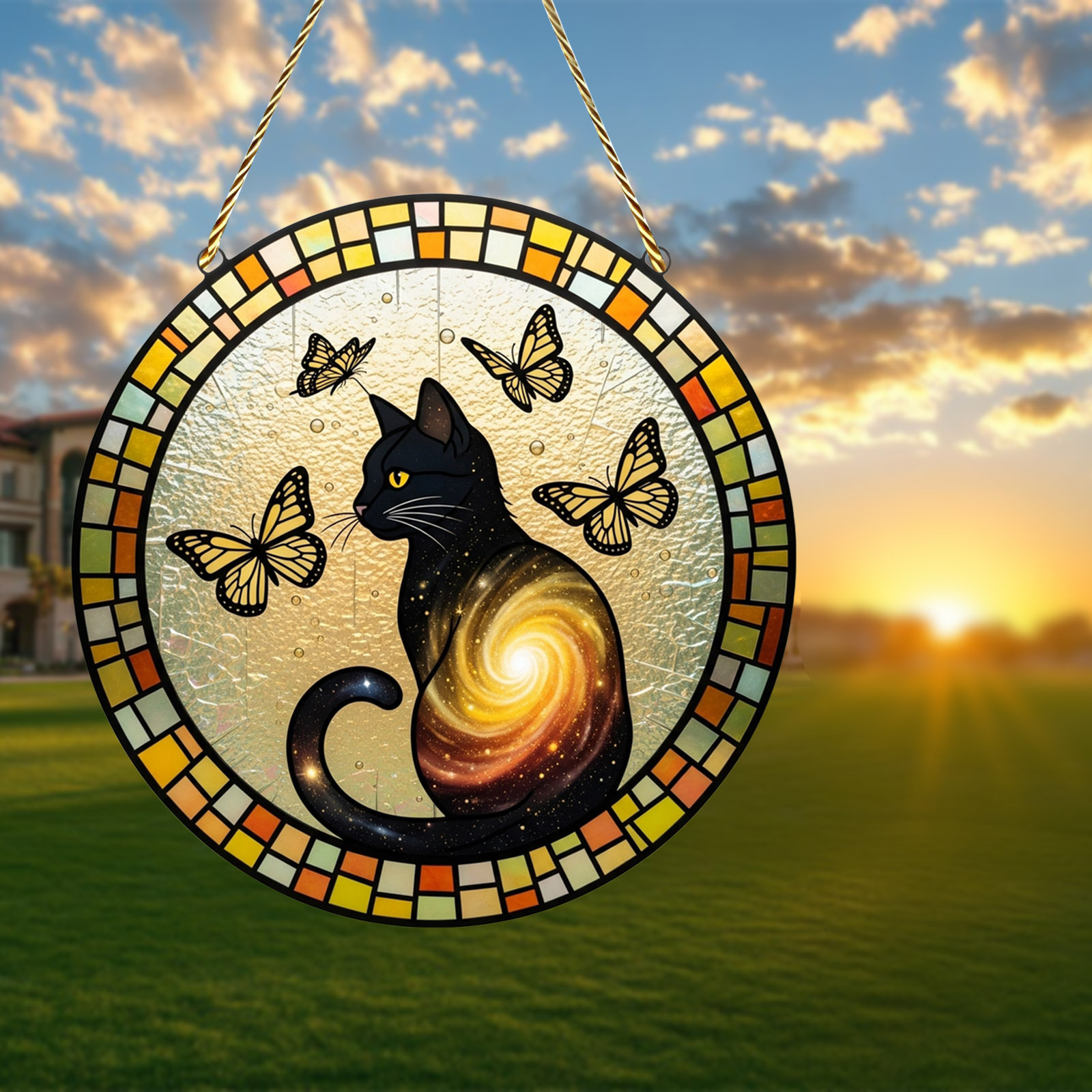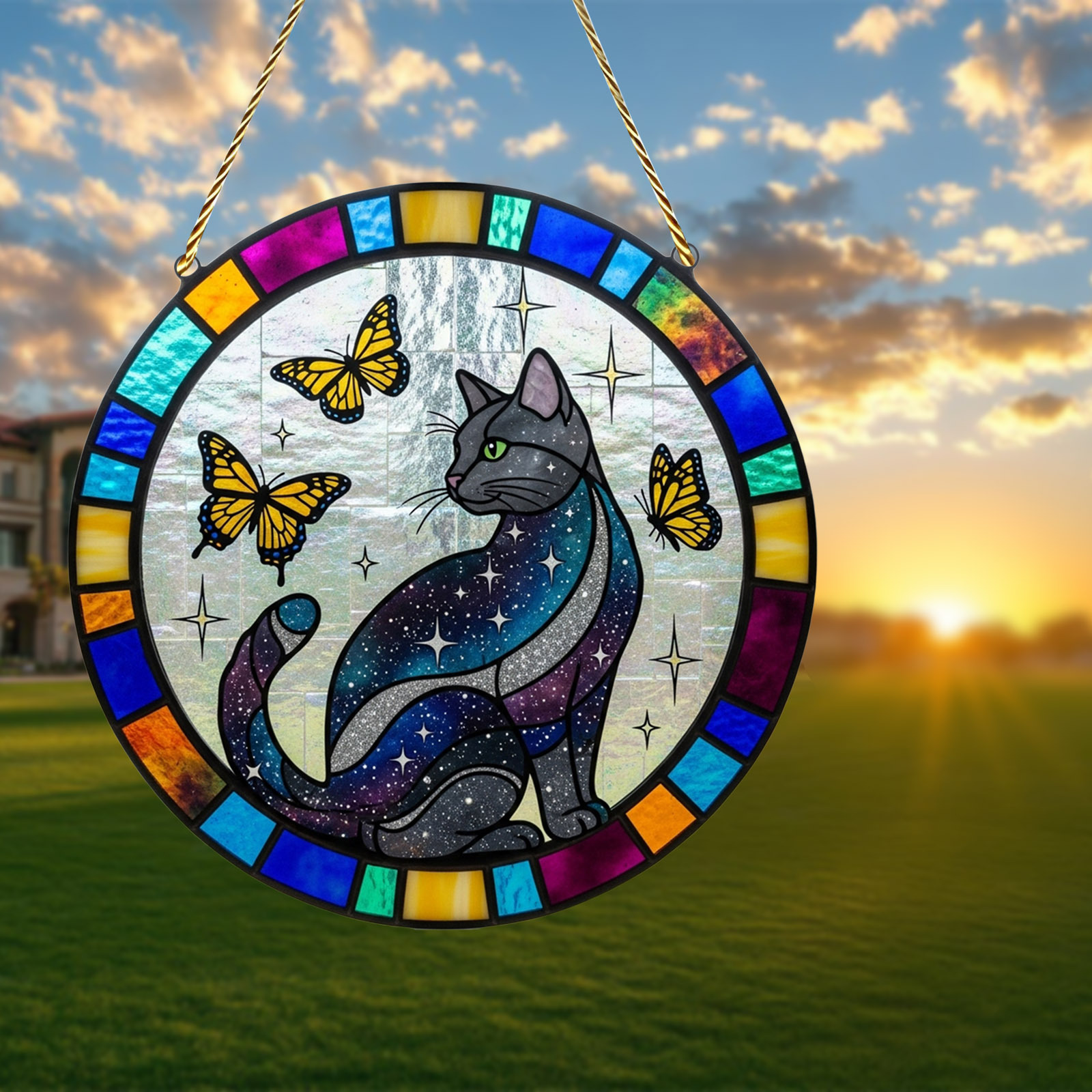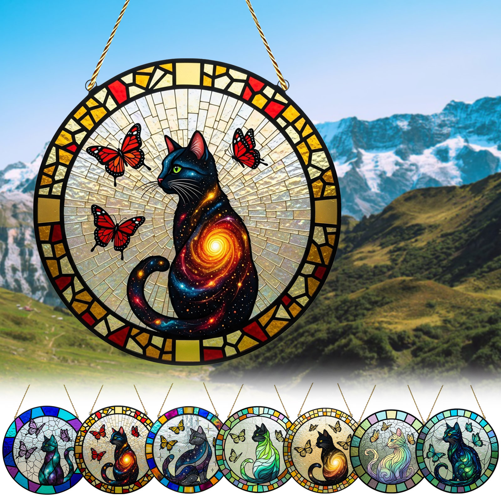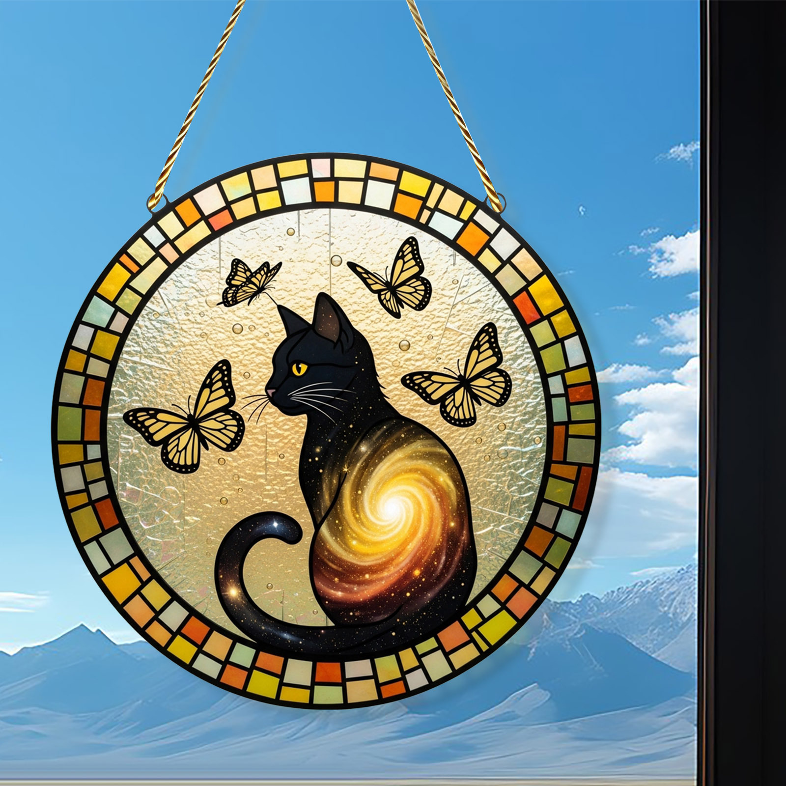 跨境悬挂彩色猫猫亚克力窗户手绘捕光器花园挂饰装饰品节日礼物