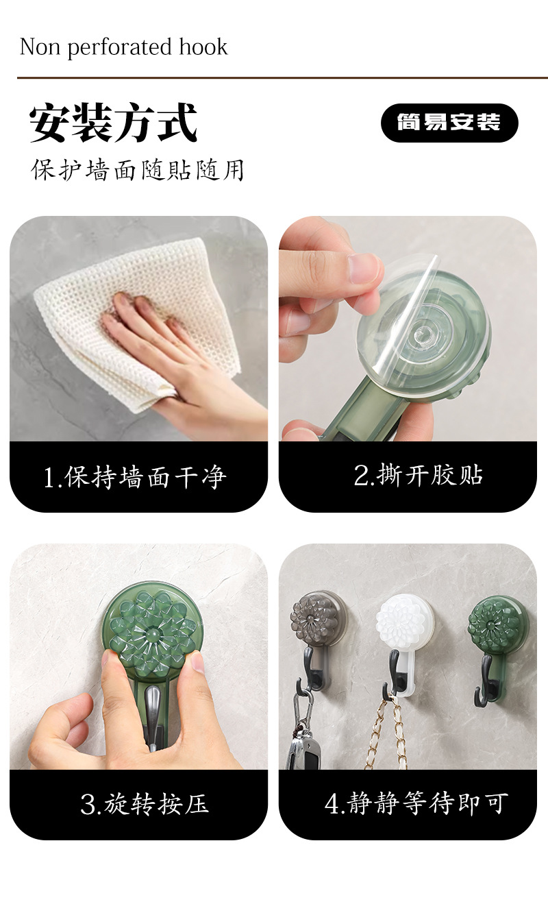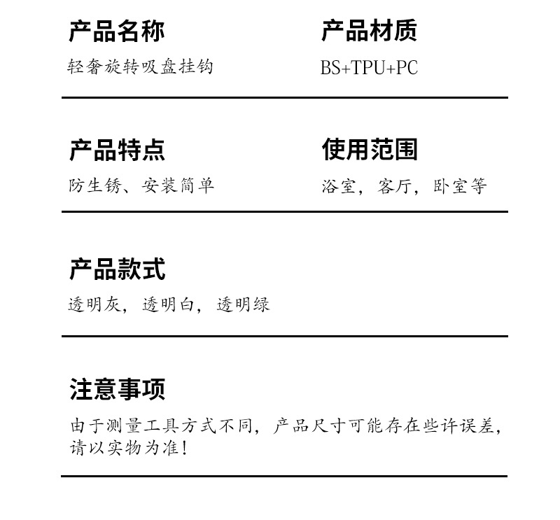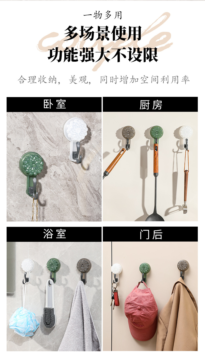 旋转吸盘挂钩真空免打孔无痕强力粘钩厨房卫生间墙壁浴室衣帽挂钩