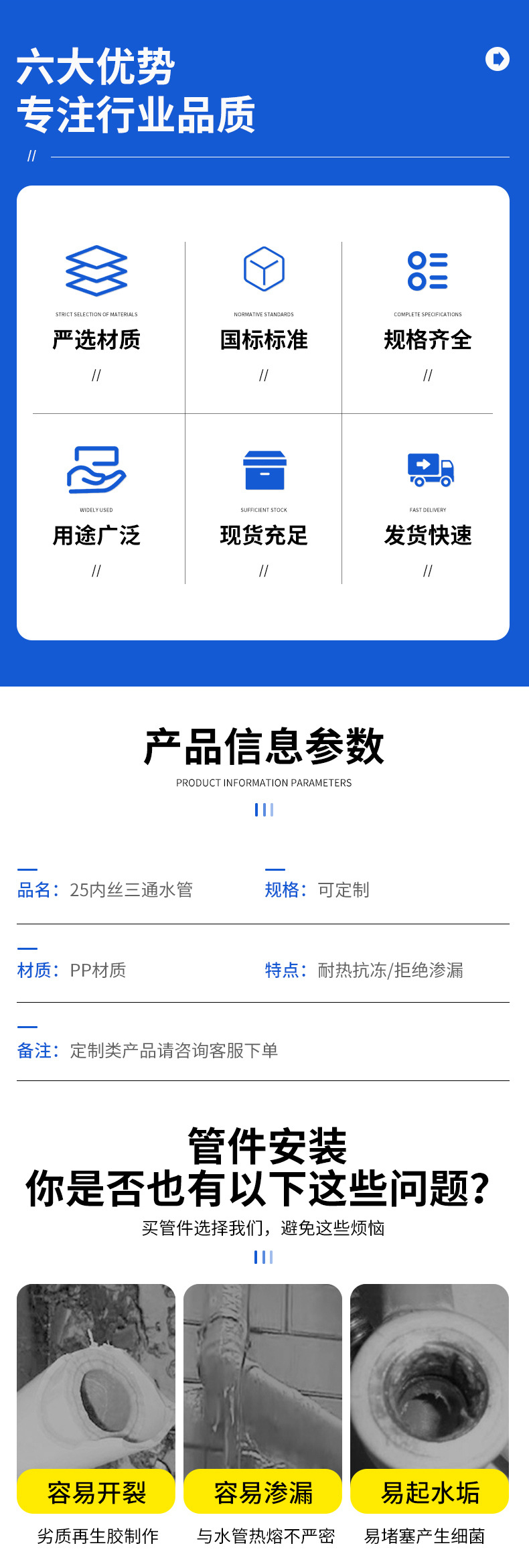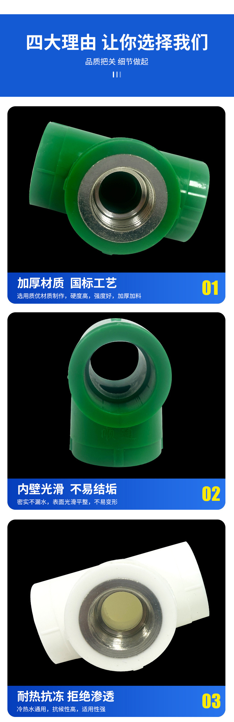 内丝三通PPR内牙家用自来水热熔接头水管管件配件免热熔快速接头